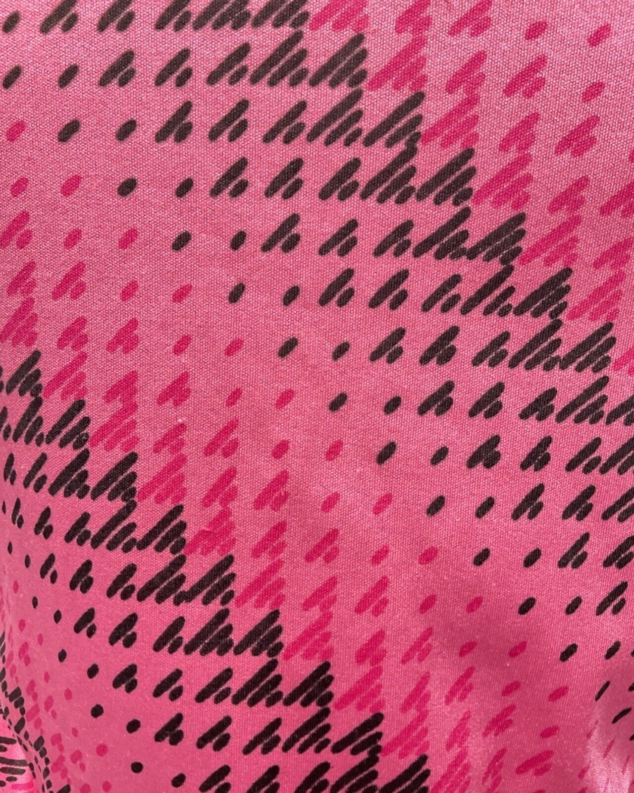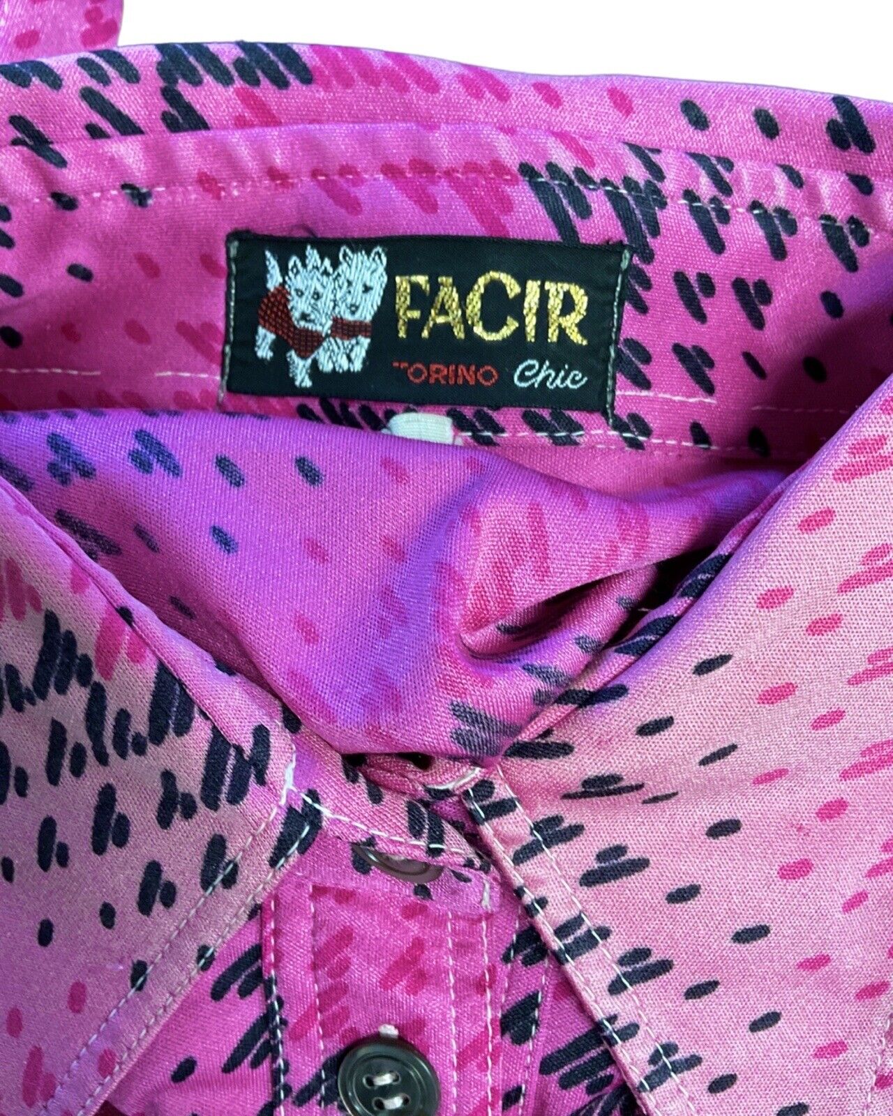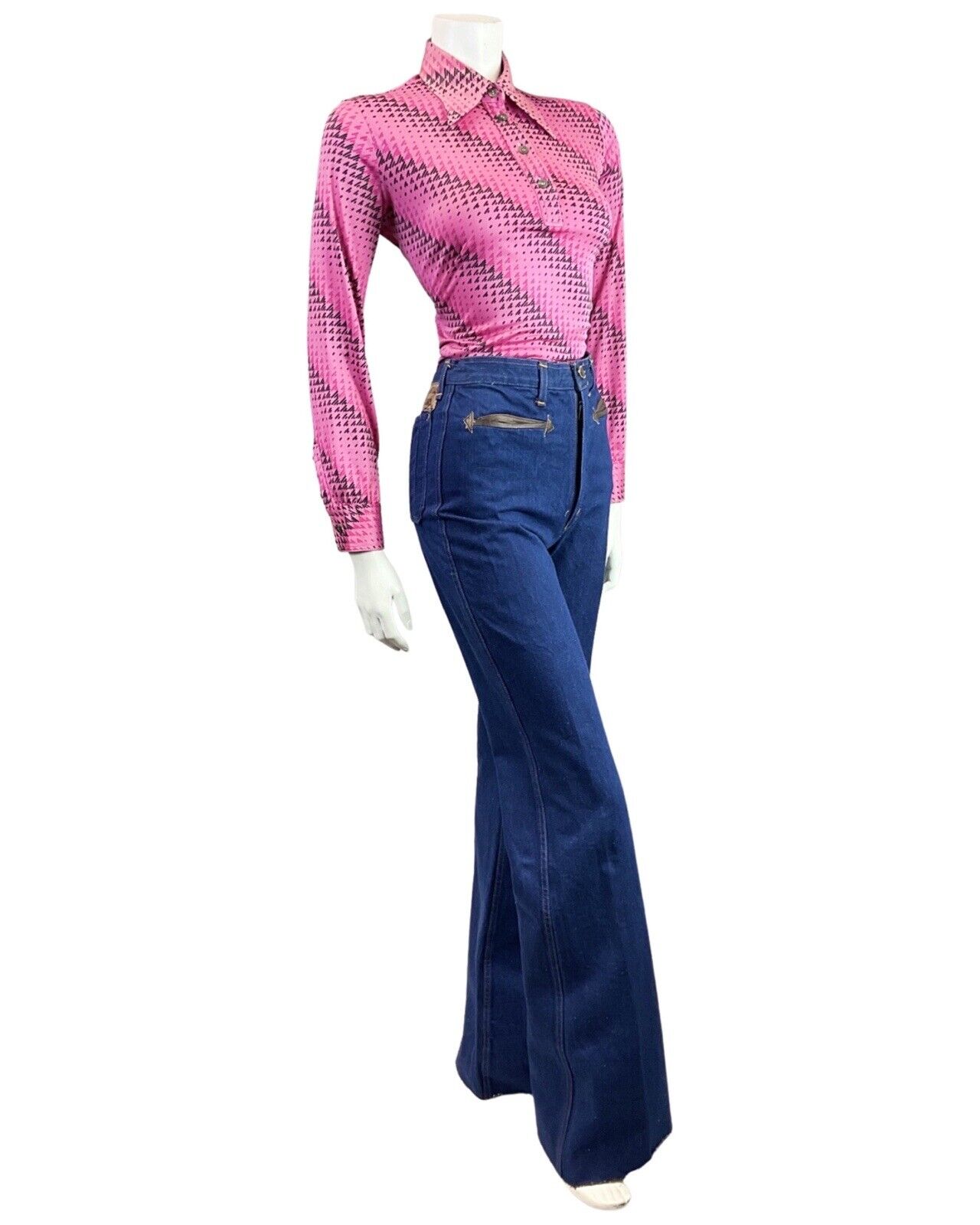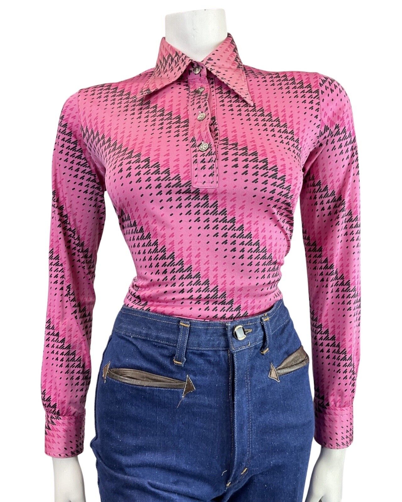 VINTAGE 90 does 70s PINK BLUE WHITE GEOMETRIC DASH MOD DAGGER BLOUSE 10 12