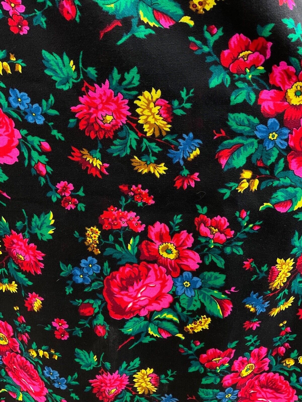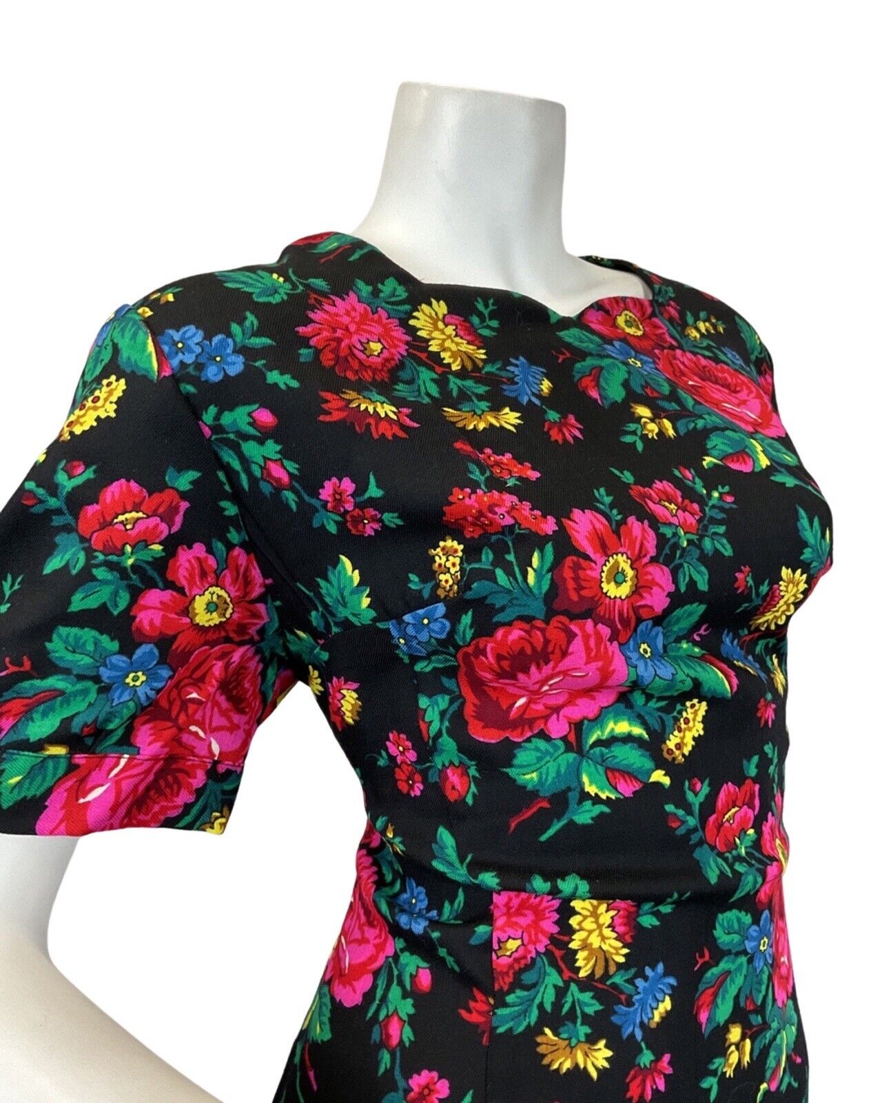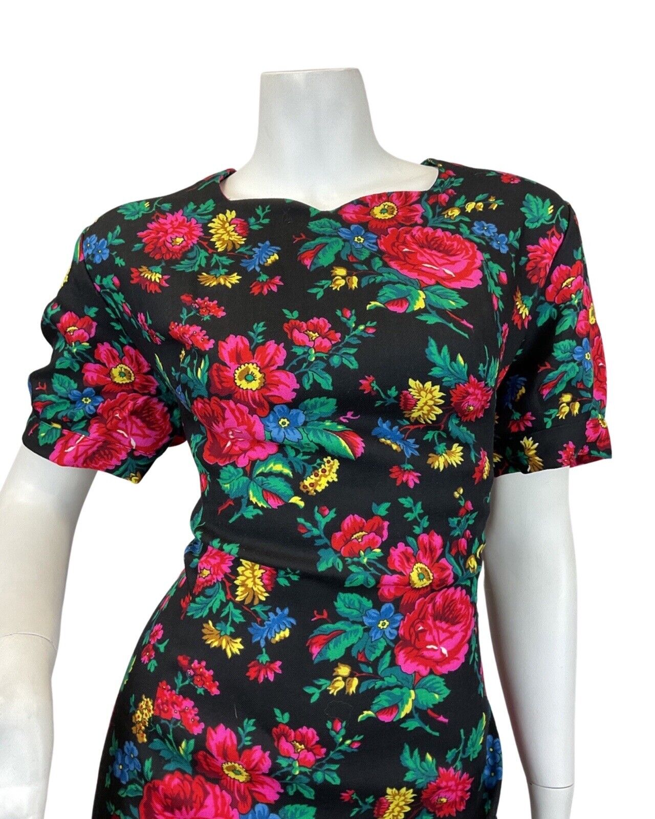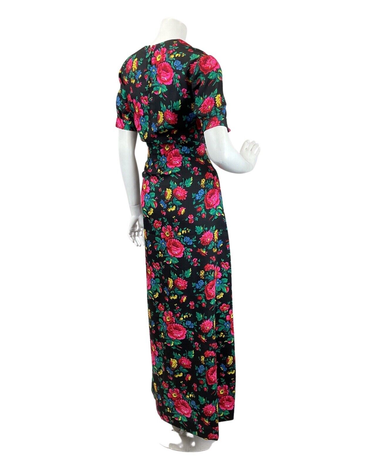 VNITAGE 60s 70s BLACK RED GREEN FLORAL ROSE SWEETHEART MOD MAXI DRESS 14 16