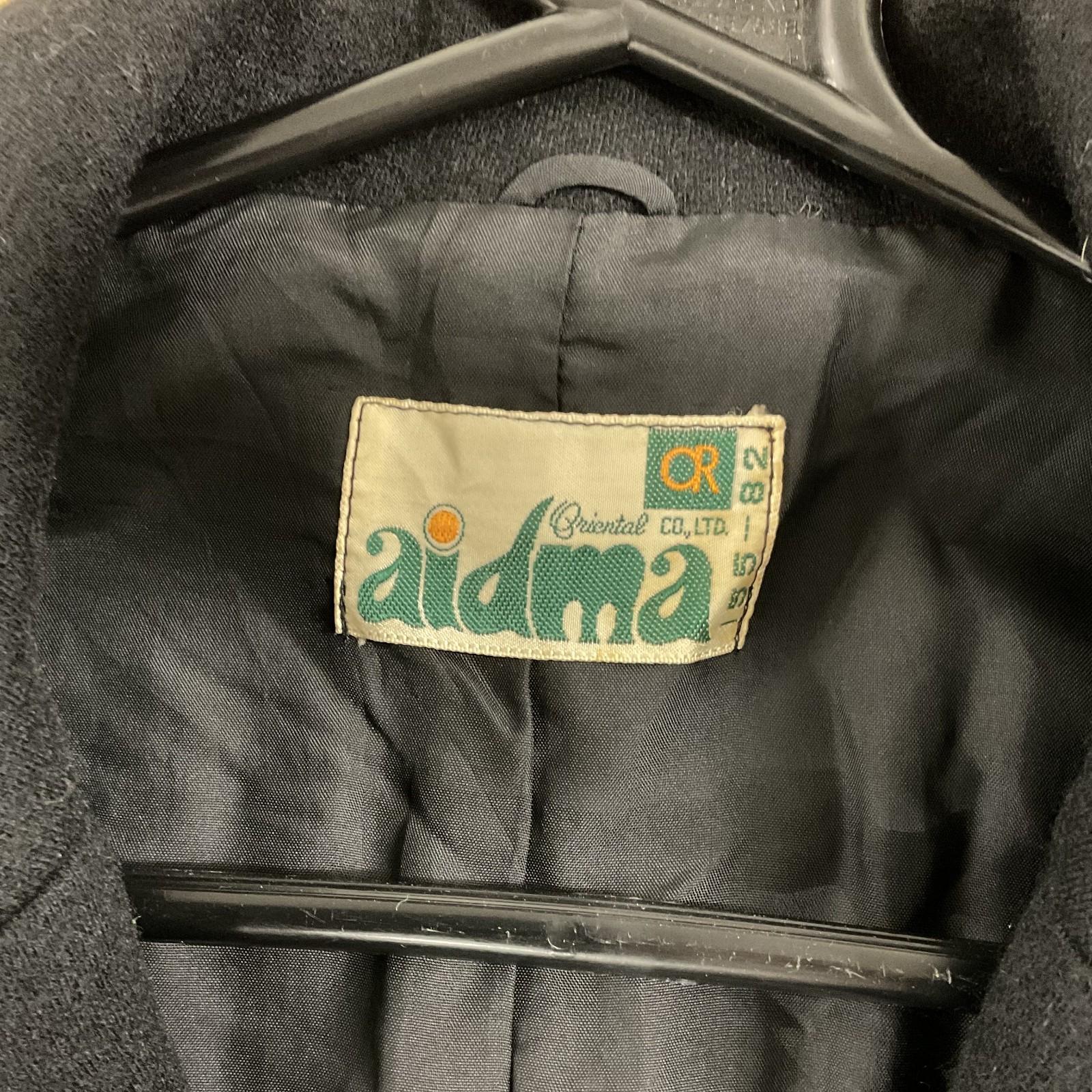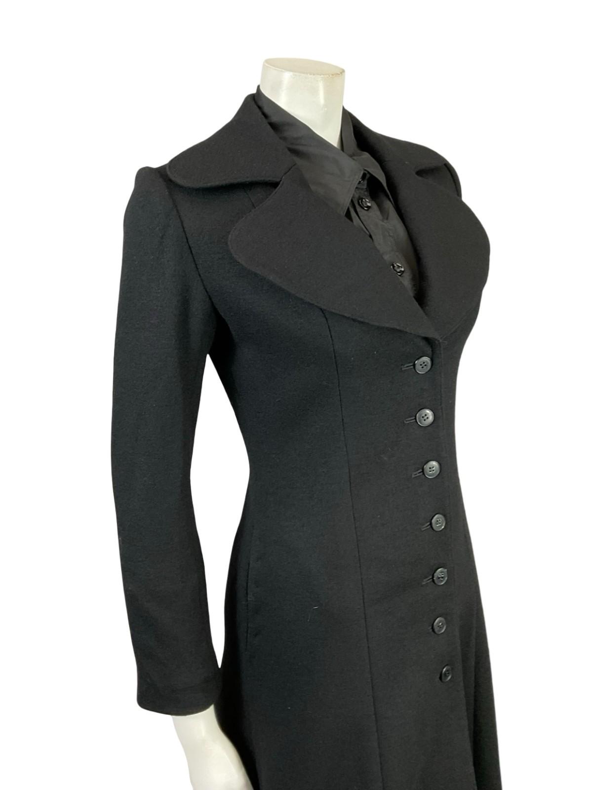 VTG 60S 70S AIDMA MOD BLACK WOOL MONOCHROME ROUNDED LAPEL LONG COAT XS 6
