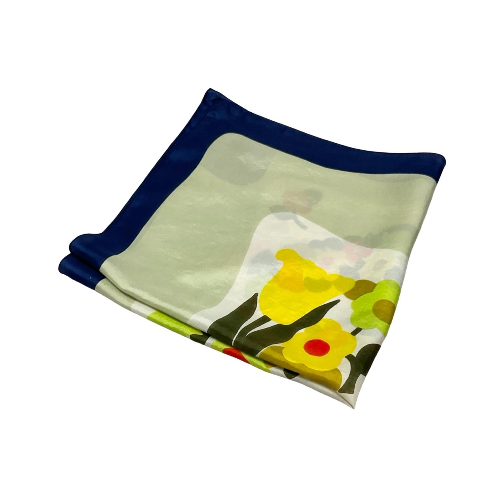 VTG 60S 70S BEIGE BLUE YELLOW ORANGE FLORAL MEADOW PSYCHEDELIC SCARF
