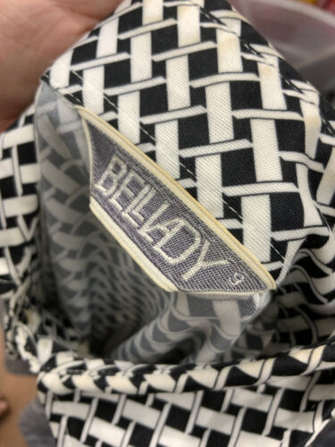 VTG 60s 70s BLACK WHITE BASKETWEAVE GEOMETRIC OP-ART DAGGER SHIRT BLOUSE 8 10