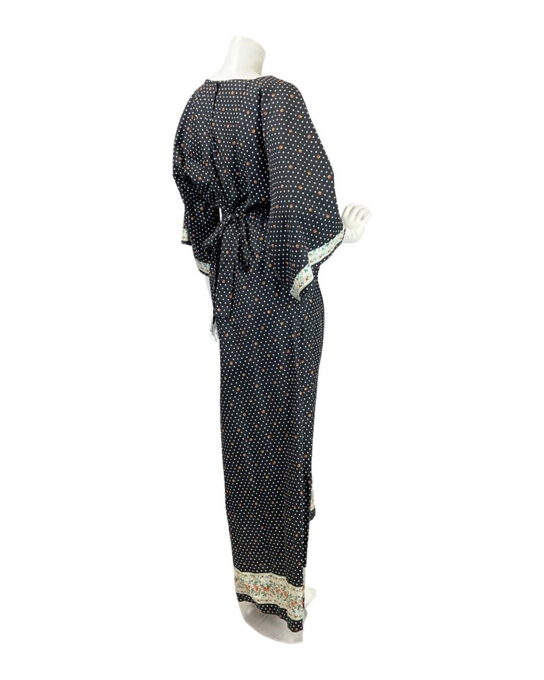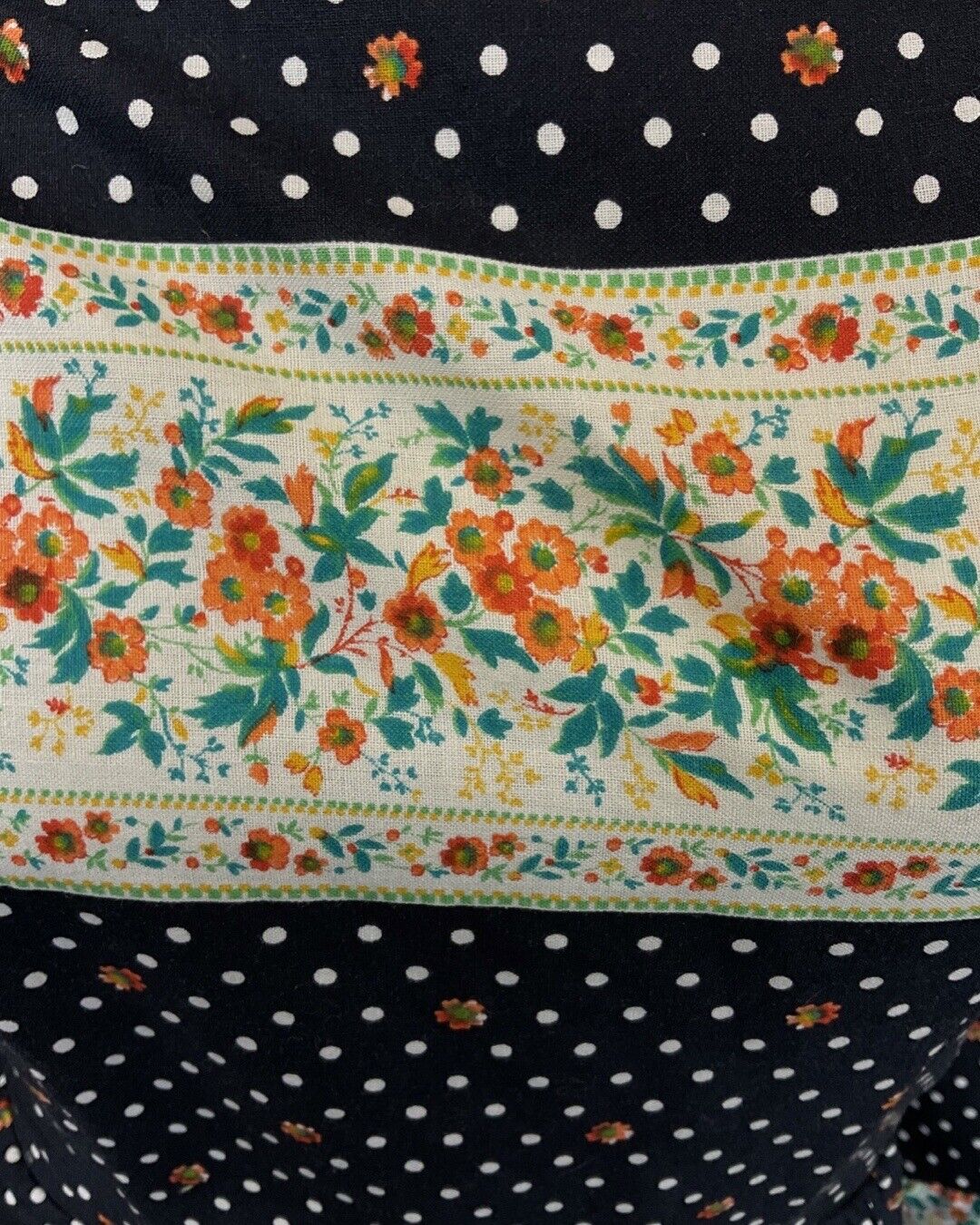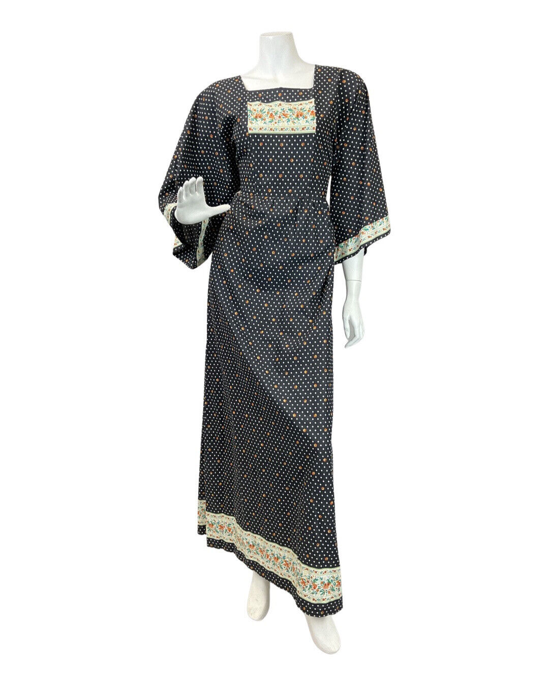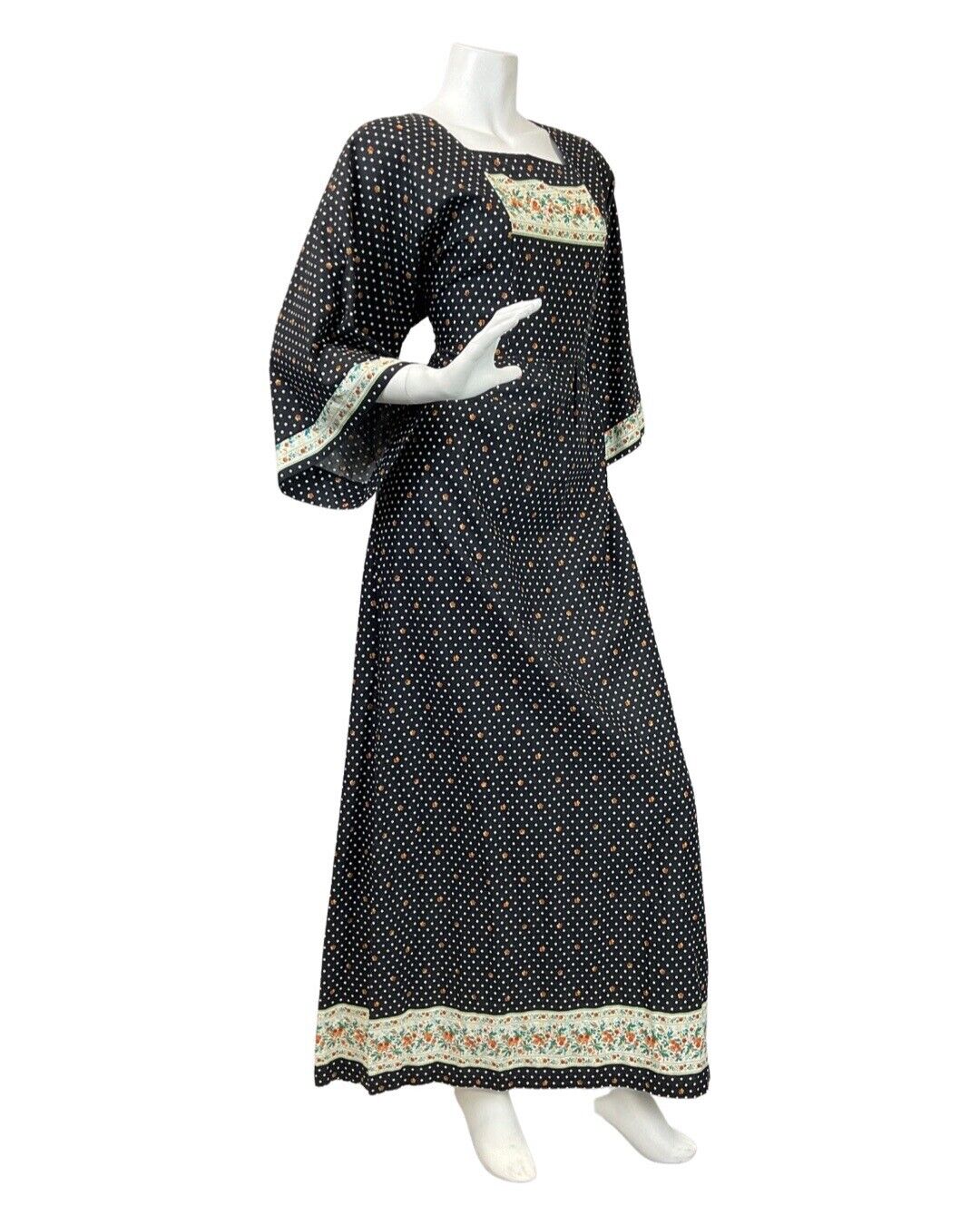 VTG 60s 70s BLACK WHITE ORANGE POLKA-DOT FLORAL BOHO PRAIRIE MAXI DRESS 10 12