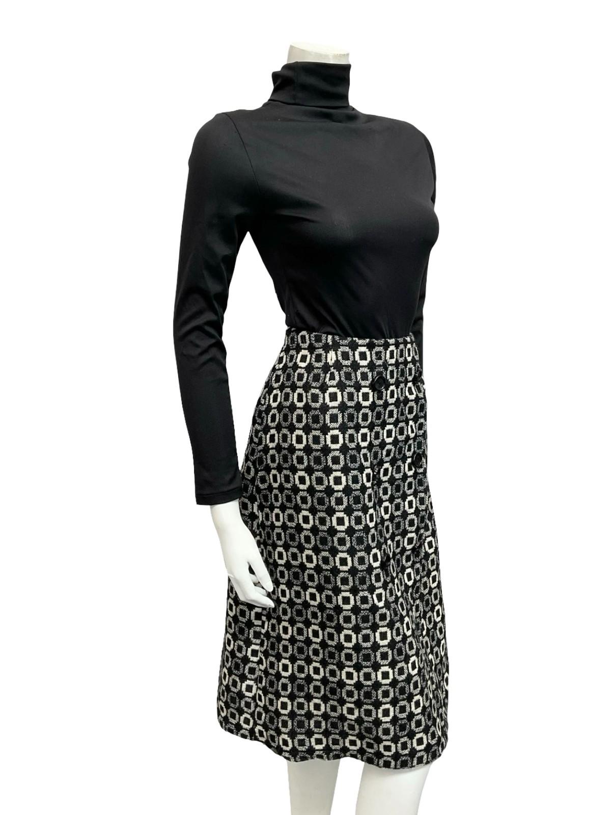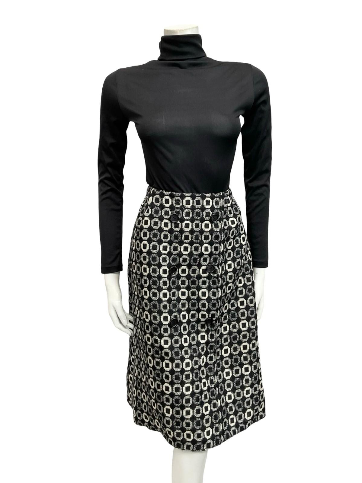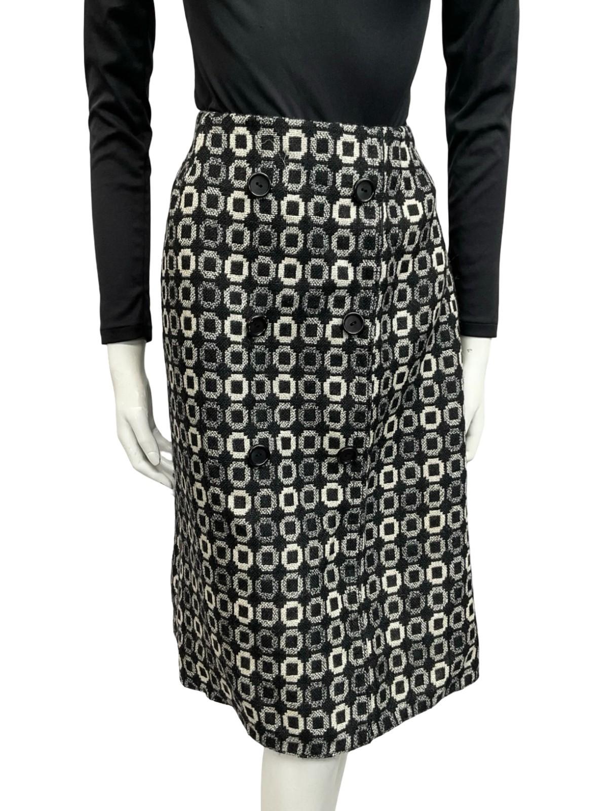 VTG 60S 70S BLACK WHITE WOOL GEOMETRIC CIRCLE TILE PRINT DOUBLE BREAST SKIRT 12