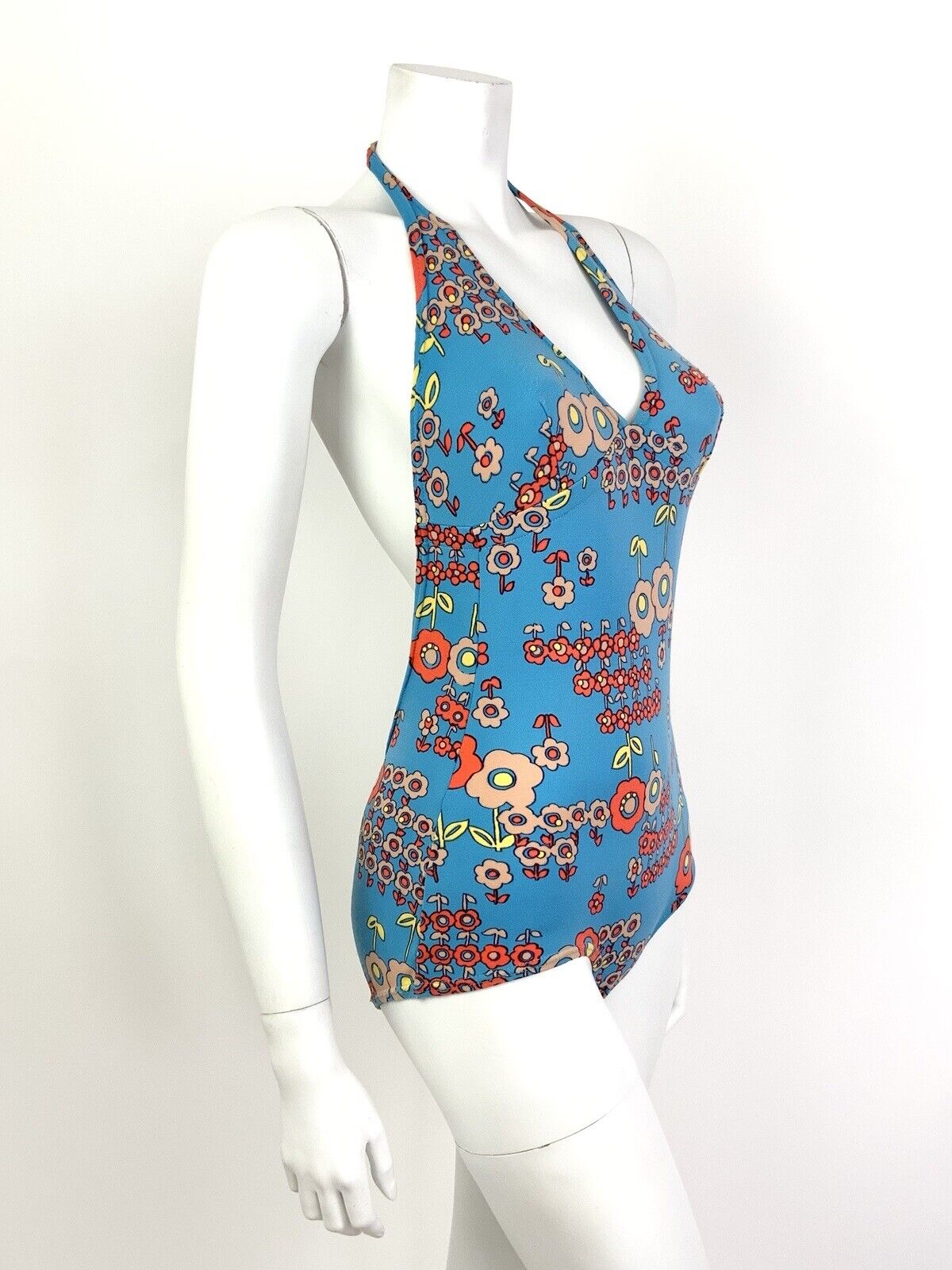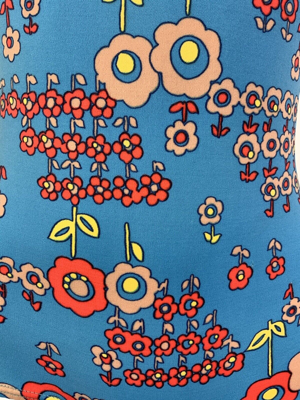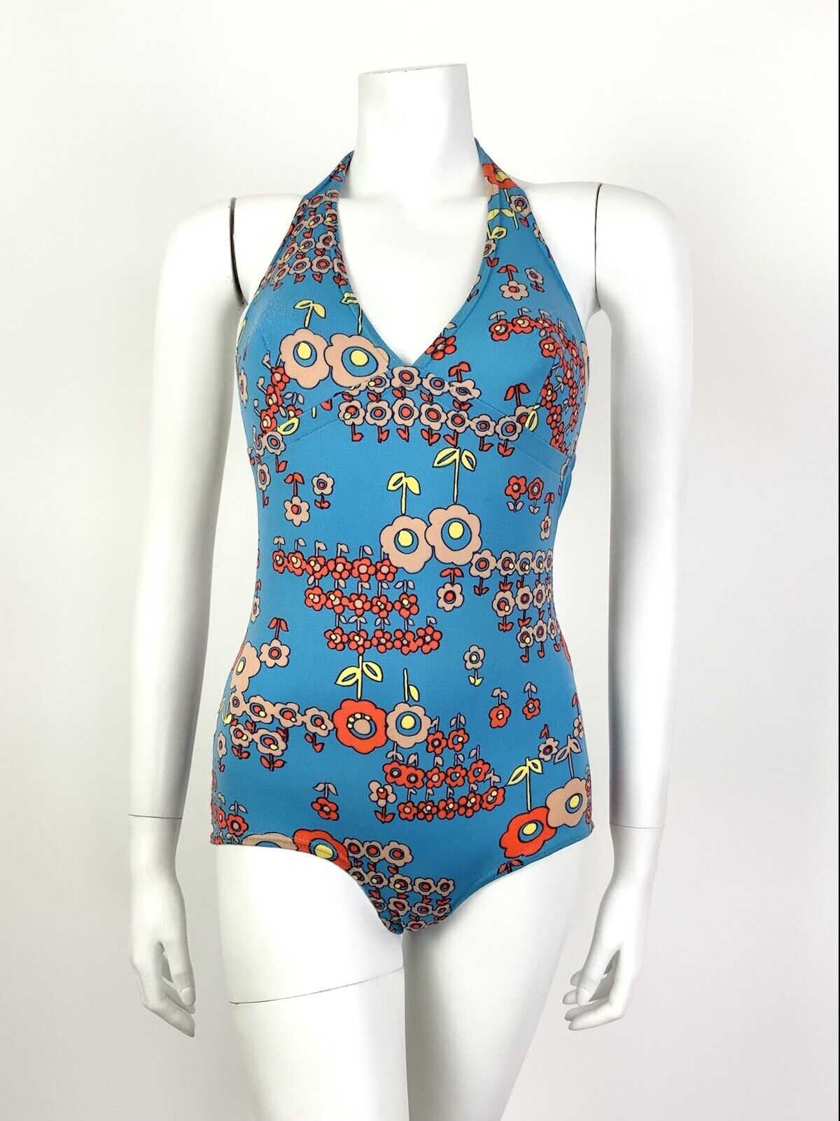 VTG 60s 70s BLUE ORANGE FLORAL DAISY MOD PSYCHEDELIC BATHING SWIM SUIT 8 10