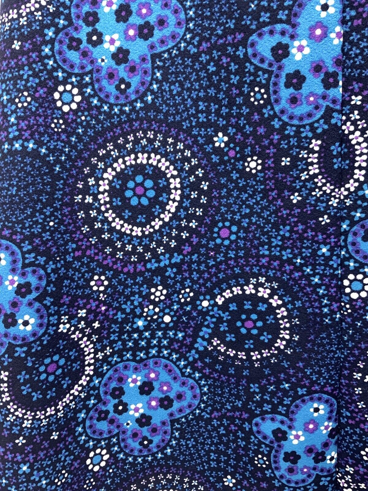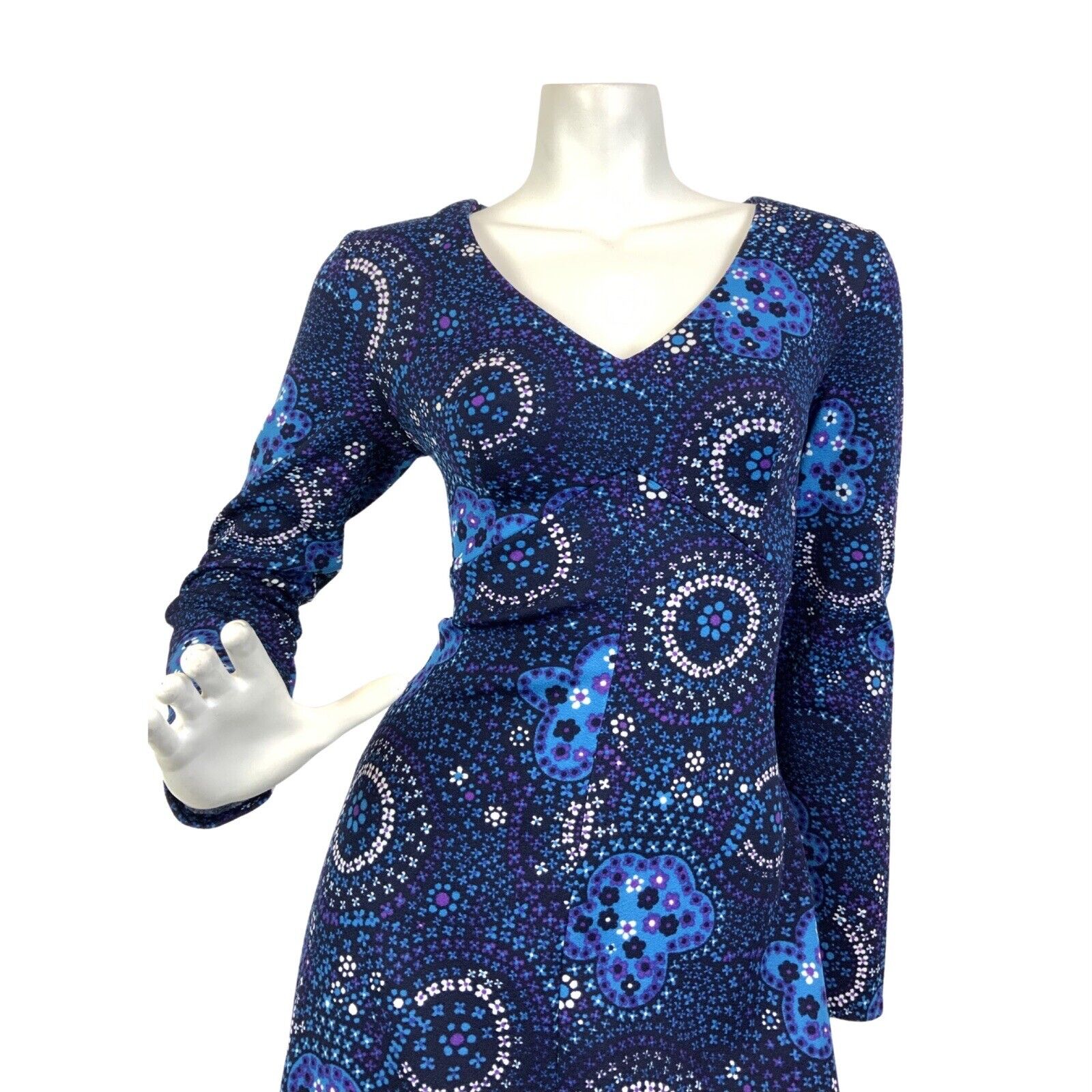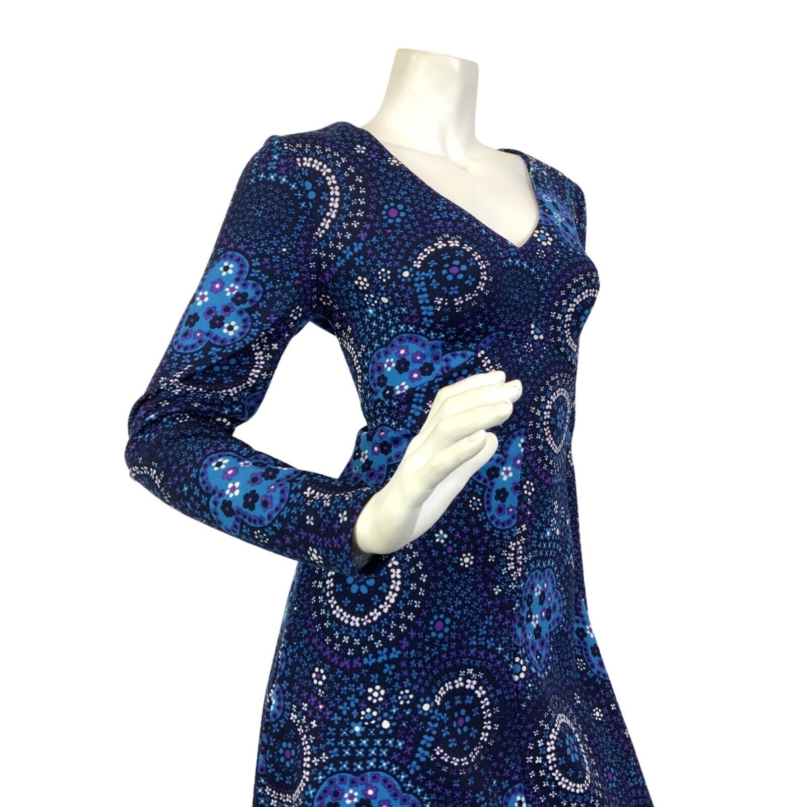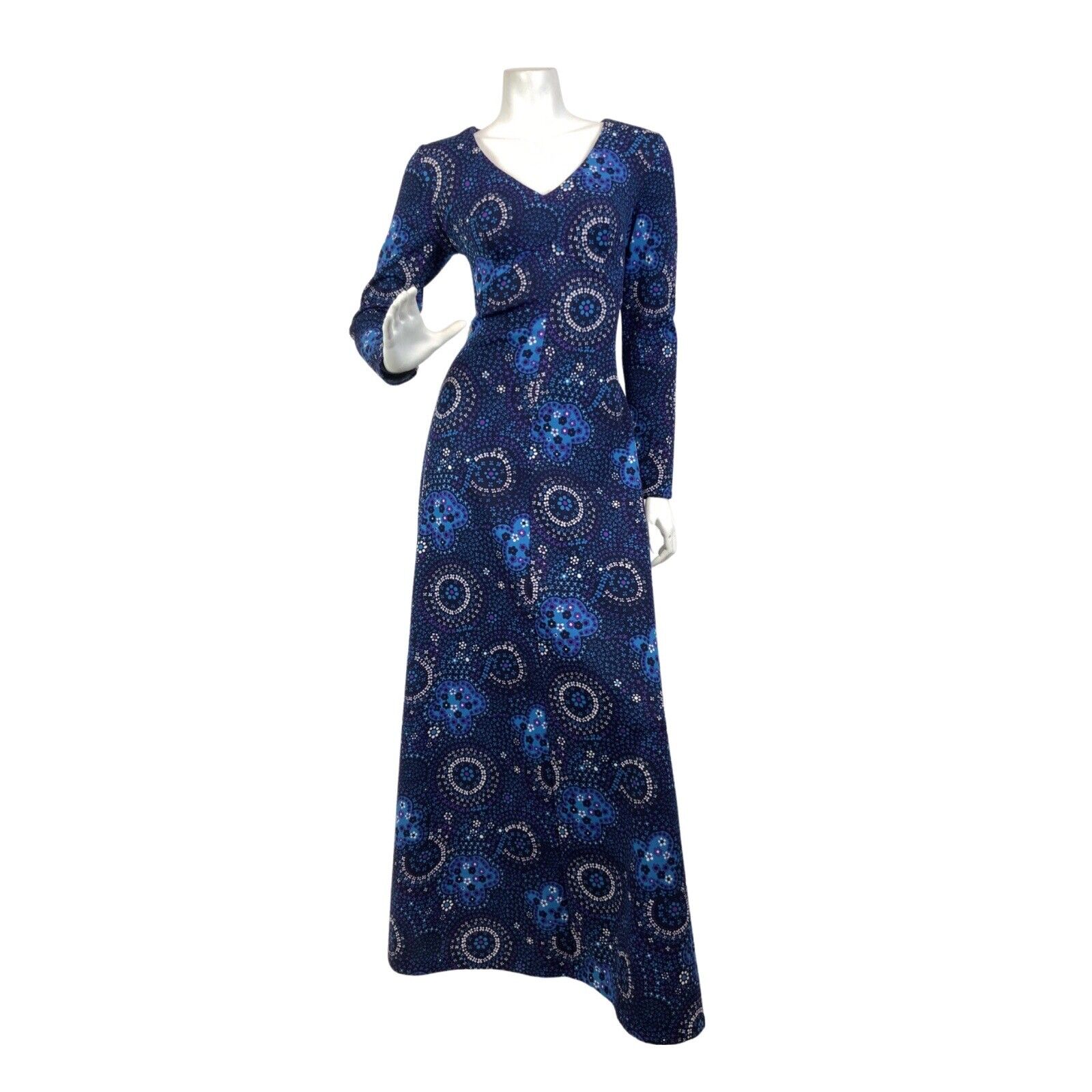 VTG 60s 70s BLUE PURPLE WHITE PSYCHEDELIC FLORAL DITSY MANDALA MAXI DRESS 10 12