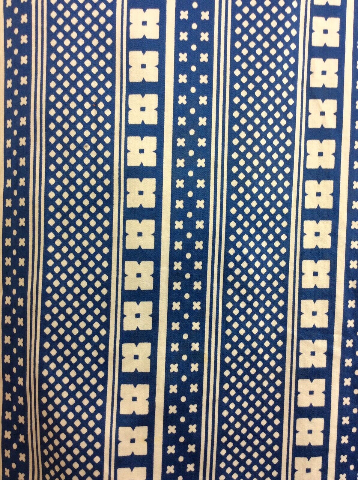 70s button down dress in blue cotton. Cute white flower abstract print. White buttons up the front.Wide collar. The dress is not lined