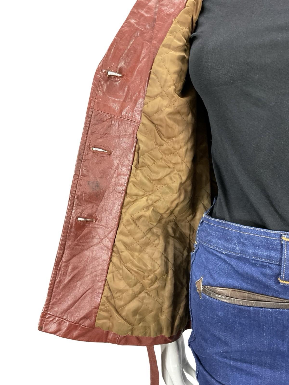 VTG 60S 70S BURGUNDY RED LEATHER GOTHIC DIAMOND COLLAR MOD TIE WAIST JACKET 8
