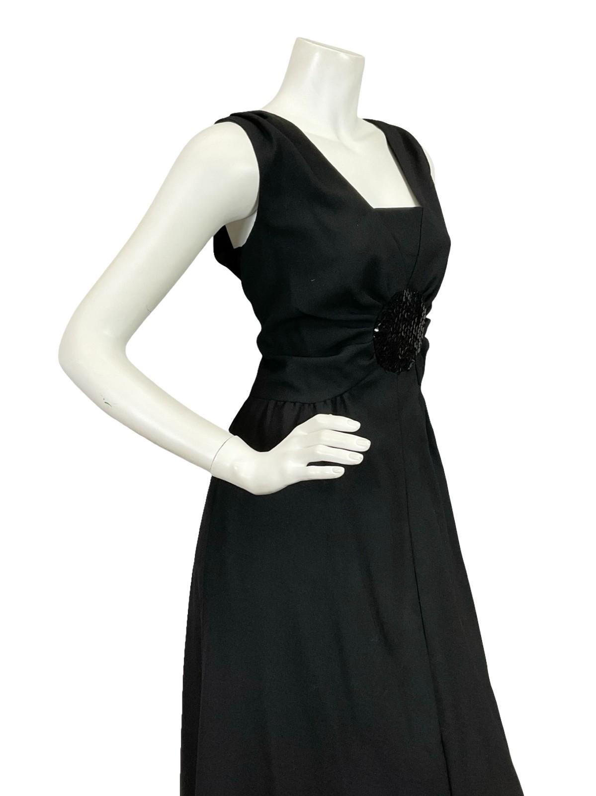 VTG 60S 70S CLASSIC BLACK SEQUIN MONOCHROME RUCHED DISCO STUDIO 54 MAXI DRESS 12