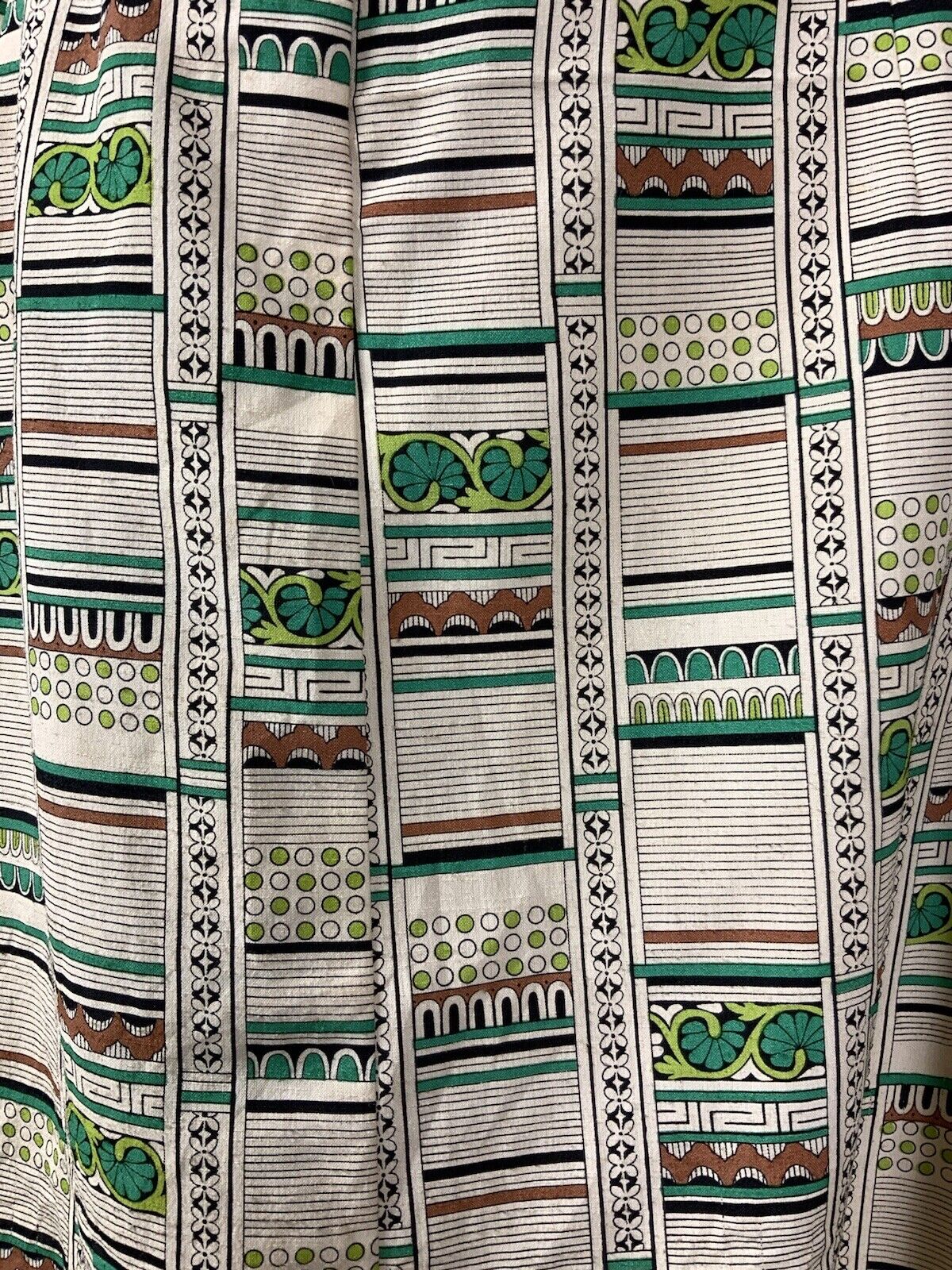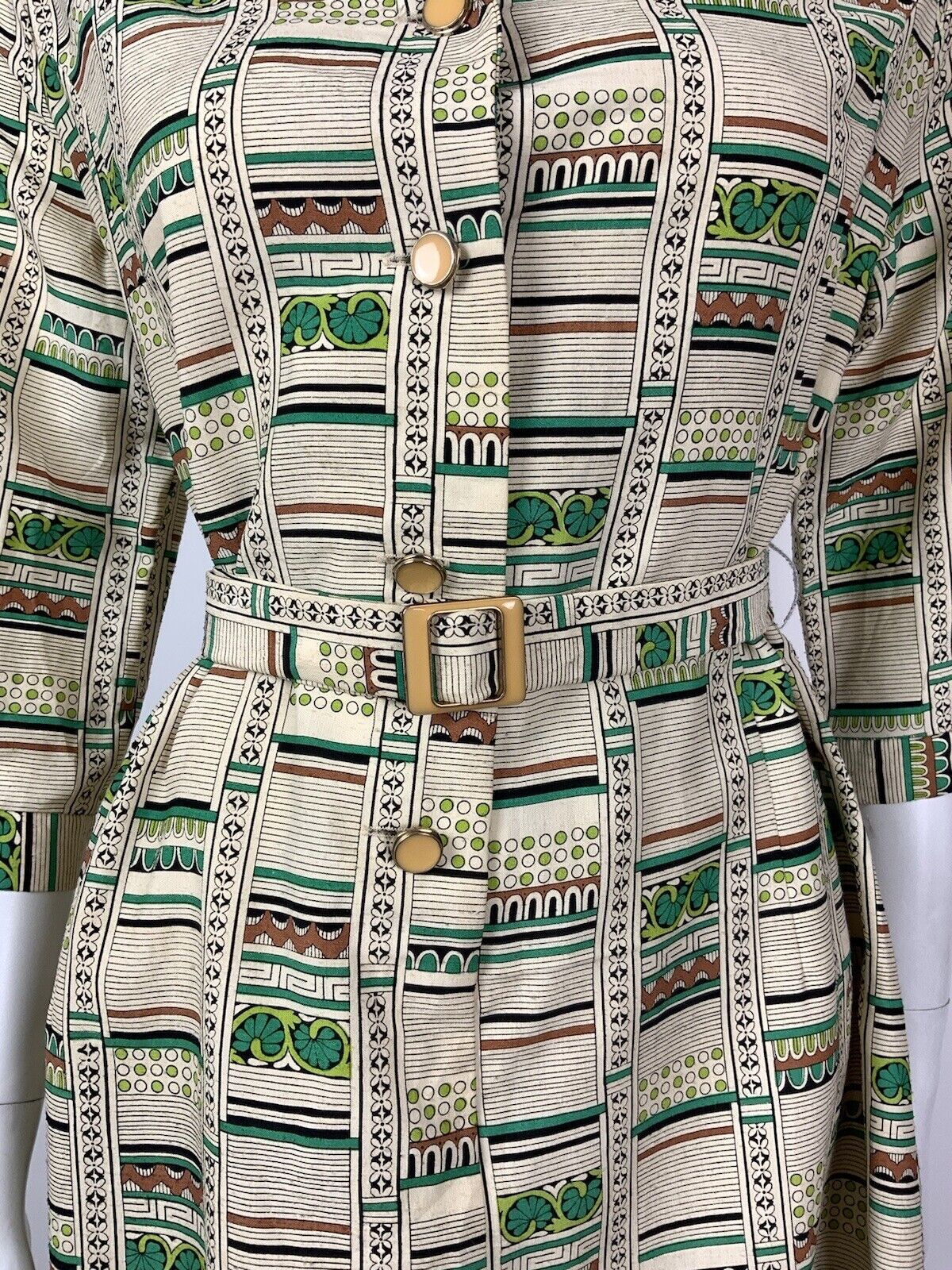 VTG 60s 70s CREAM GREEN BLACK BROWN STRIPED FLORAL GEOMETRIC SHIRT DRESS 14 16