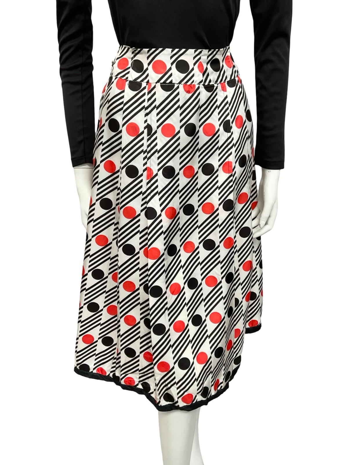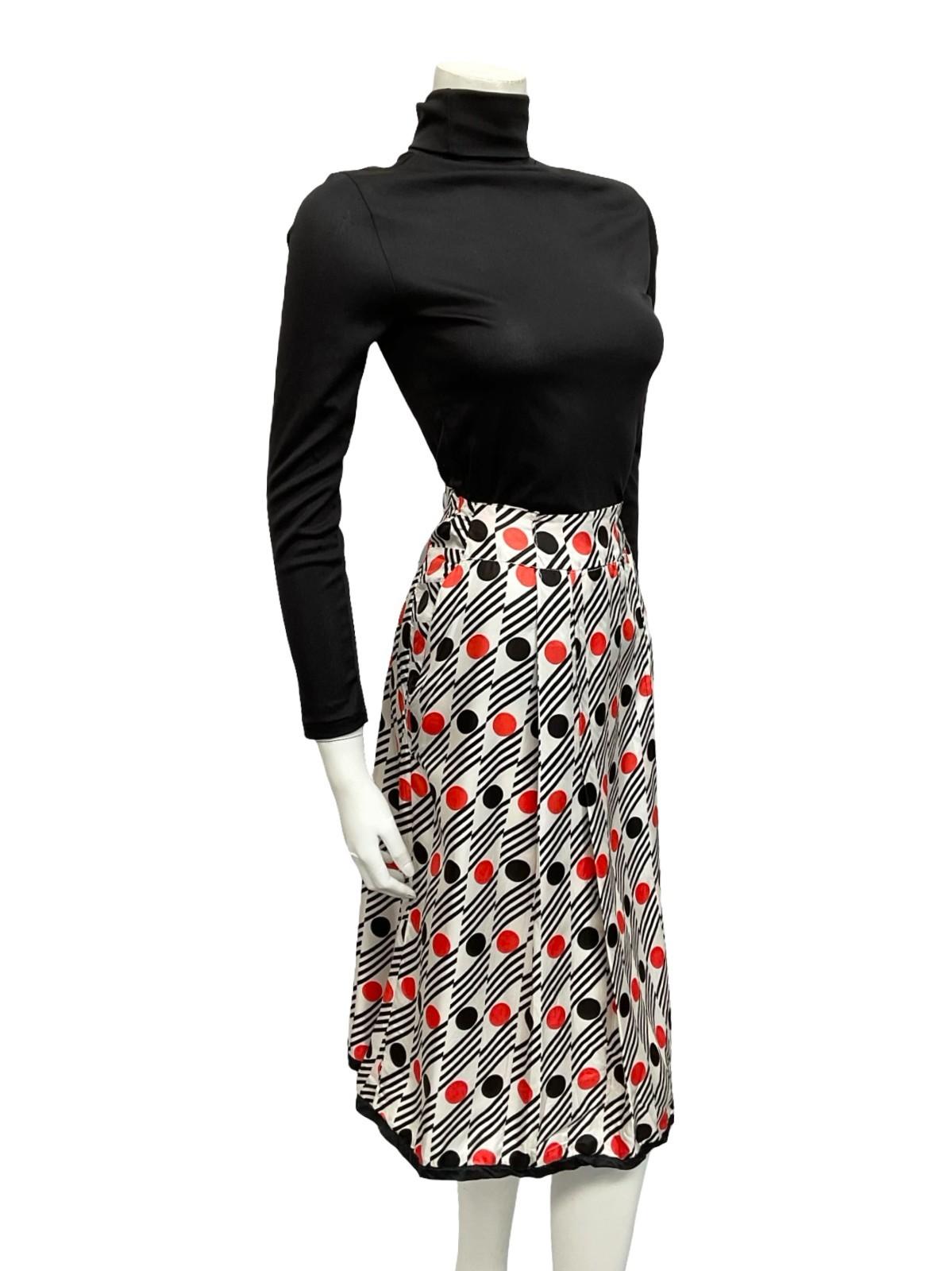 VTG 60S 70S GEOMETRIC WHITE BLACK RED STRIPE DOT MIDI SKIRT 8 10 S