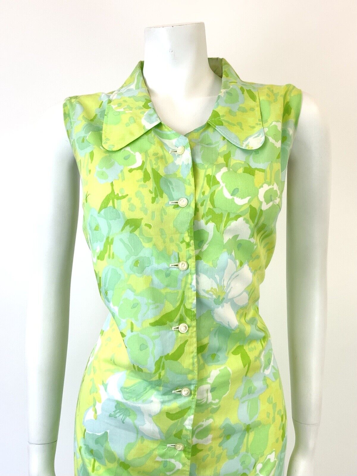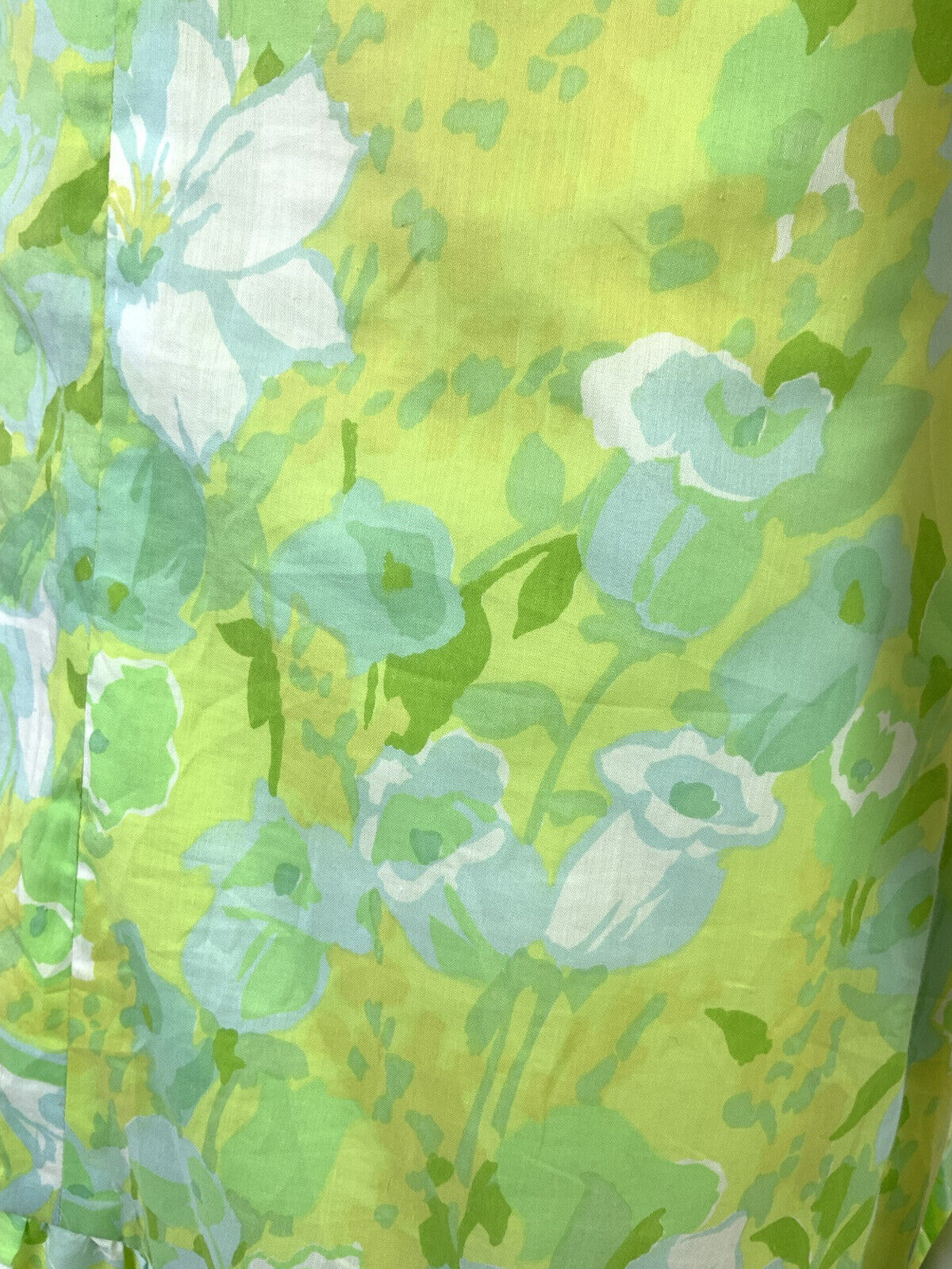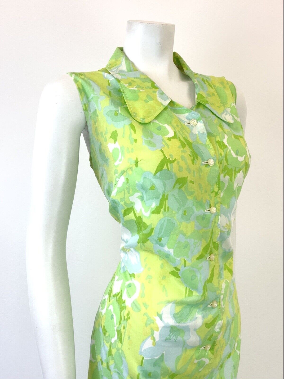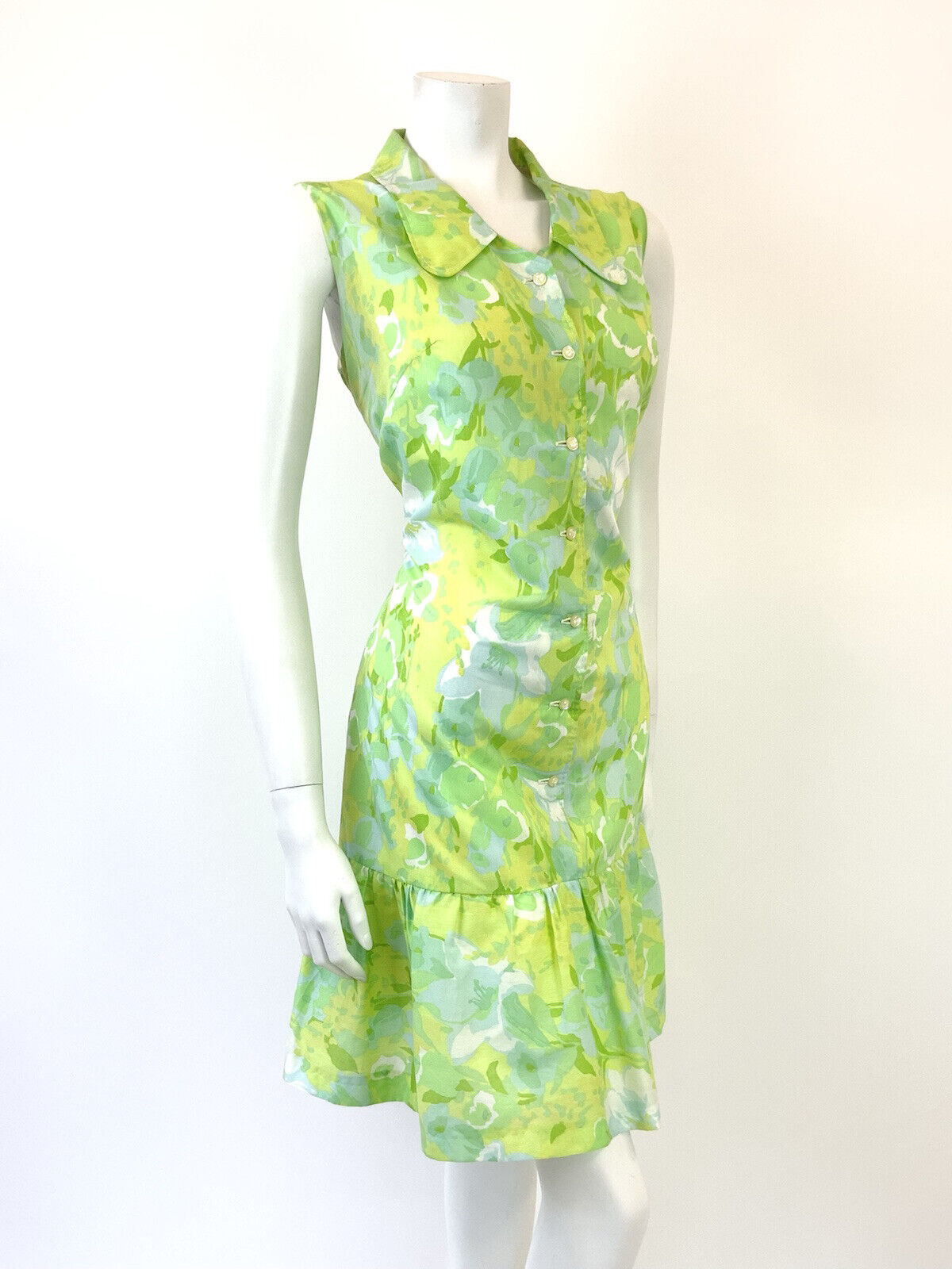 VTG 60s 70s GREEN BLUE YELLOW PSYCHEDELIC FLORAL SPOON COLLAR MOD DRESS 14 16