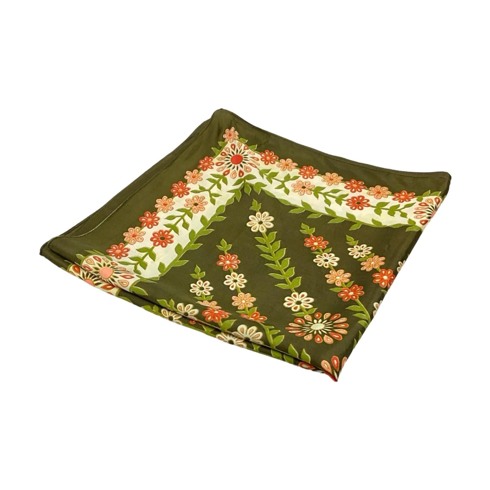 *VTG 60S 70S GREEN PINK RED CREAM FLORAL BOHO FOLK FLOWER POWER SCARF
