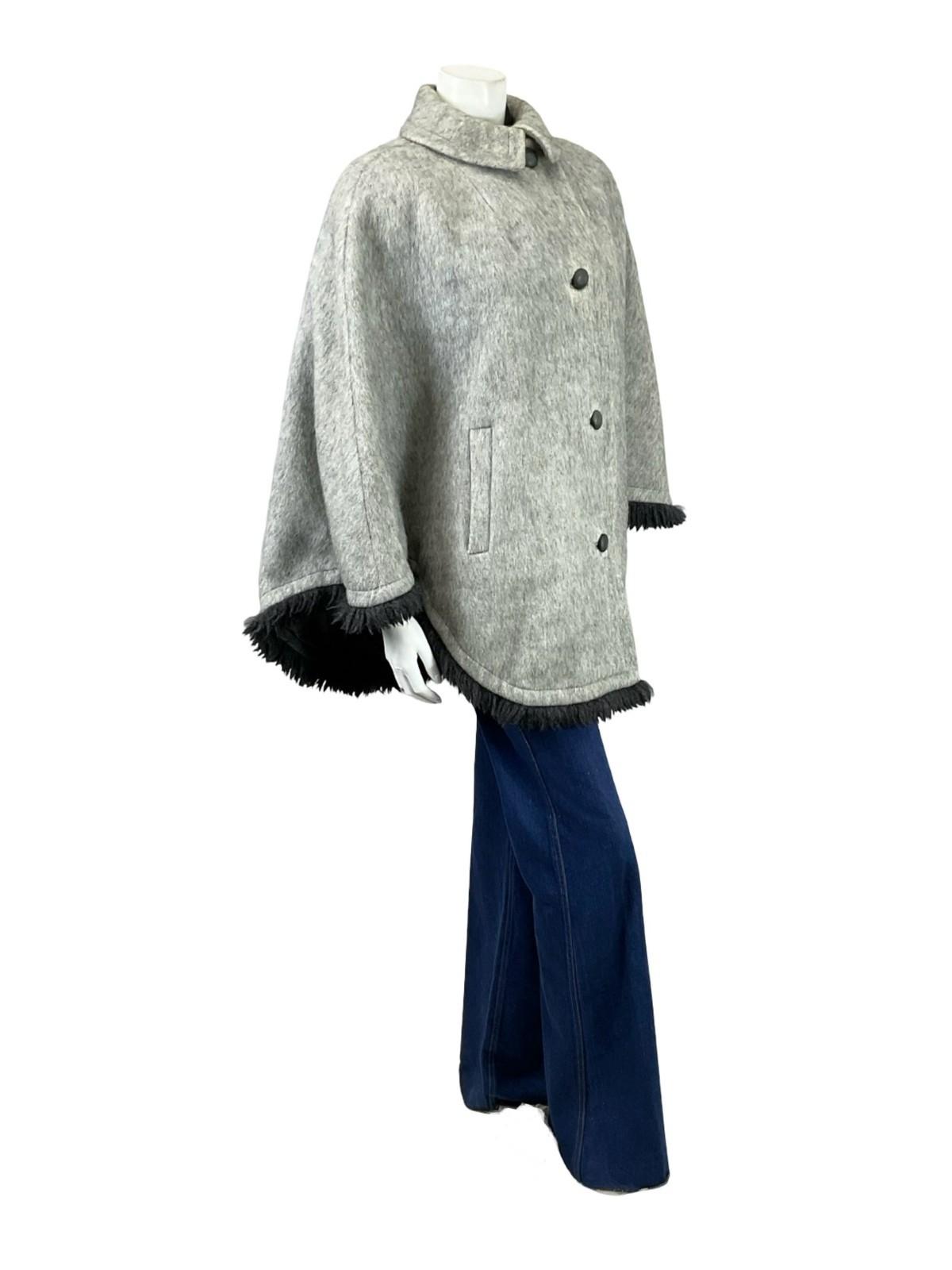 VTG 60S 70S GREY BLACK FRINGE MONOCHROME MOD CAPE WITH POCKETS 12 M