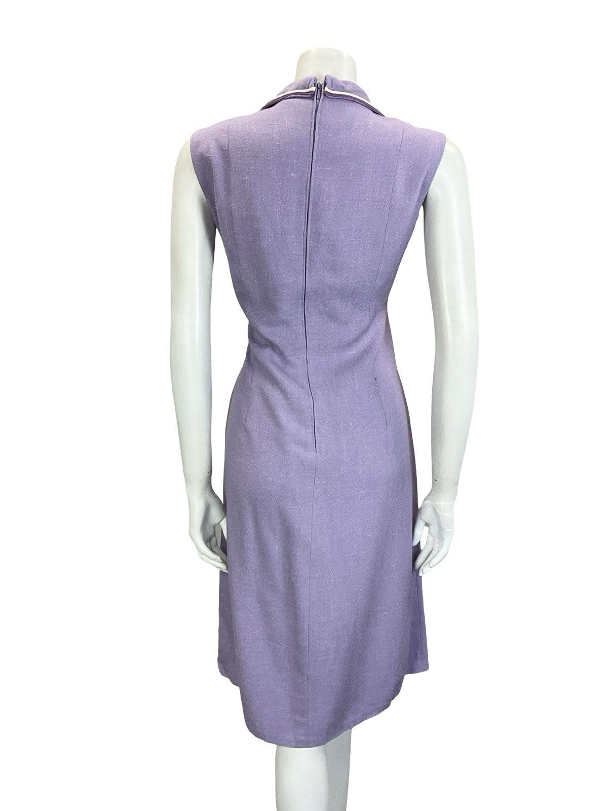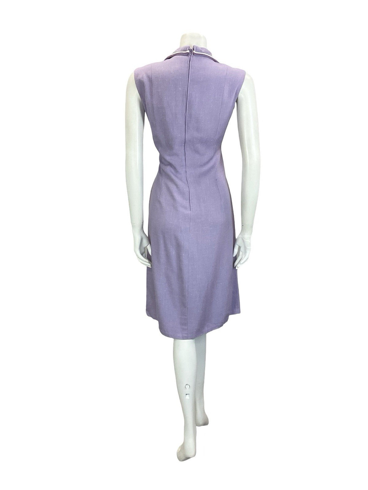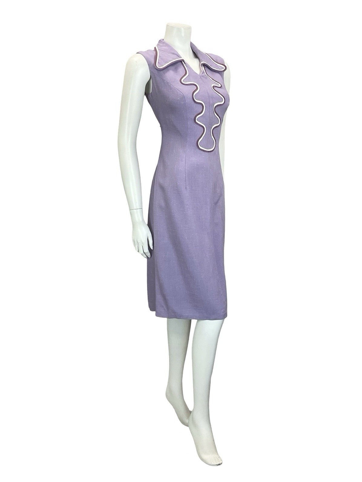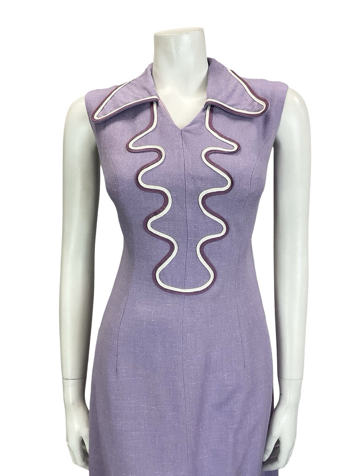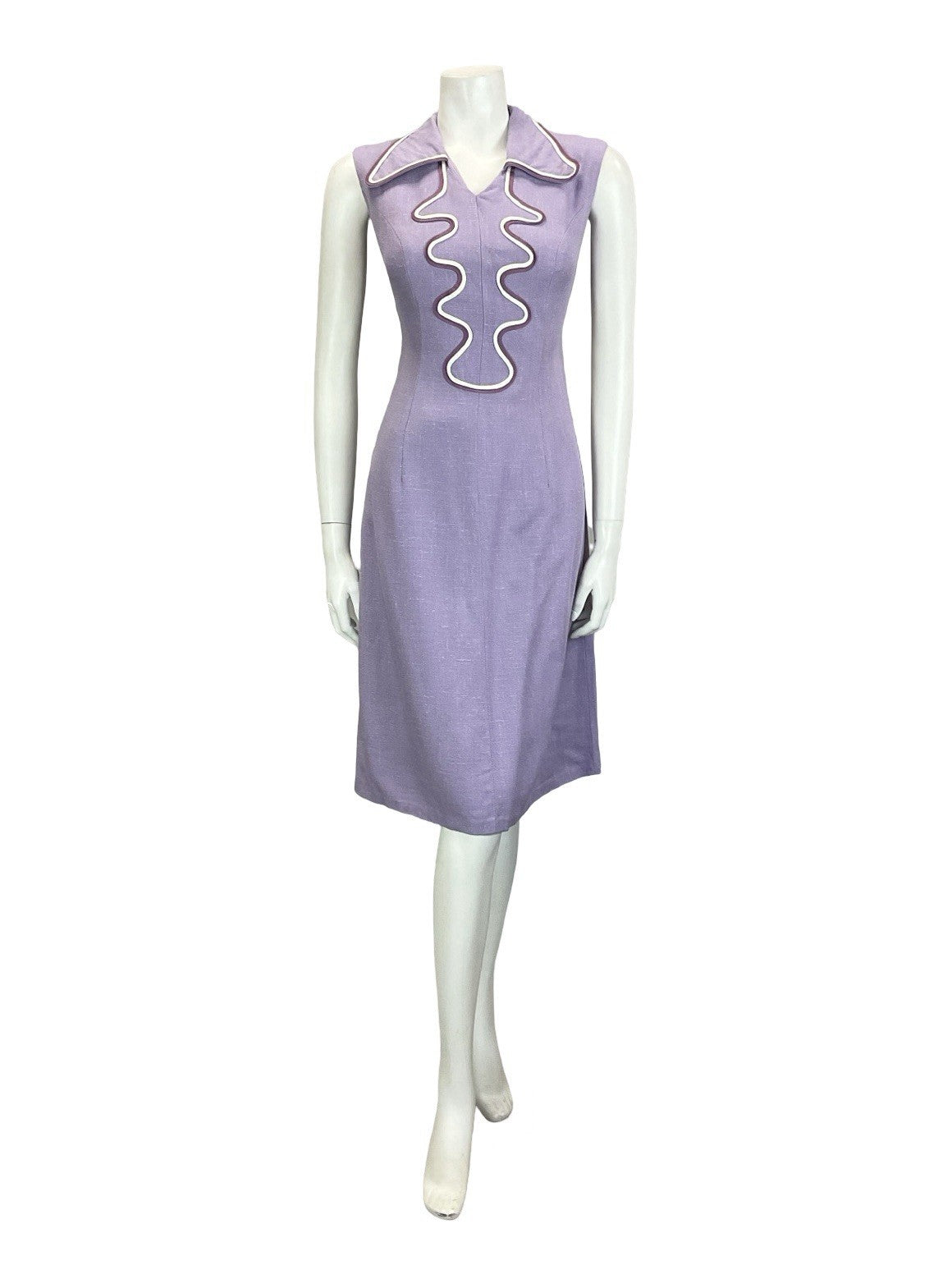 VTG 60S 70S LILAC PURPLE WHITE WAVY DOG EAR COLLAR MOD SHIRT DRESS M 12 14
