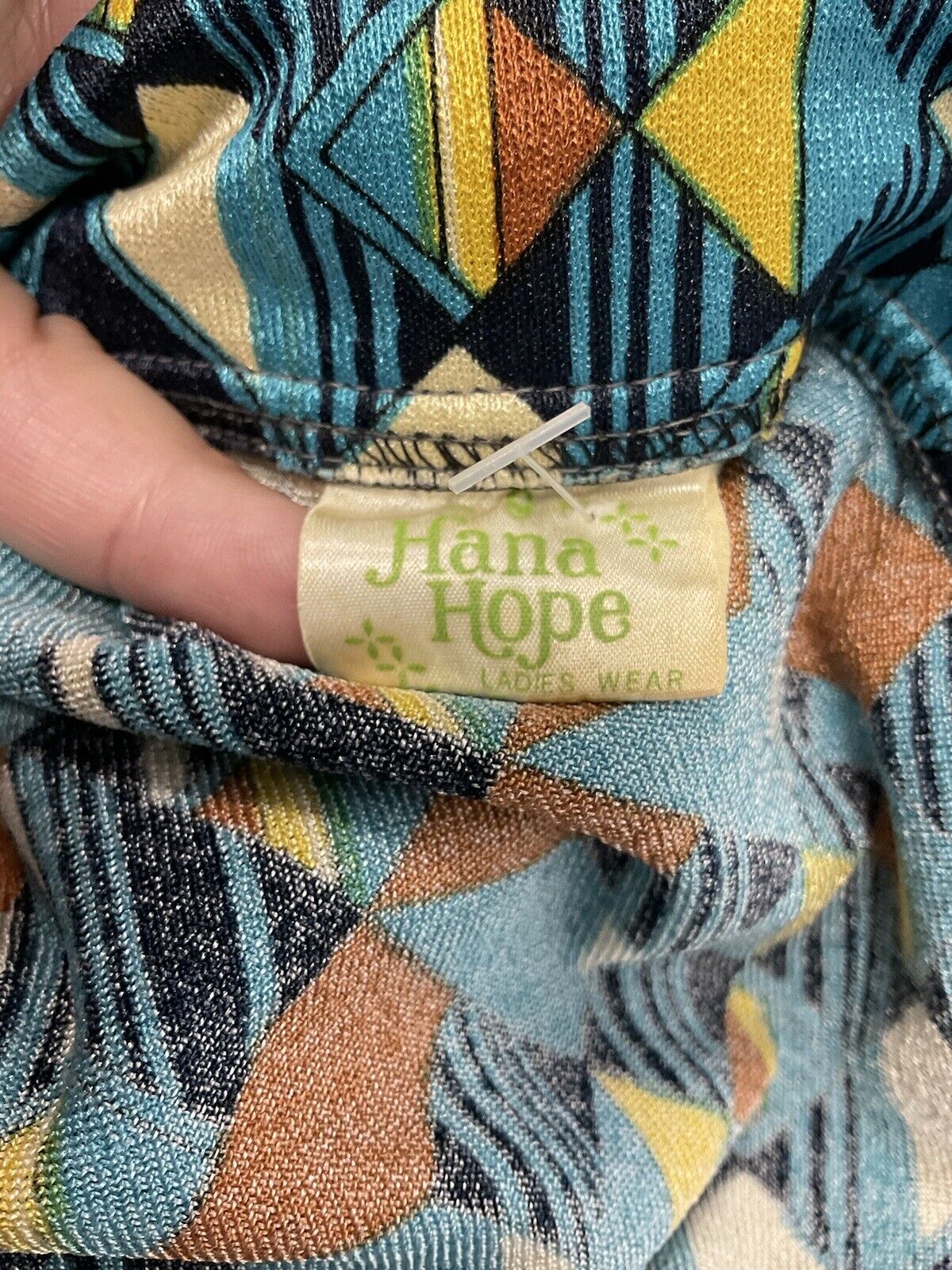 VTG 60s 70s METALLIC BLUE BRONZE CREAM GEOMETRIC CHECKED DAGGER BLOUSE 8 10