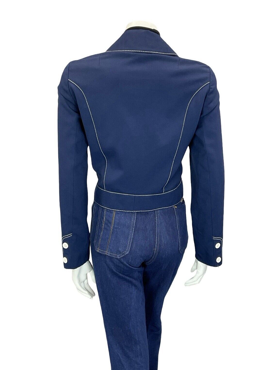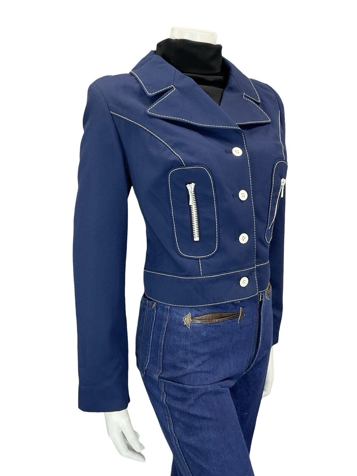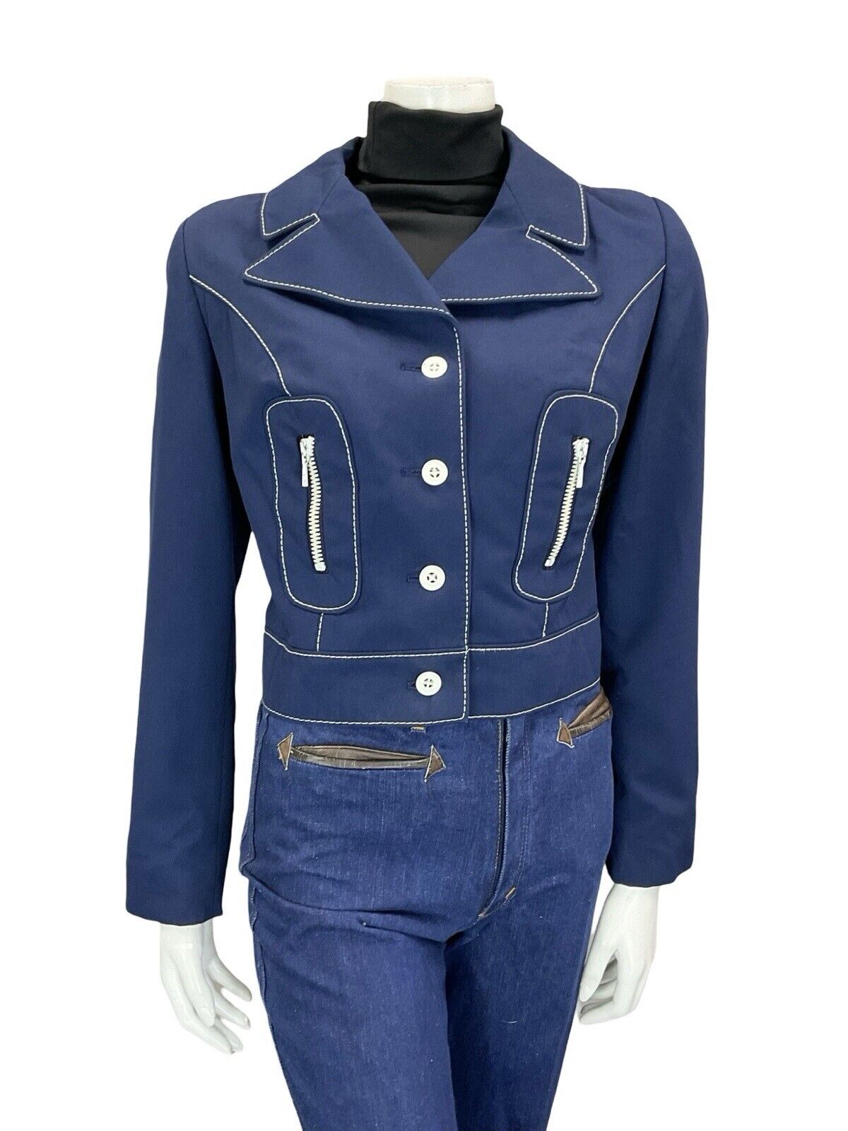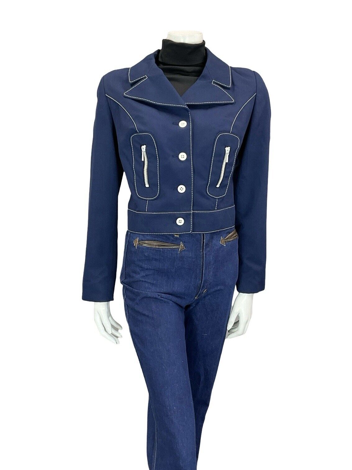 VTG 60S 70S NAVY BLUE WHITE CONTRAST STITCHING MOD NAUTICAL CROPPED JACKET 12