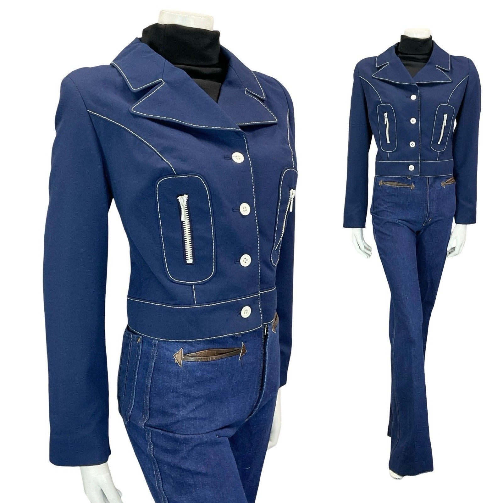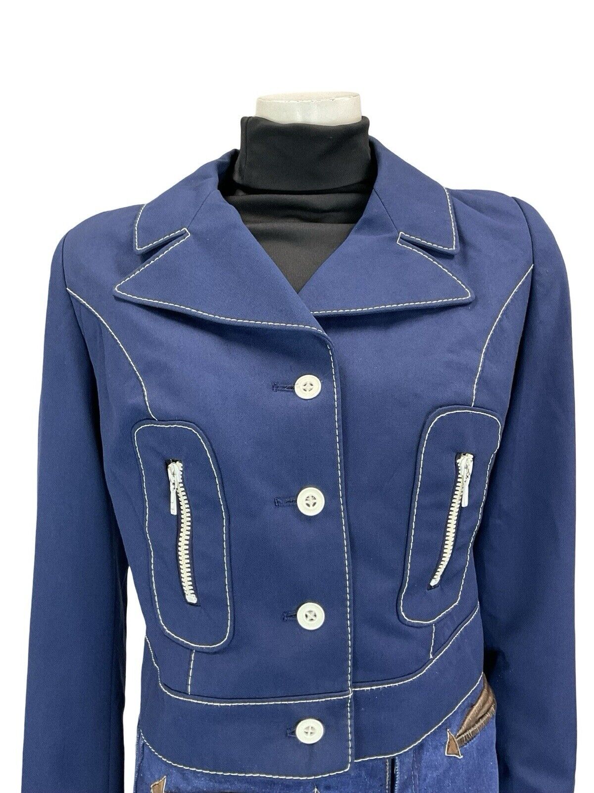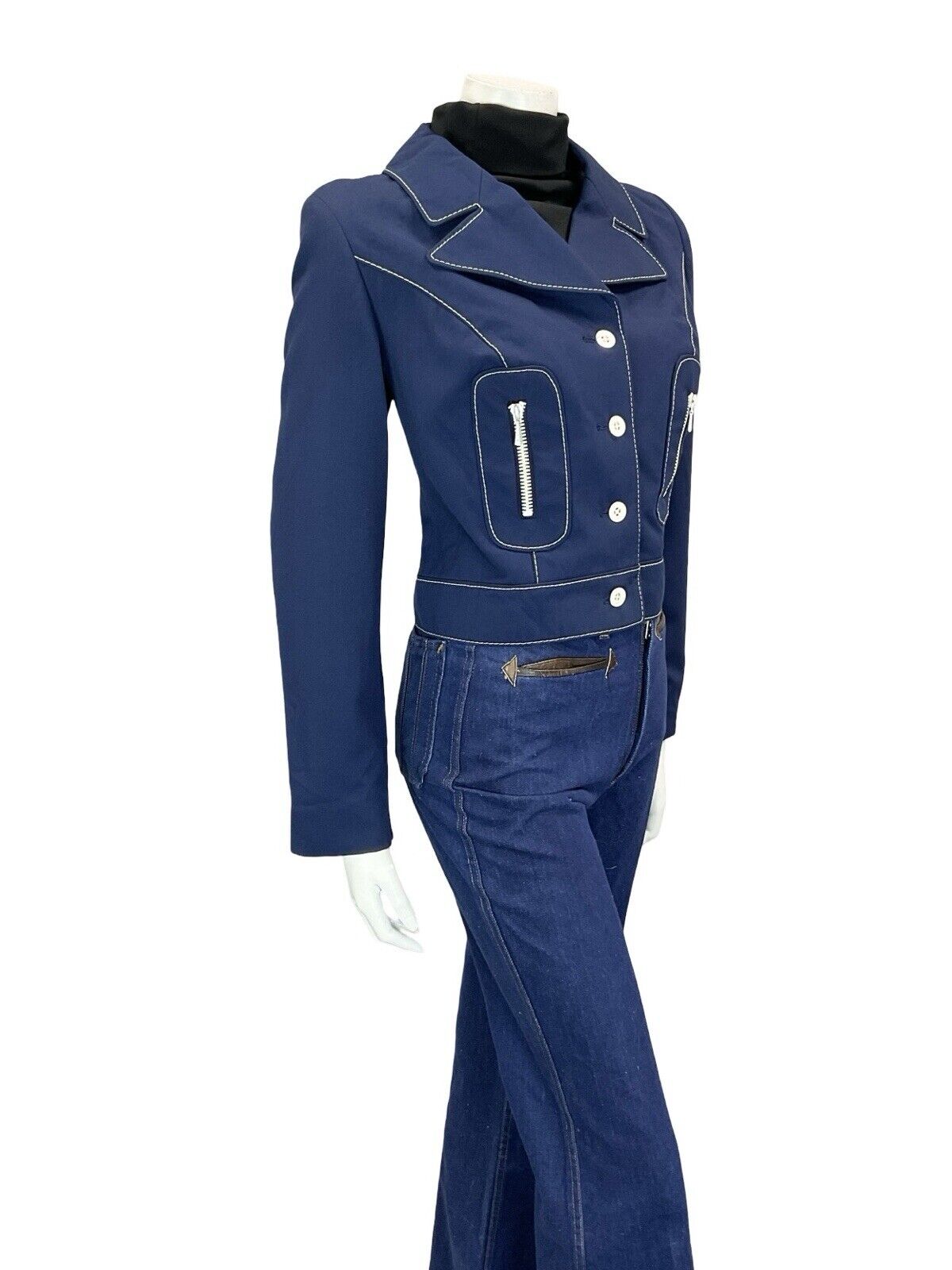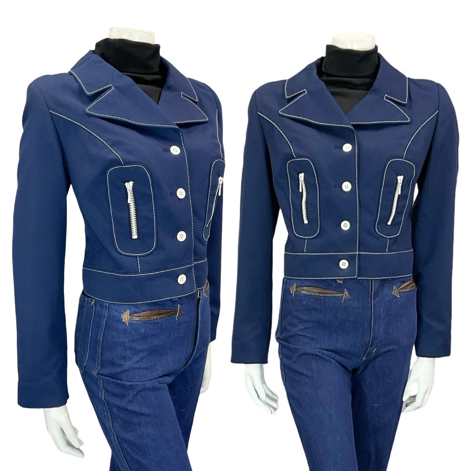 VTG 60S 70S NAVY BLUE WHITE CONTRAST STITCHING MOD NAUTICAL CROPPED JACKET 12