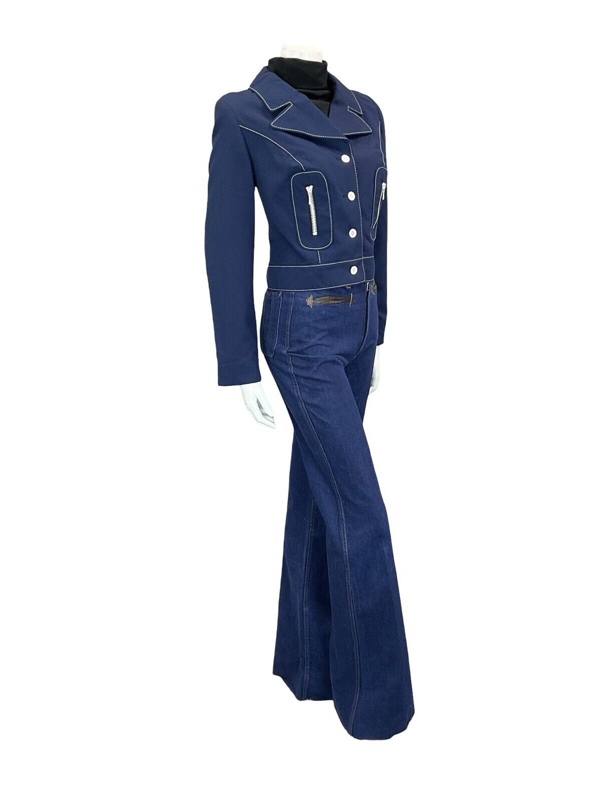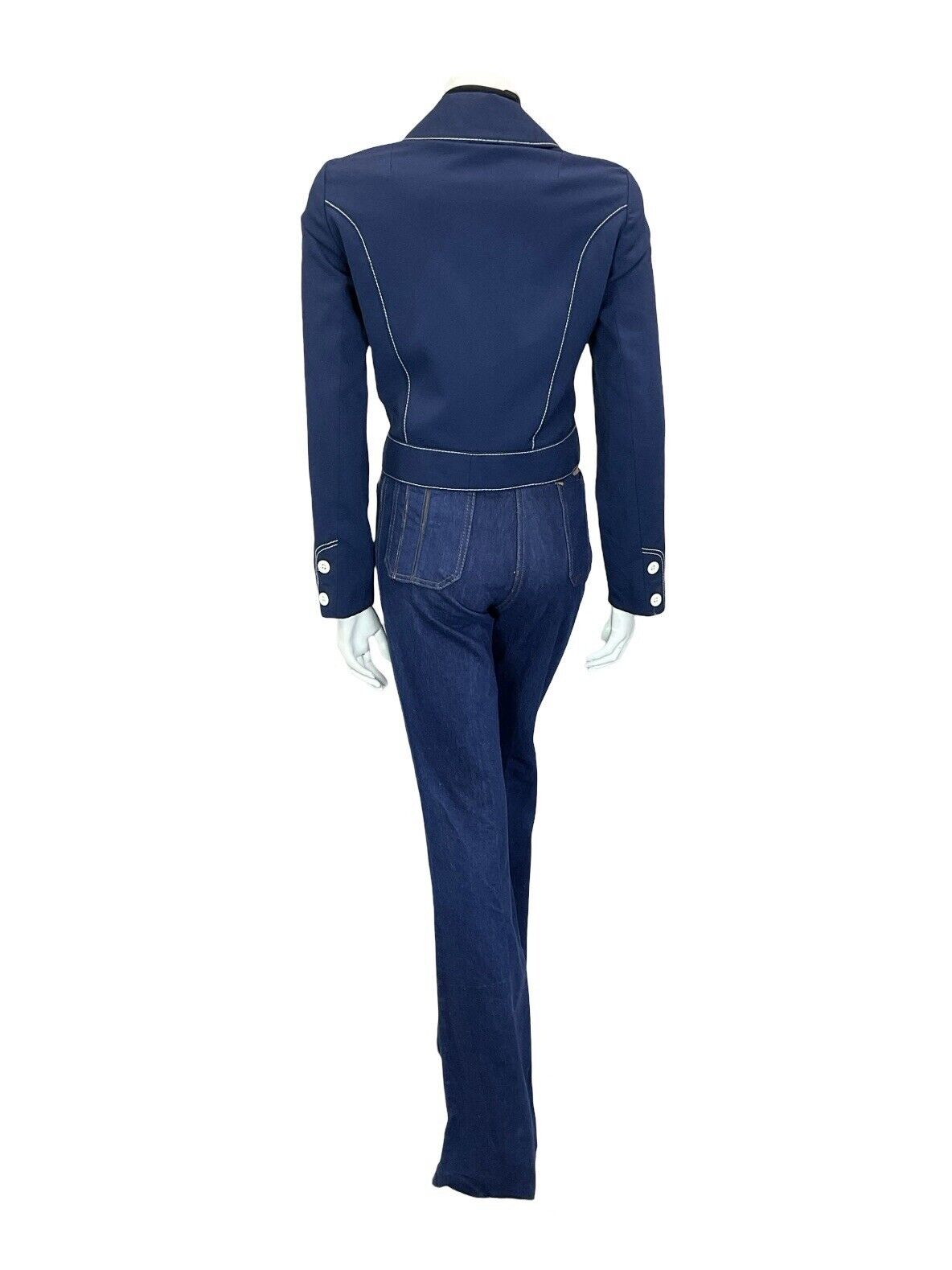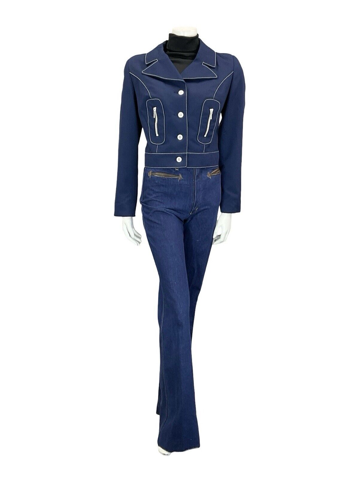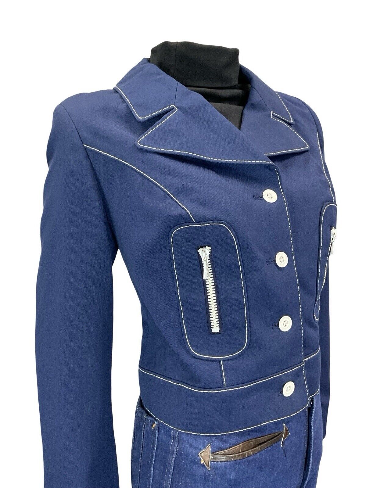VTG 60S 70S NAVY BLUE WHITE CONTRAST STITCHING MOD NAUTICAL CROPPED JACKET 12