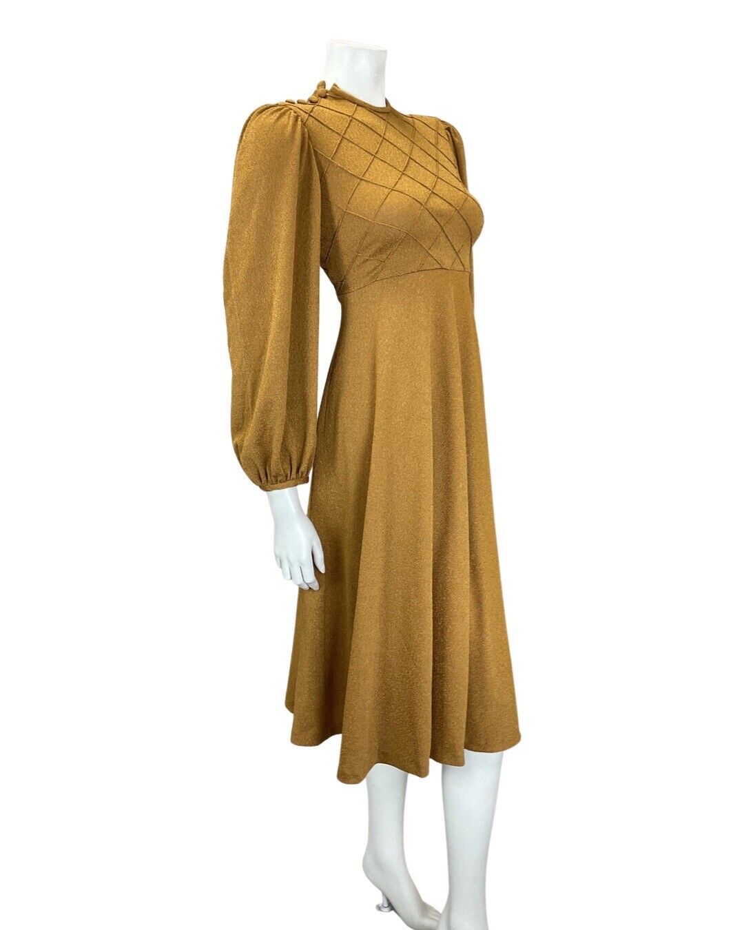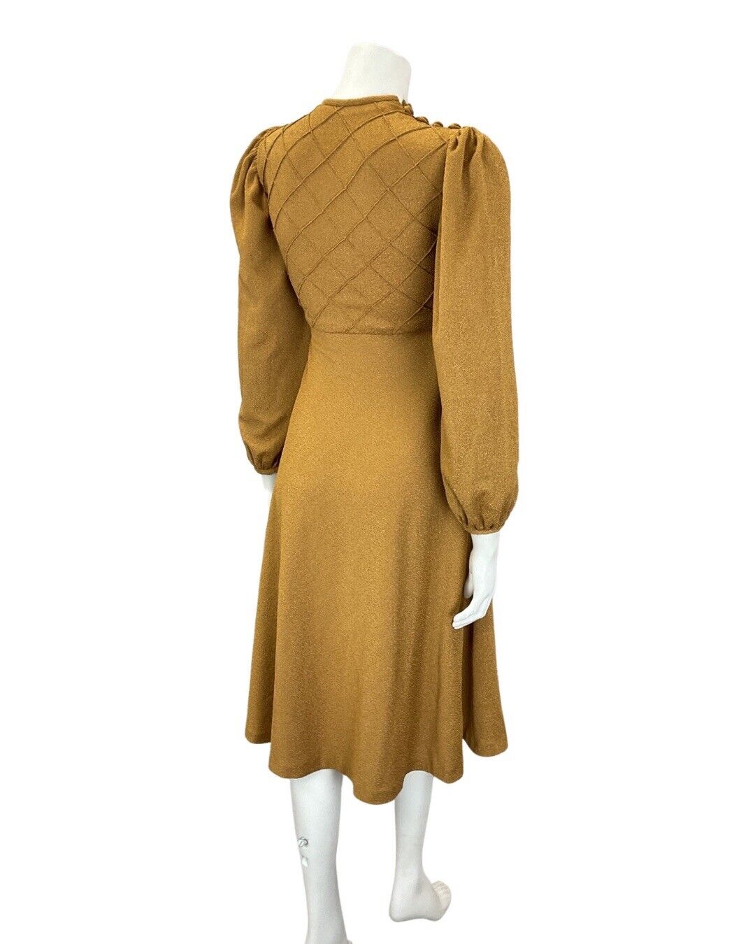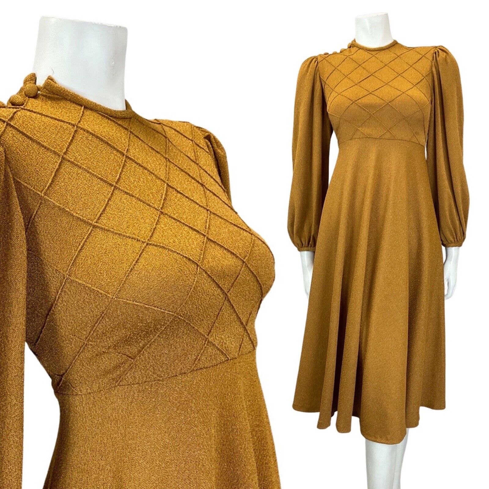 This is a gorgeous vintage dress made from a dark gold knitted polyester blend fabric with a small amount of stretch and no additional lining. This dress would best fit: 8 please check your measurements against the ones provided below, Bust: 33" Waist: 30" Hips: 52" Length: 43.5" PLEASE NOTE: This garment has been measured flat and doubled for bust (armpit to armpit), waist and hip measurements, we measure the length down the back of the dress, measurements may differ slightly due to dress styles and fabrics. We ignore any existing size labels as vintage brands differed so much. Items shown on our mannequin may be clipped to fit. This garment is true vintage so please be aware there may be some signs of wear as expected from a garment of this age. We do not list stains to area likes linings that are hidden or things that can barely be seen without close inspection. These can include pin holes, small marks, light piling. We hand pick our items to make sure they are in great condition and fully wearable and we reject anything of poor condition. The majority of our items are 40-70 years old. If you think we've missed something significant please get in touch, we are only human and we lose transaction fees on returns so we don't skip things on purpose. CHECK OUT OUR OTHER ITEMS, WE LIST EVERY WEEK! |
