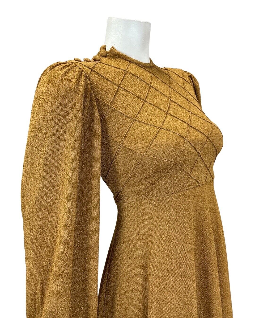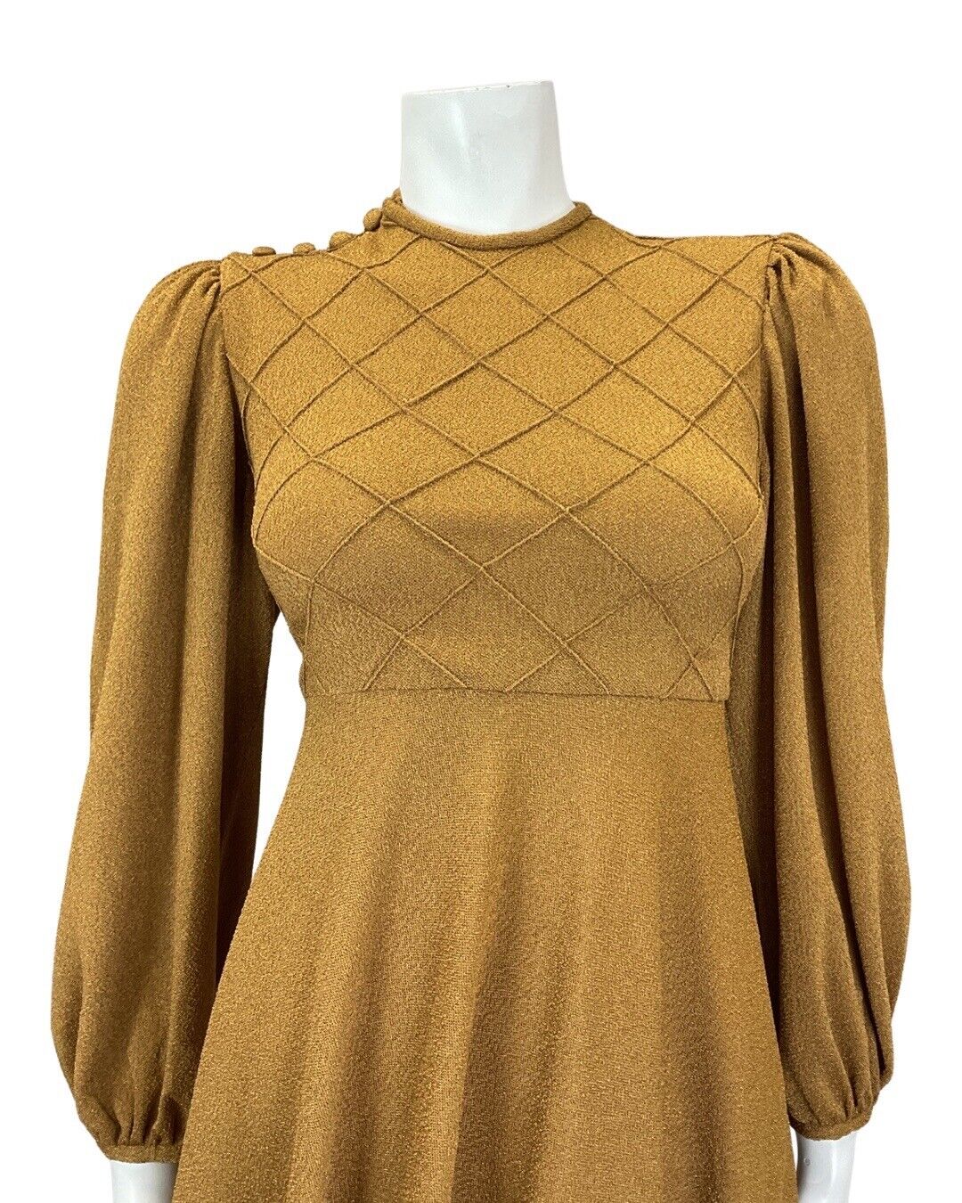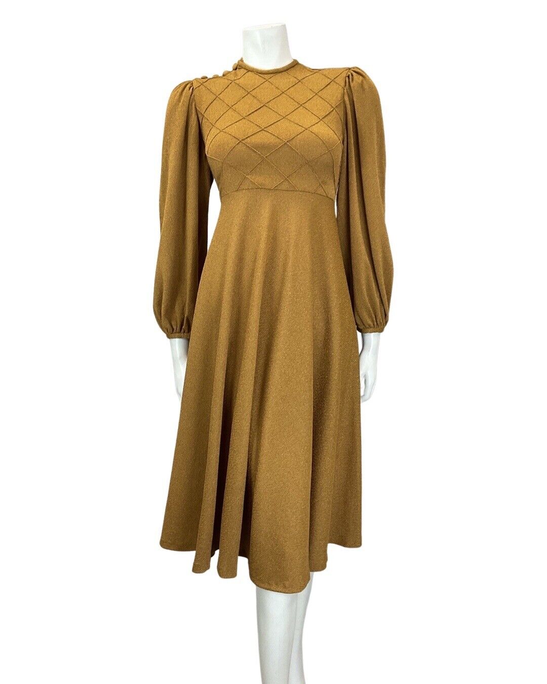 VTG 60s 70s OCHRE TAN BROWN DIAMOND BOHO MOD LONG SLEEVE SWING DRESS 8