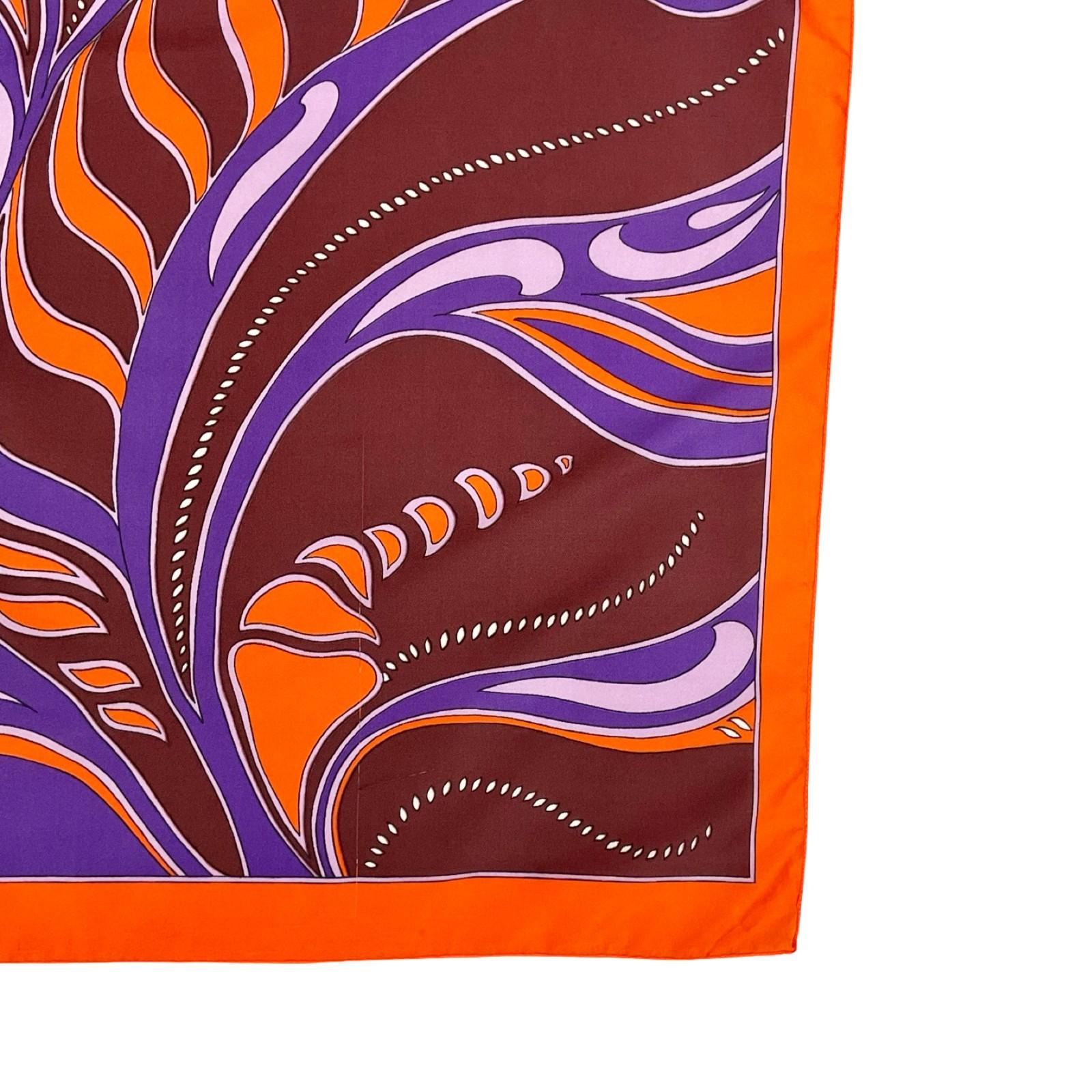 This is a beautiful 60s 70s psychedelic scarf made from synthetics printed with a swirling design in orange, purple, plum and white. This scarf has come to us with a small snag, but this does not impact wearability nor take away from the overall appearance of the scarf.