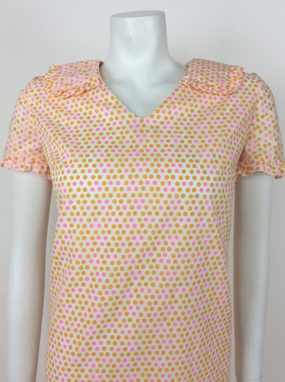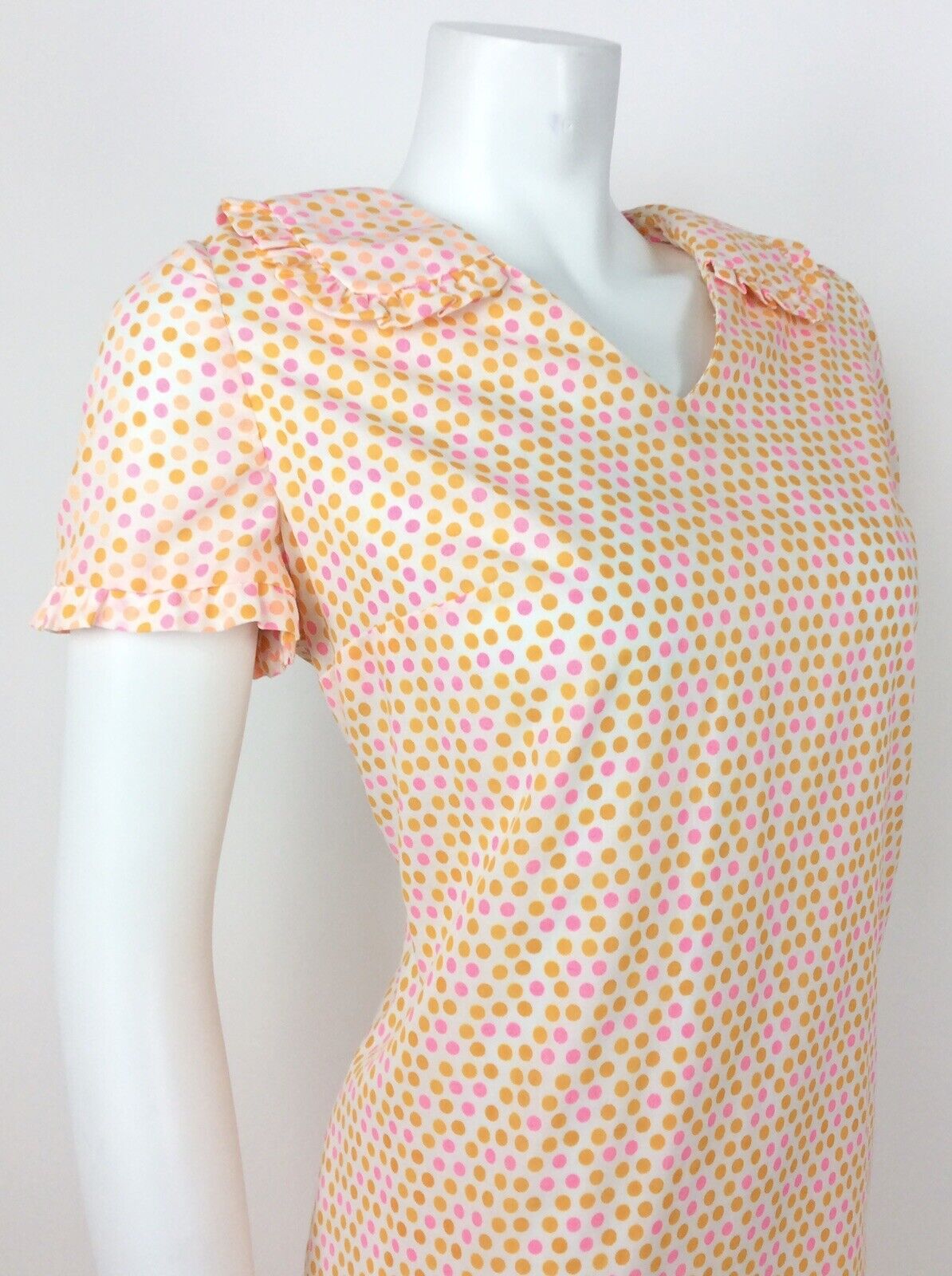 VTG 60s 70s ORANGE PINK WHITE POLKA DOT RUFFLE COLLAR TRAPEZE DRESS 10 12 14