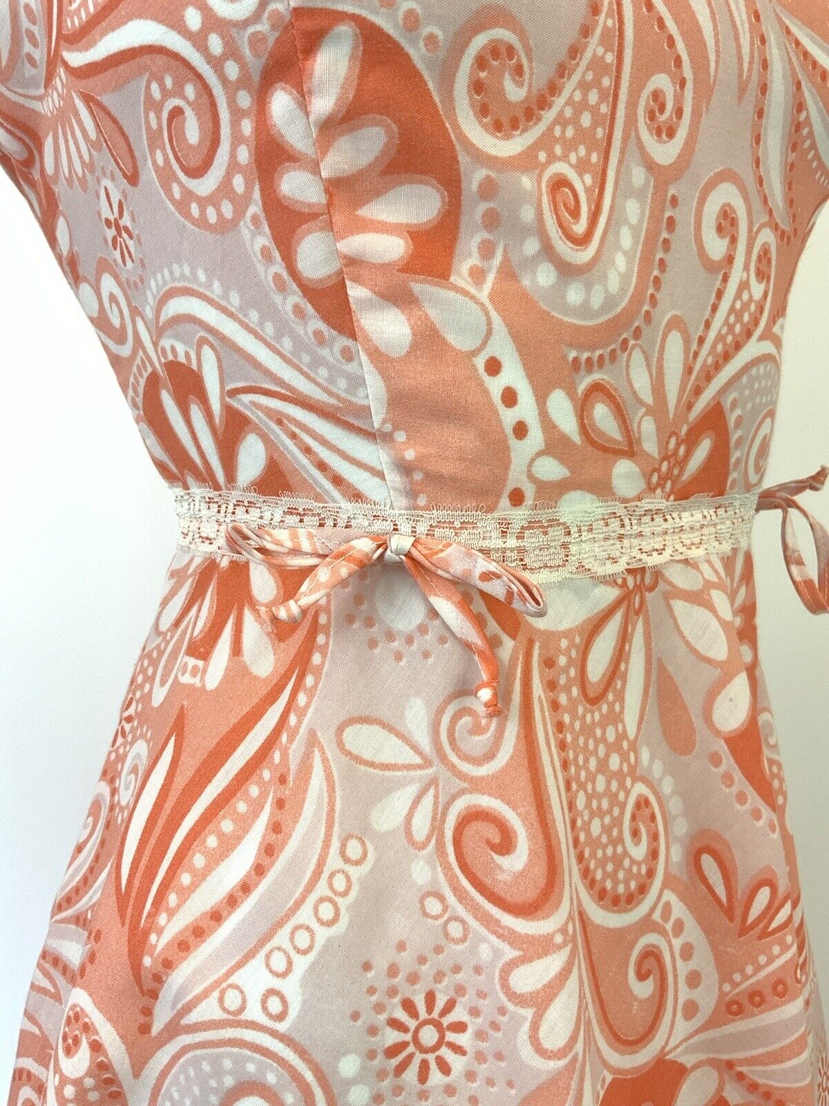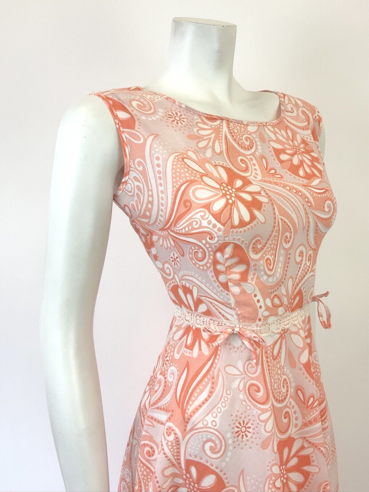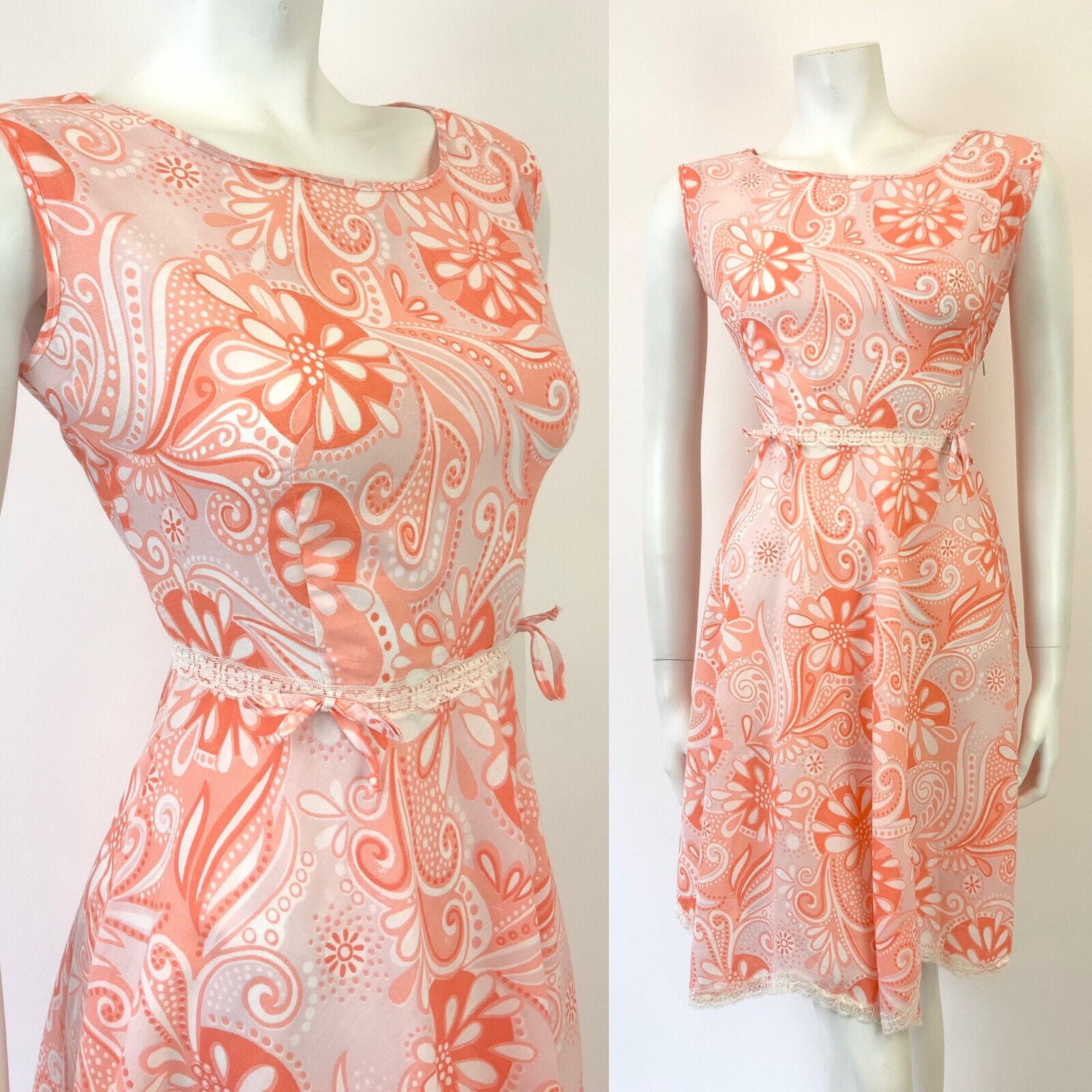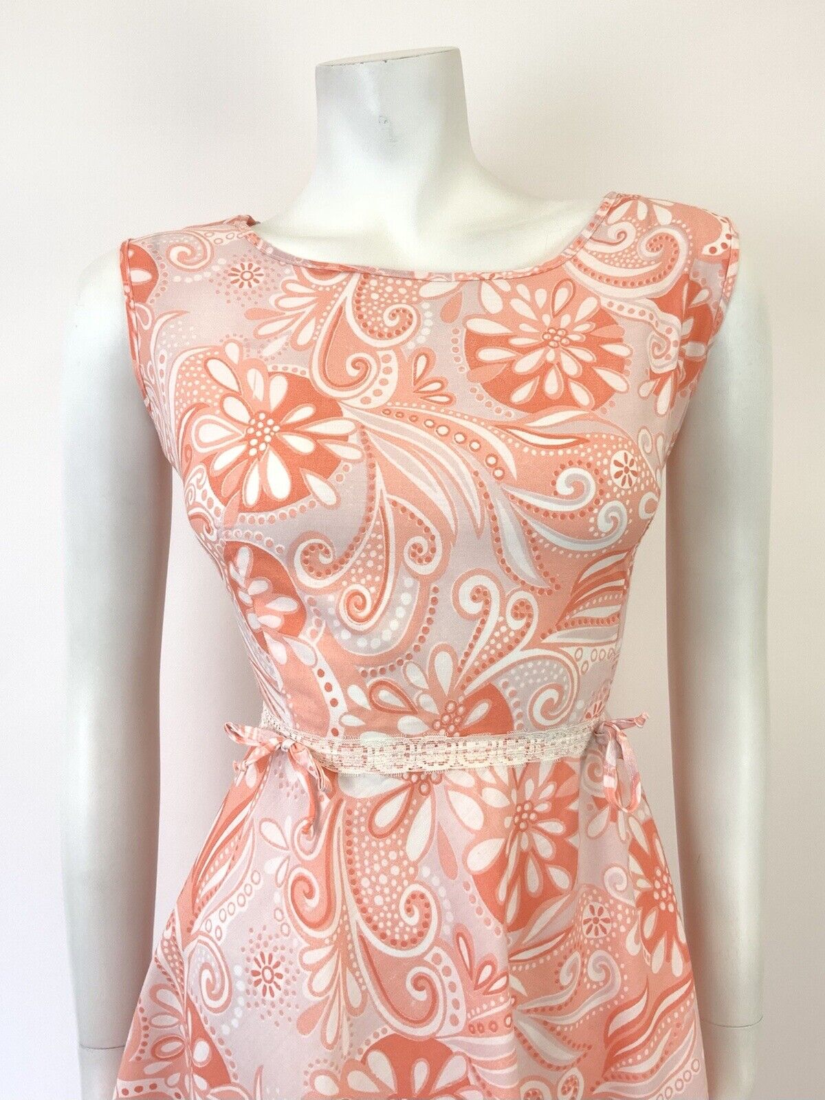 VTG 60s 70s PINK ORANGE WHITE PSYCHEDELIC FLORAL PAISLEY LACE MOD DRESS 10 12
