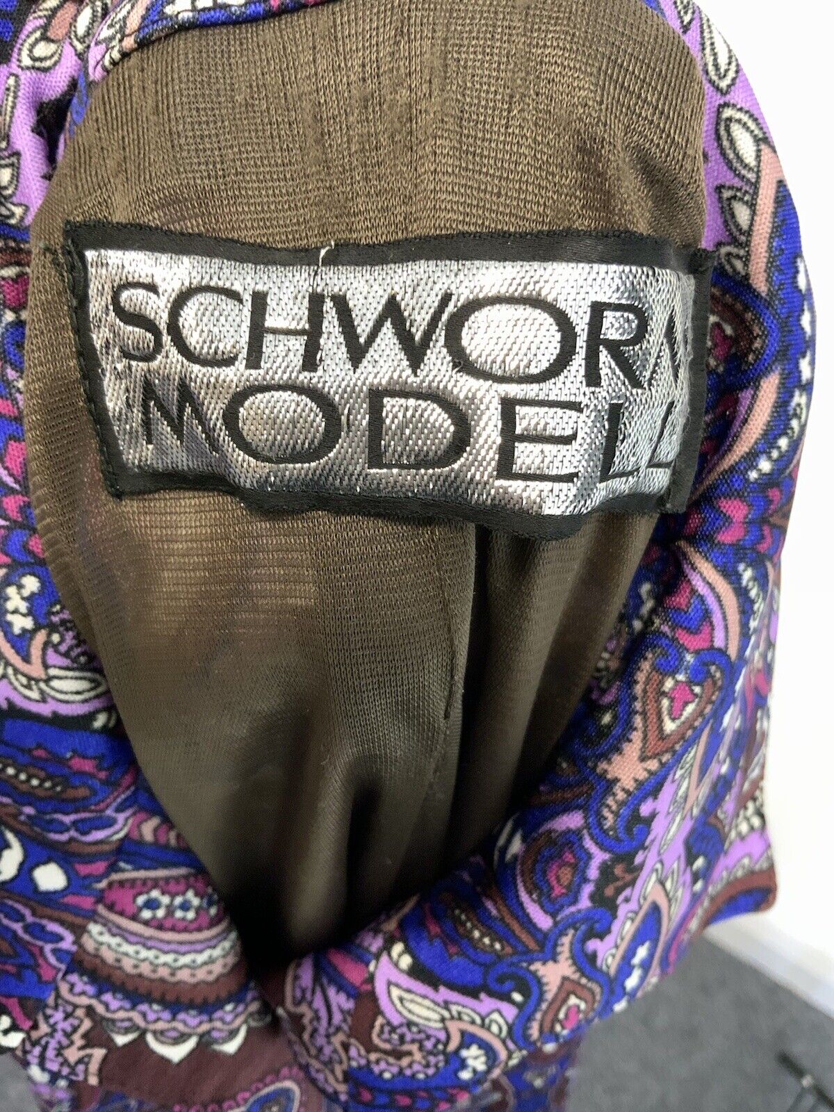 VTG 60s 70s PURPLE BROWN BLUE PSYCHEDELIC FLORAL DAGGER SHIRT DRESS 16 18