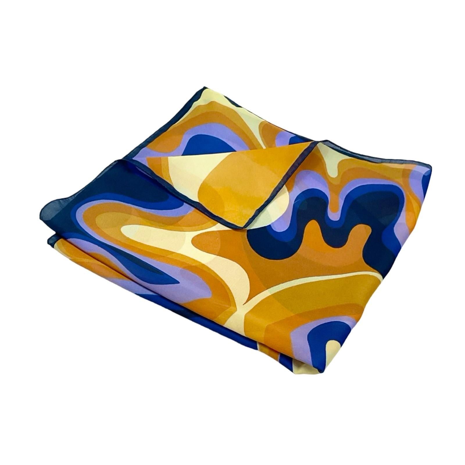 VTG 60S 70S PURPLE CREAM BEIGE ORANGE SQUIGGLE SWIRL PSYCHEDELIC SCARF