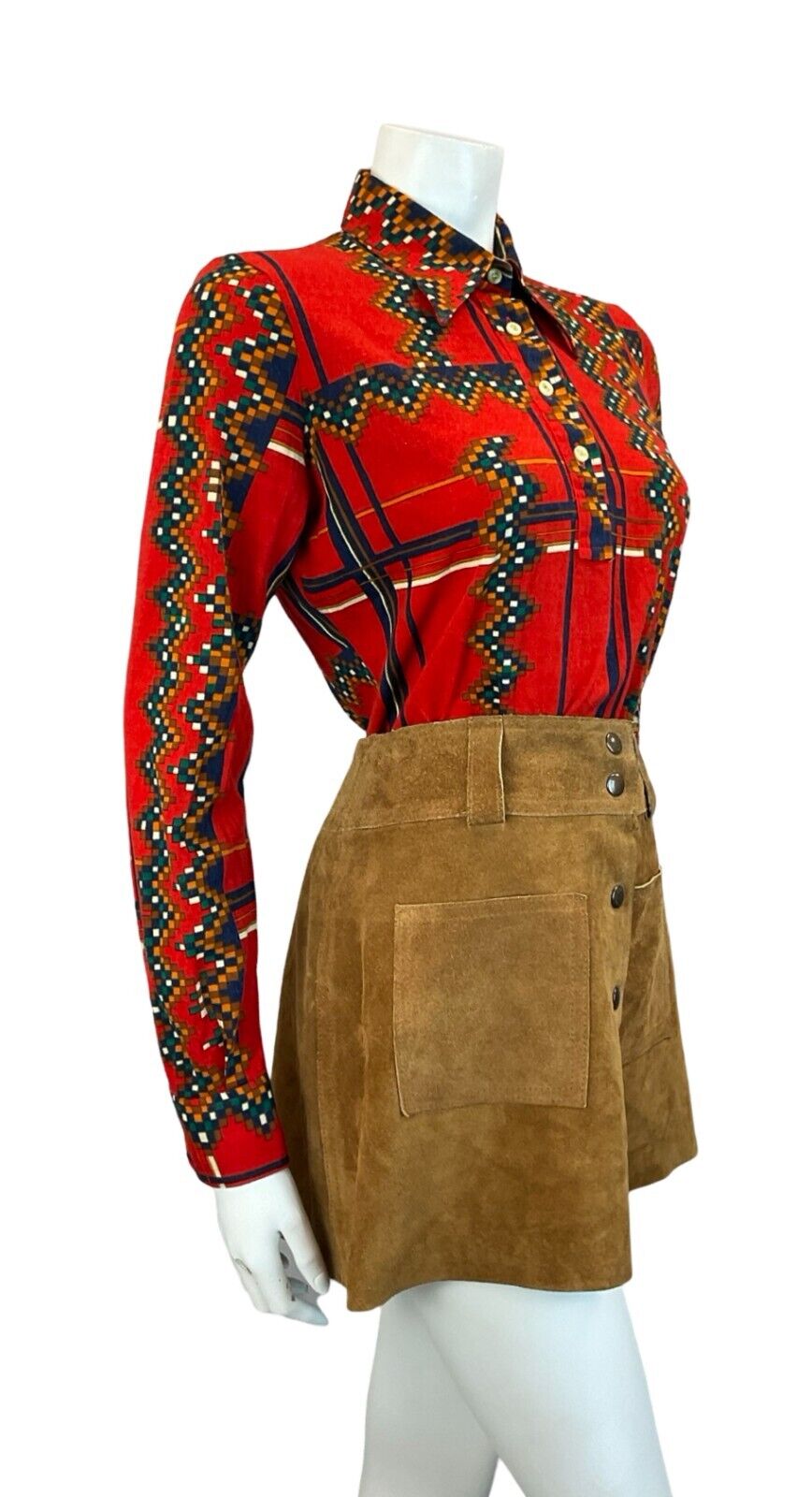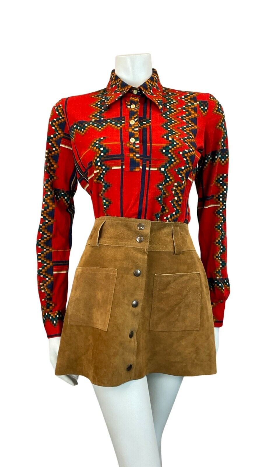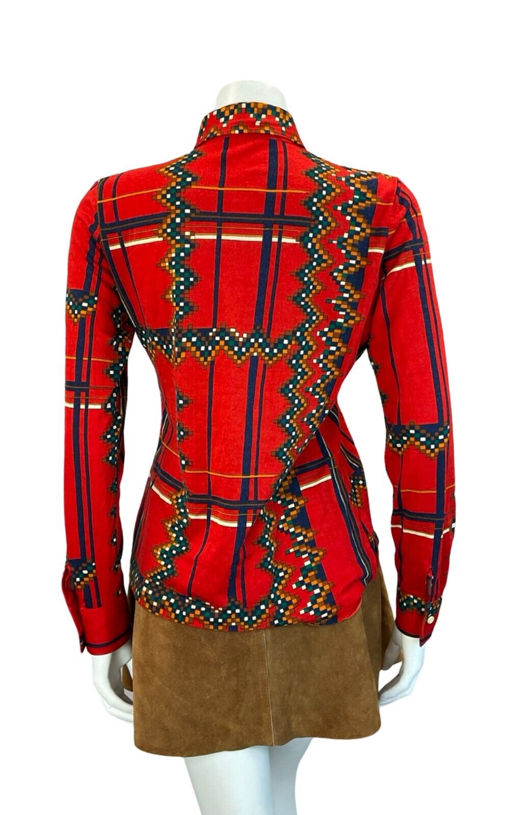VTG 60S 70S RED NAVY BLUE GREEN PSYCHDELIC GEOMETRIC DAGGER COLLAR SHIRT 12