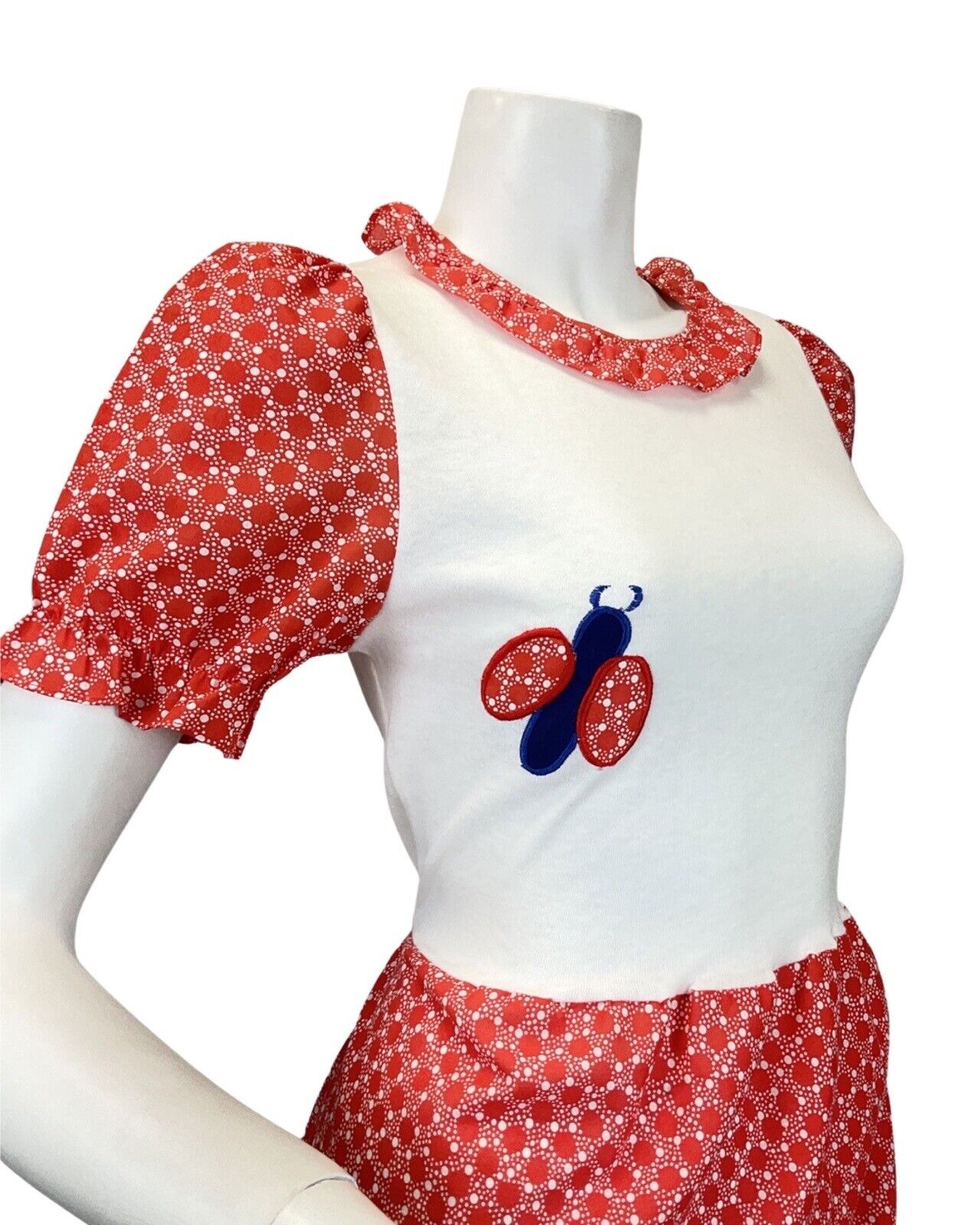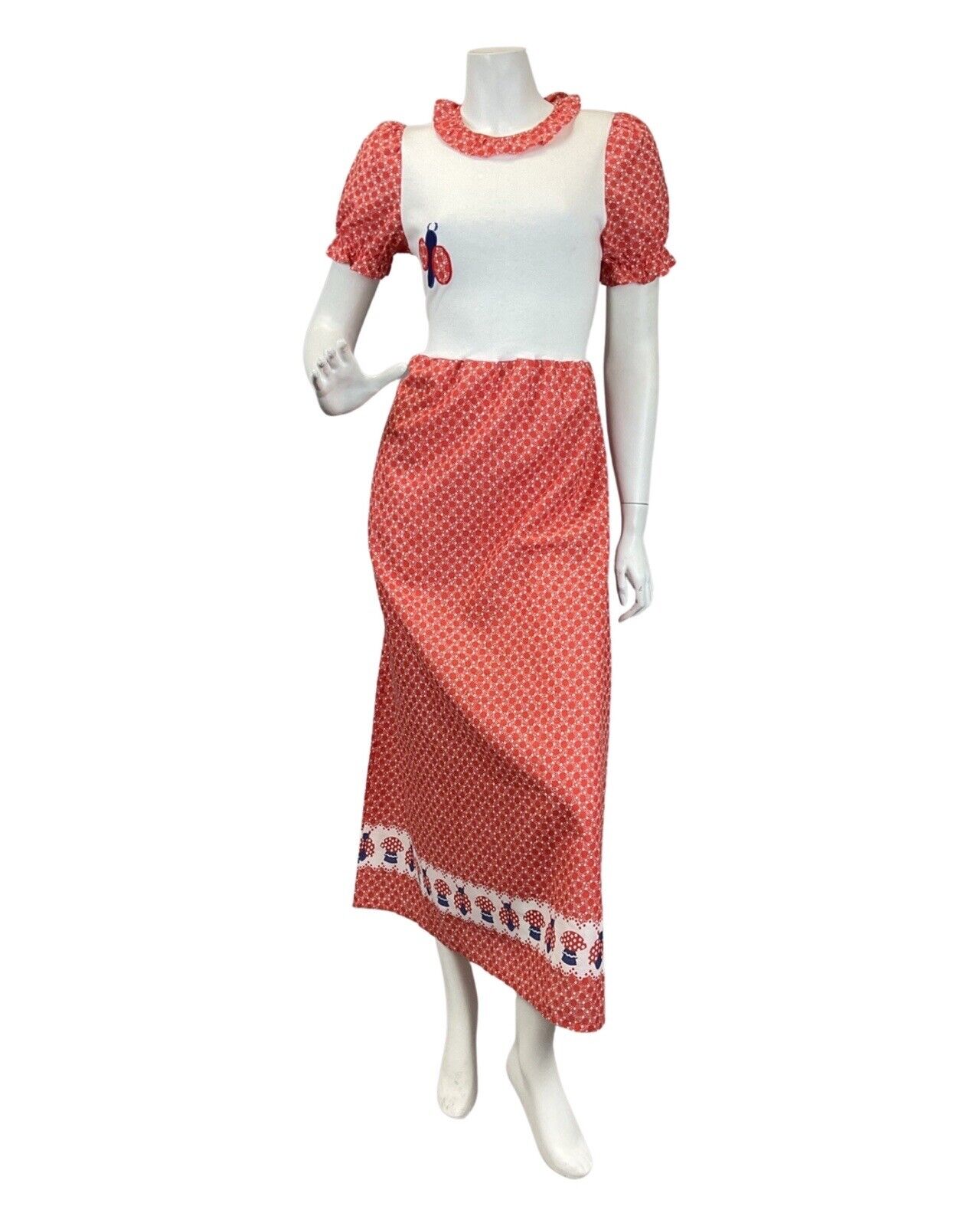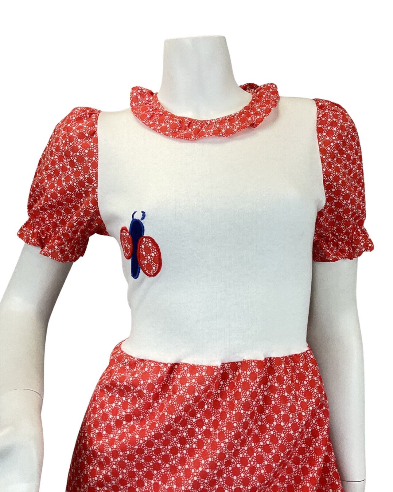 VTG 60s 70s RED WHITE BLLUE DOTTY LADYBIRD MUSHROOM MOD PRAIRIE MAXI DRESS 8 10