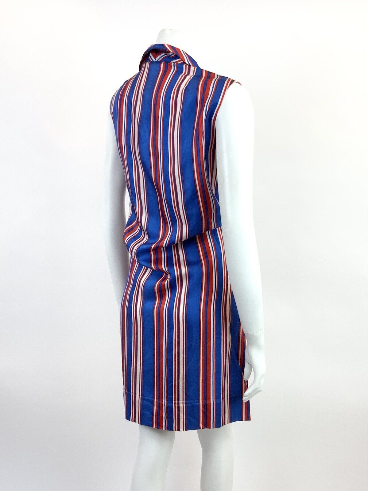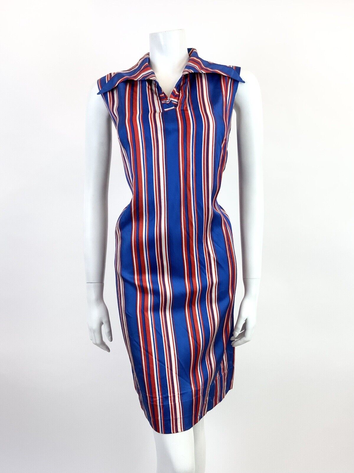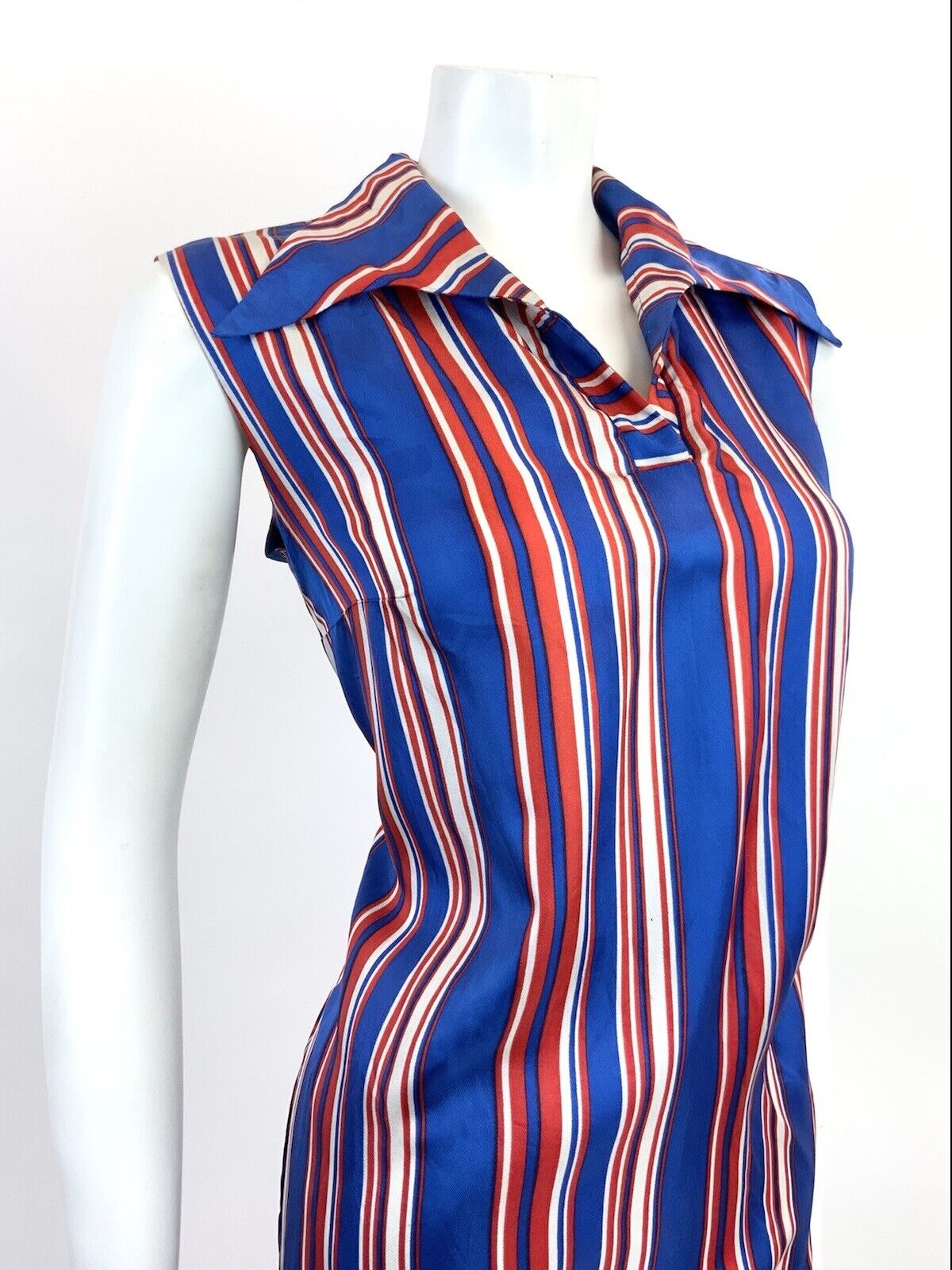 VTG 60s 70s ROYAL BLUE RED WHITE STRIPED WING COLLAR MOD SHIRT SHIFT DRESS 12 14
