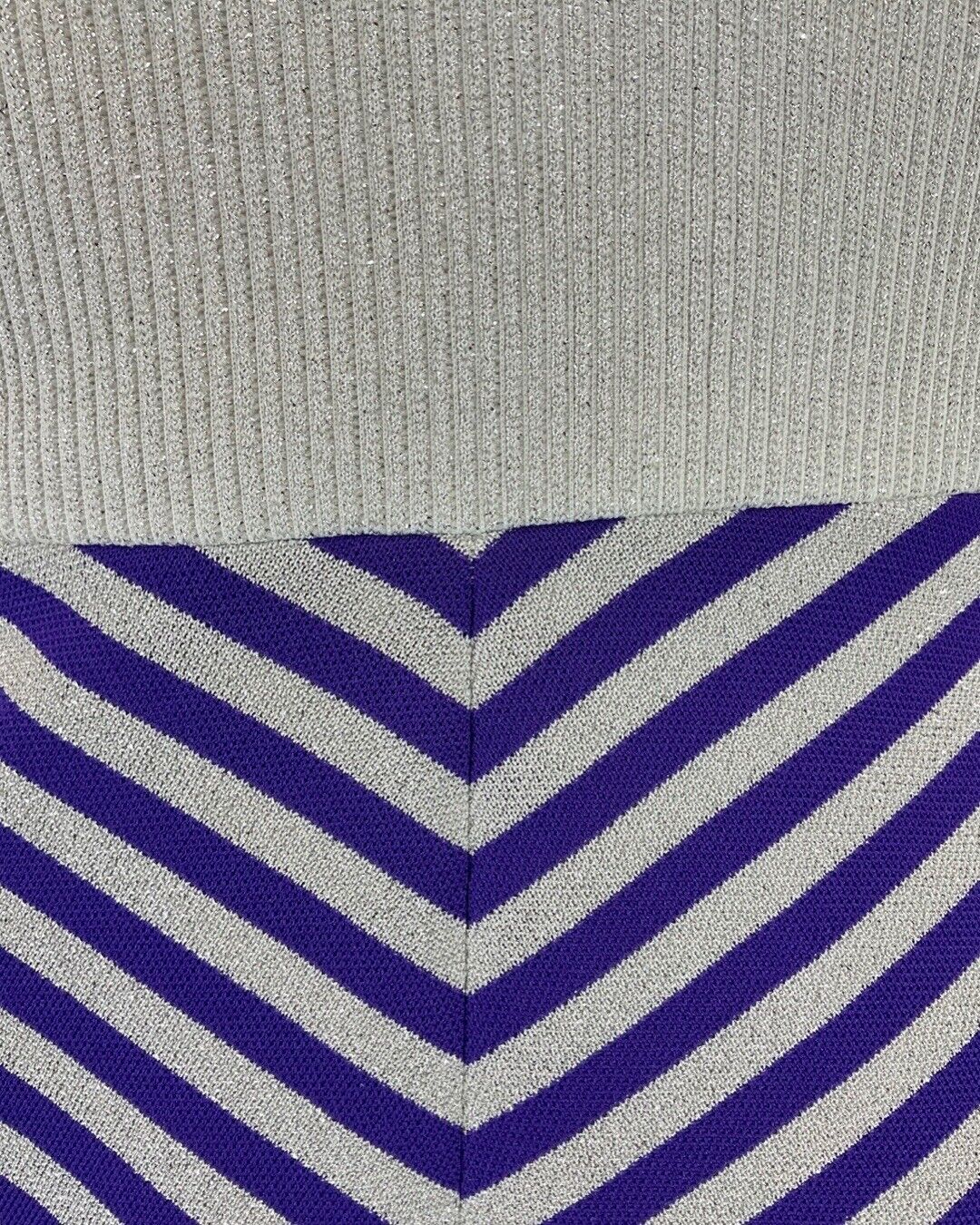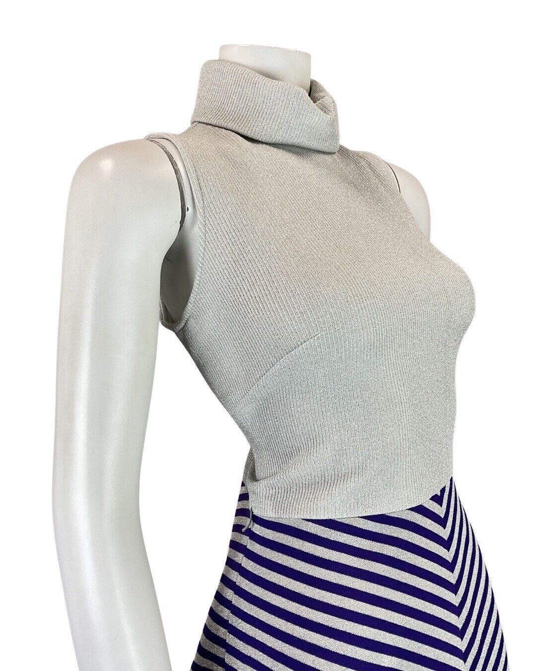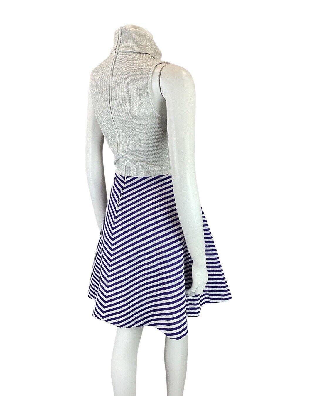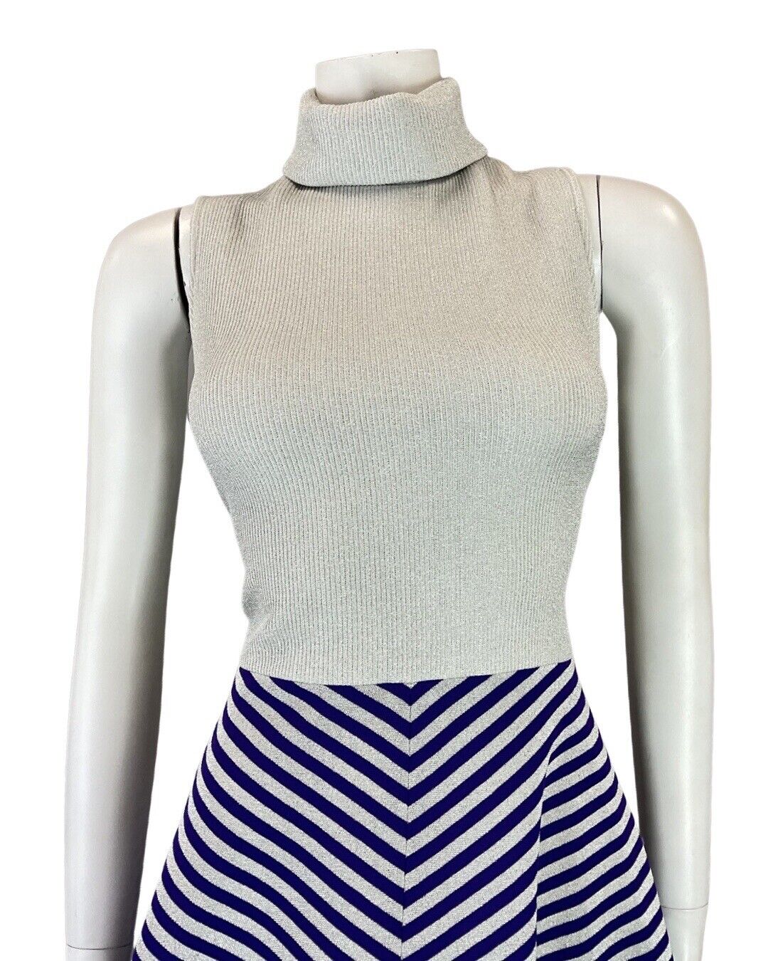 VTG 60s 70s SILVER PURPLE STRIPED LUREX TURTLENECK FIT & FLARE MOD DRESS 8 10