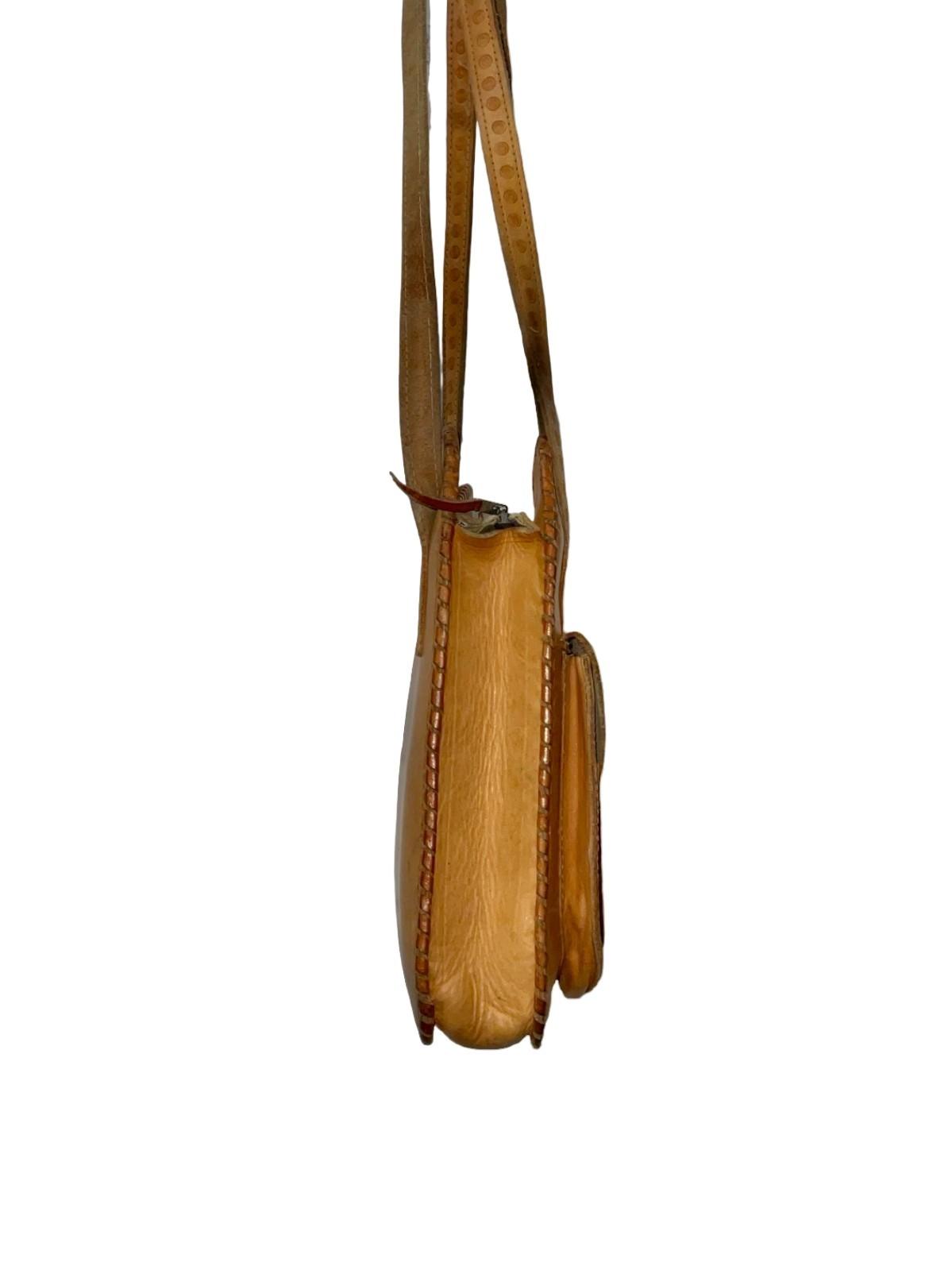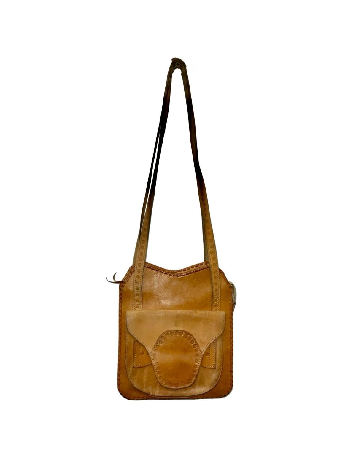 VTG 60S 70S TAN BROWN LEATHER CIRCLE DOTTY GEOMETRIC STAMPED SHOULDER BAG