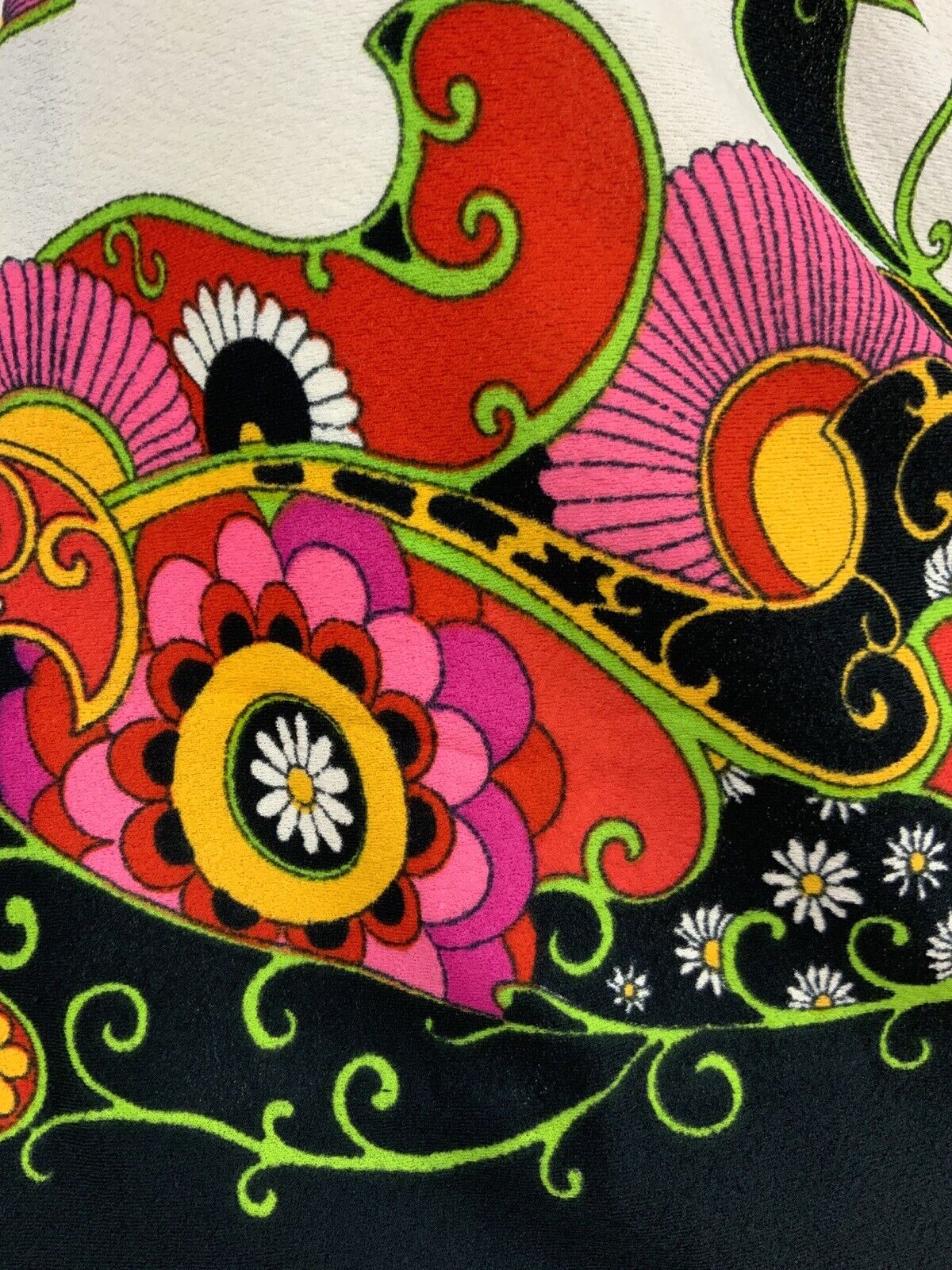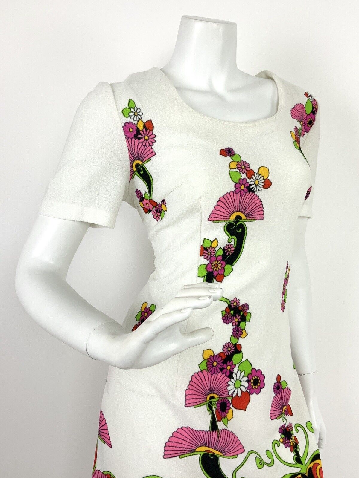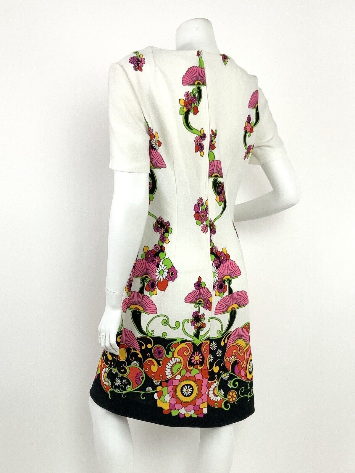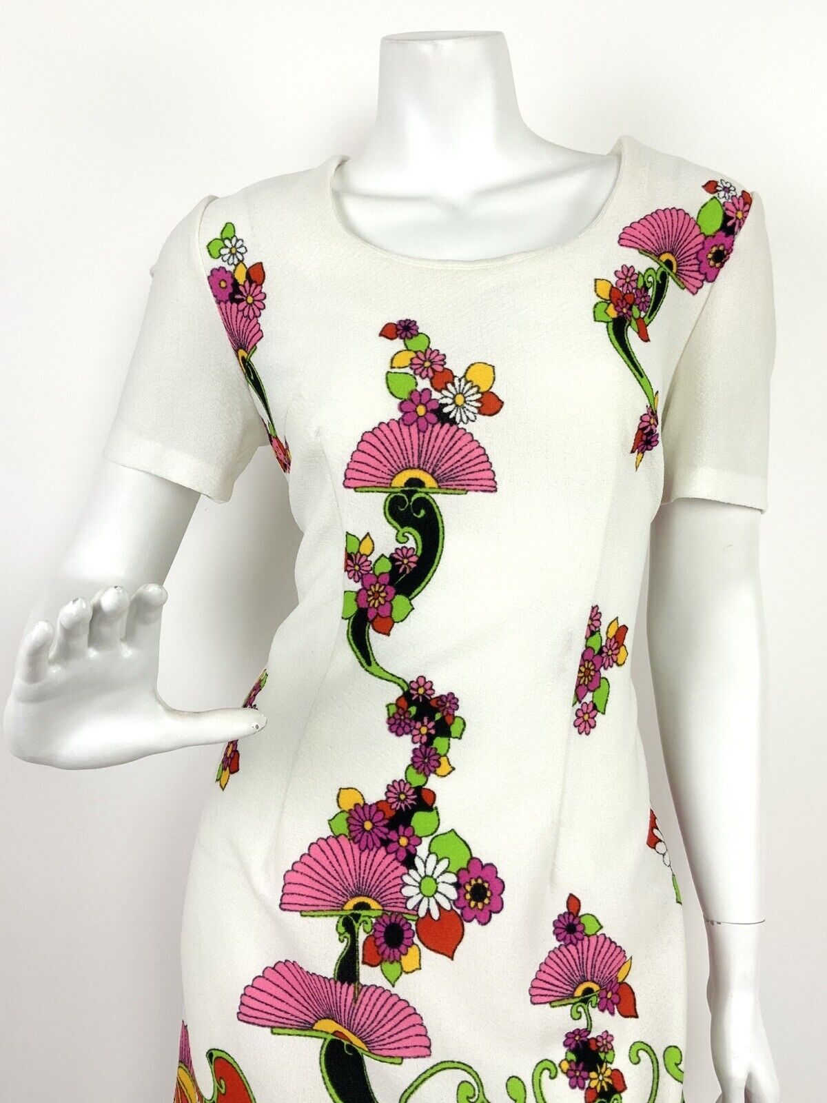 VTG 60s 70s WHITE BLACK PINK YELLOW RED FLORAL PSYCHEDELIC PAISLEY DRESS 12 14