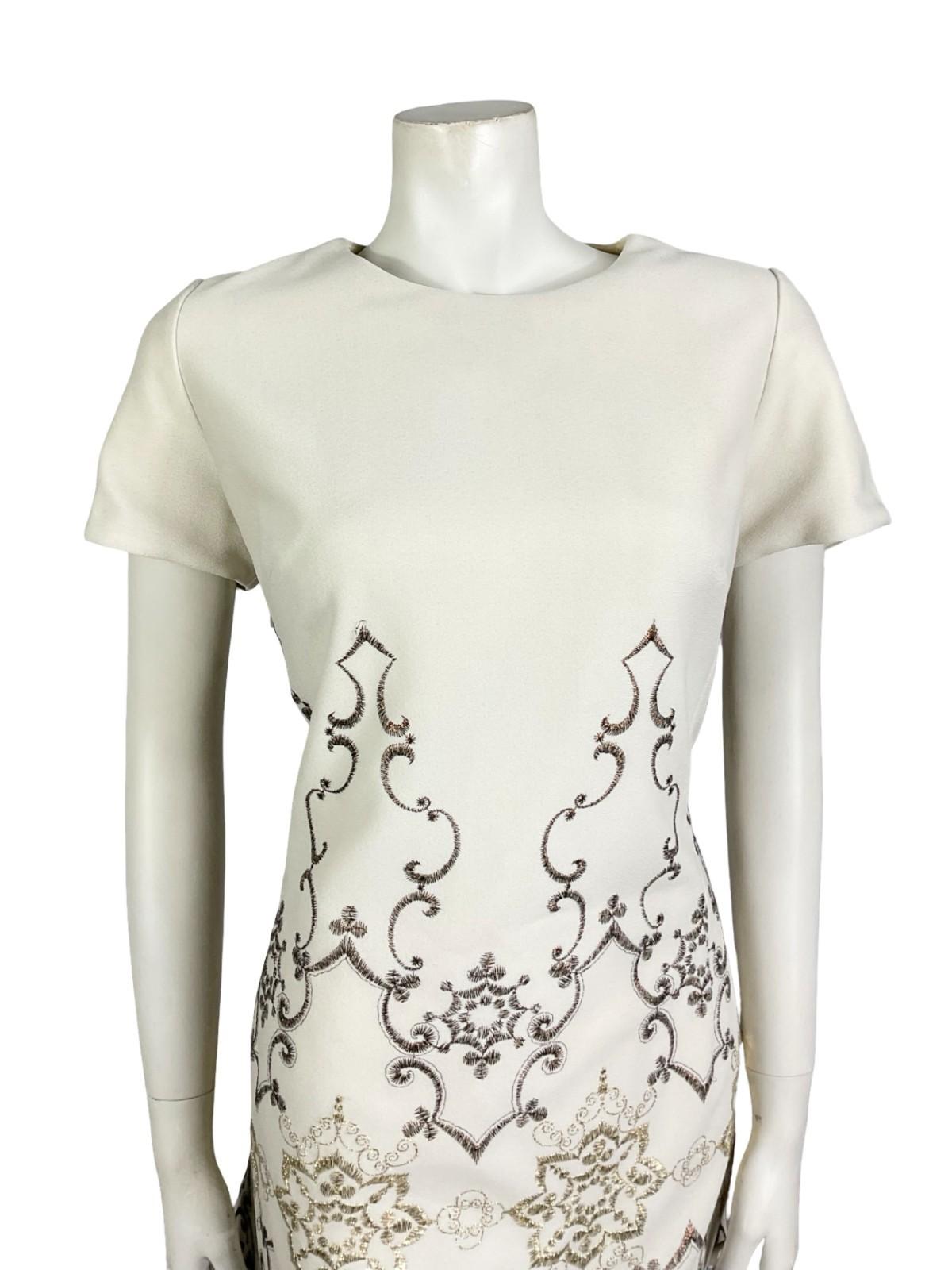 VTG 60S 70S WHITE BRONZE GOLD EMBROIDERED MOD PARTY SHIFT MINI DRESS 12 14 M