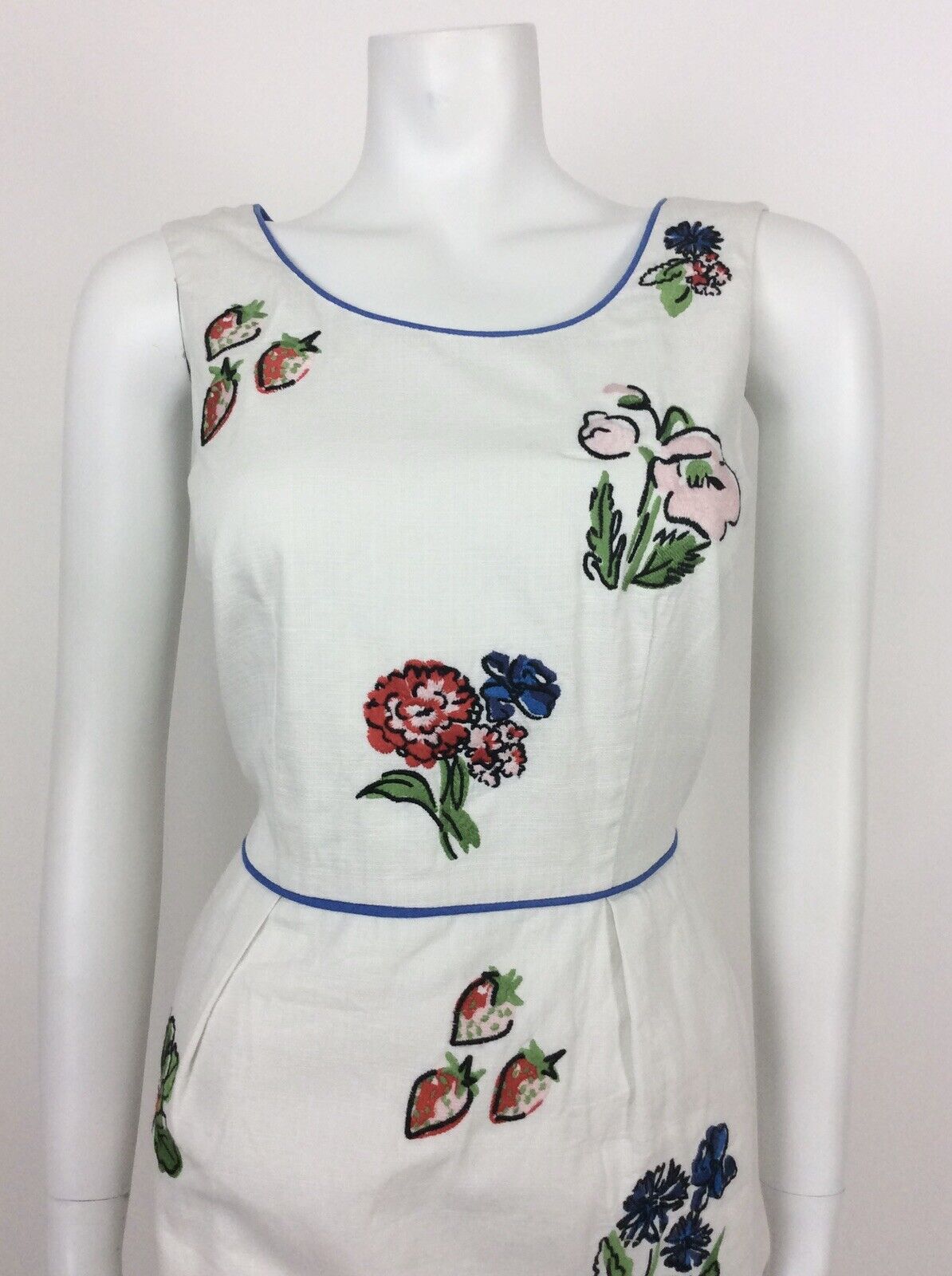 VTG 60s 70s WHITE COTTON FRUIT FLORAL RED BLUE GREEN SUMMER DRESS 10