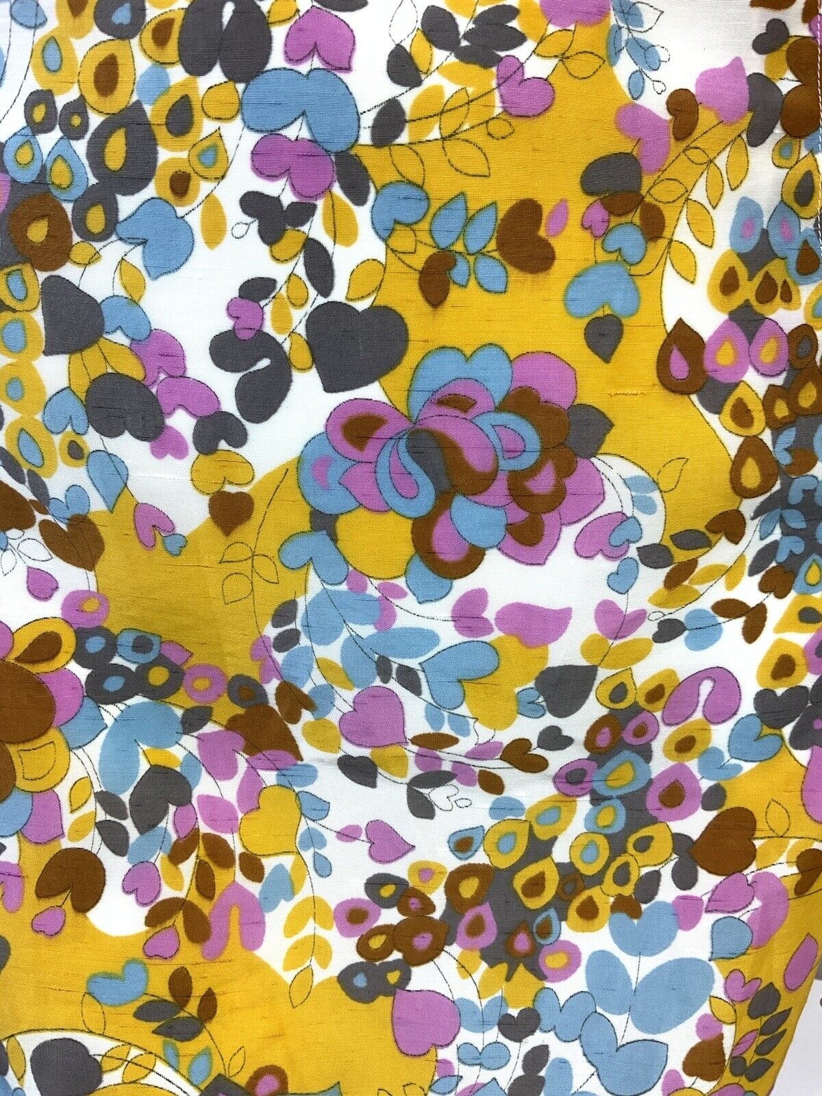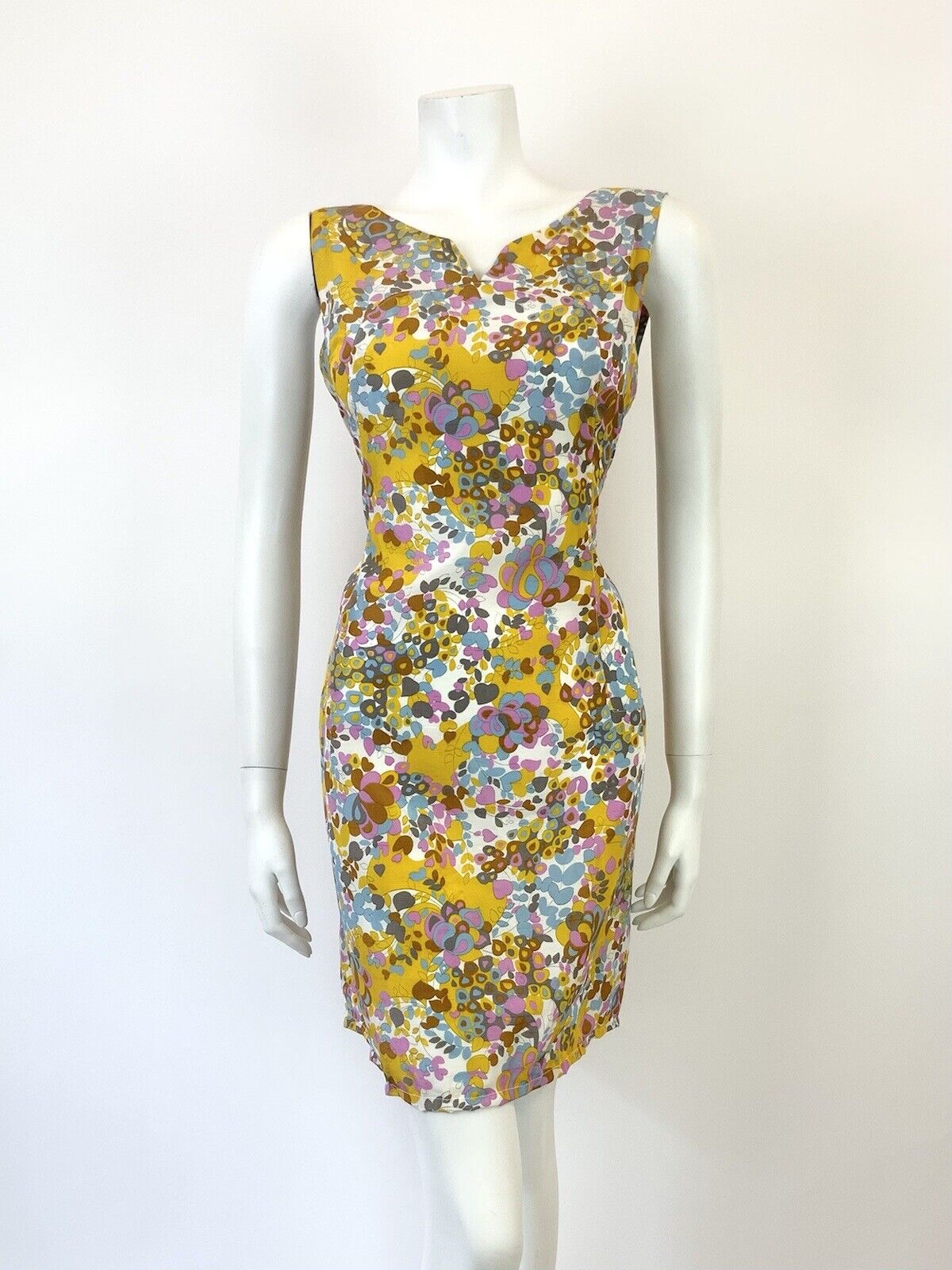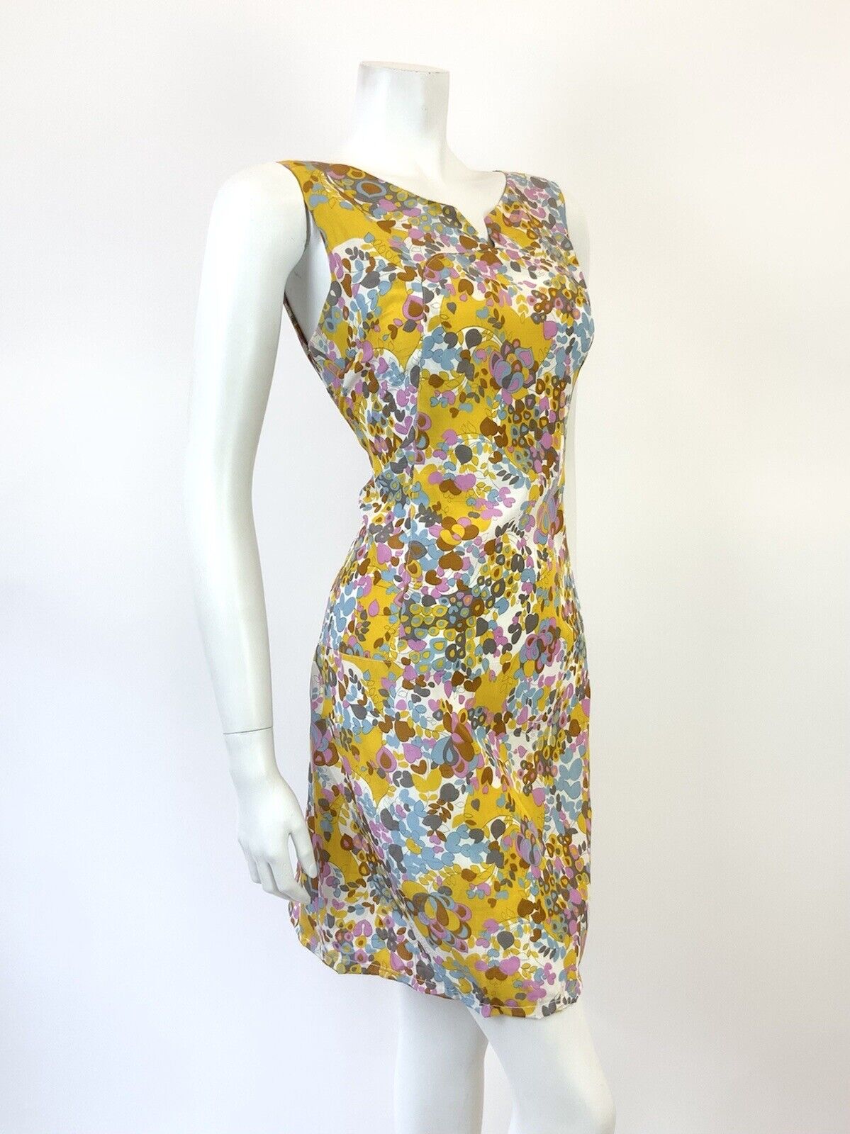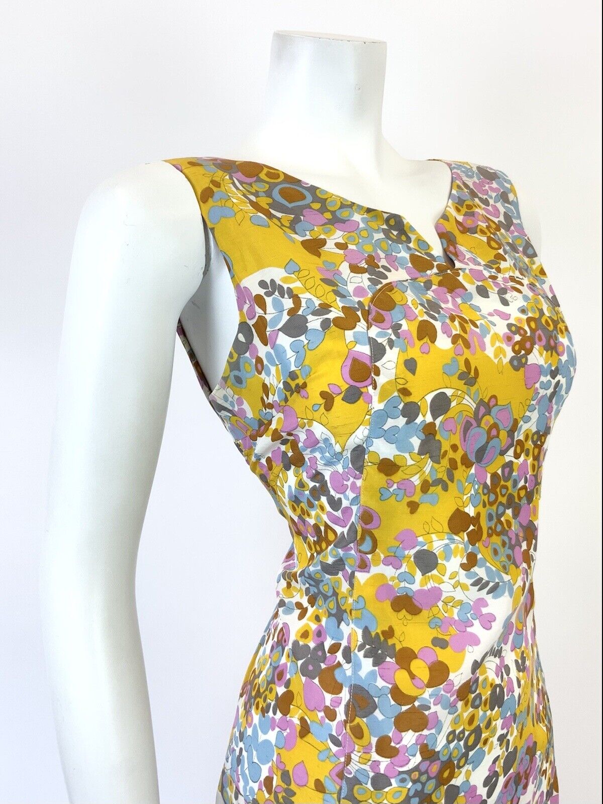VTG 60s 70s WHITE PINK YELLOW BLUE PSYCHEDELIC FLORAL SLEEVELESS MOD DRESS 12 14