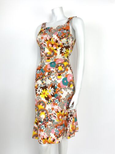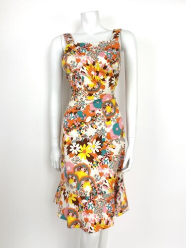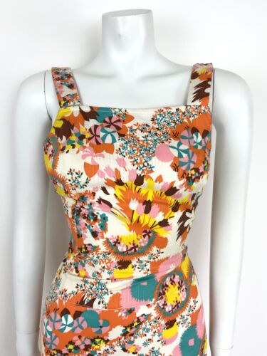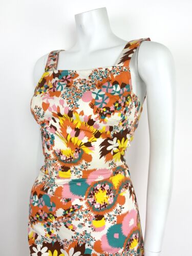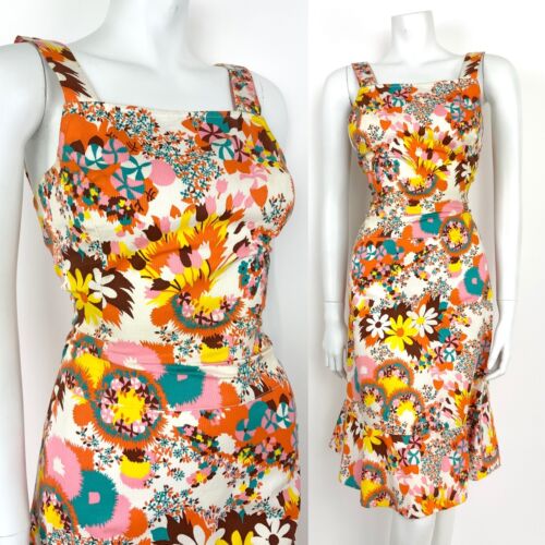 VTG 60s 70s WHITE PINK YELLOW ORANGE BLUE FLORAL PINWHEEL SUMMER APRON DRESS 4