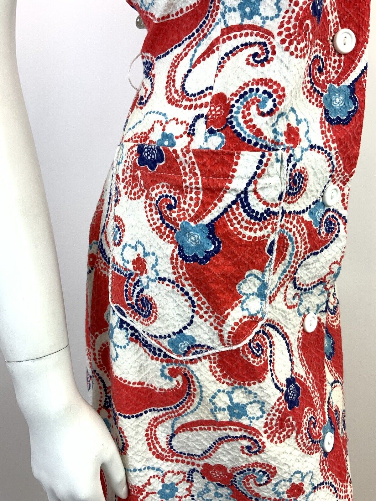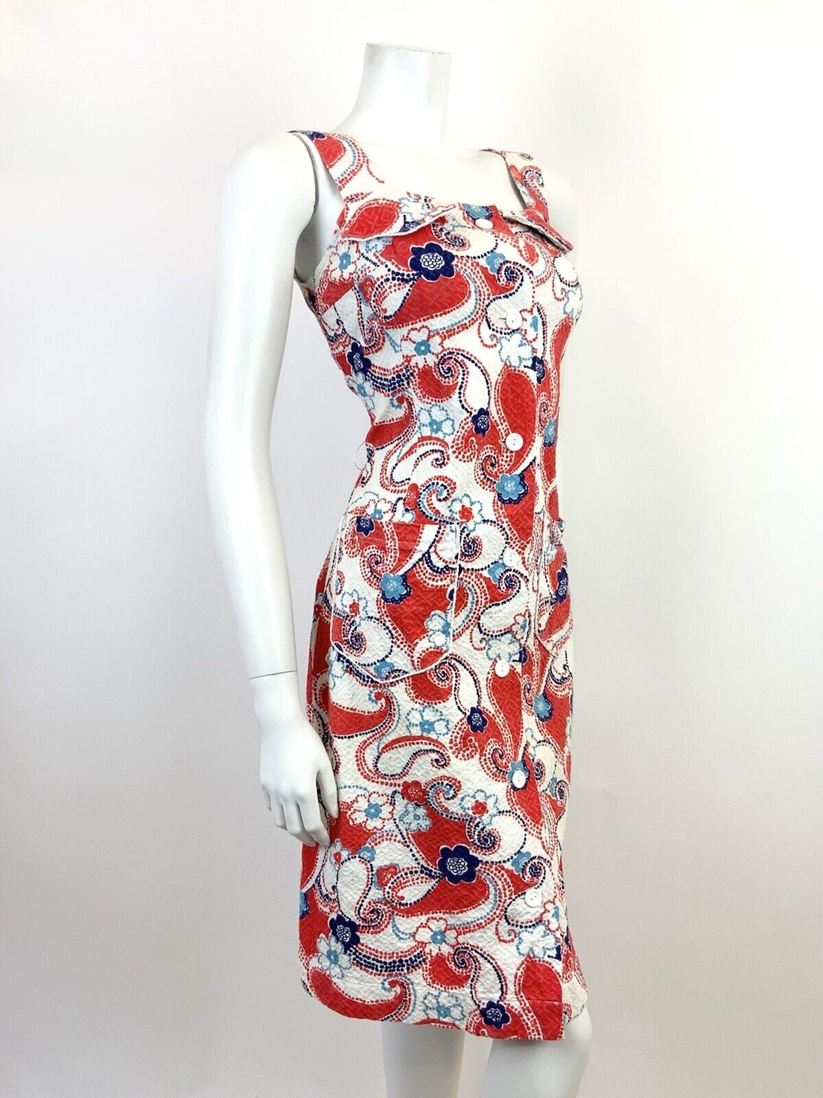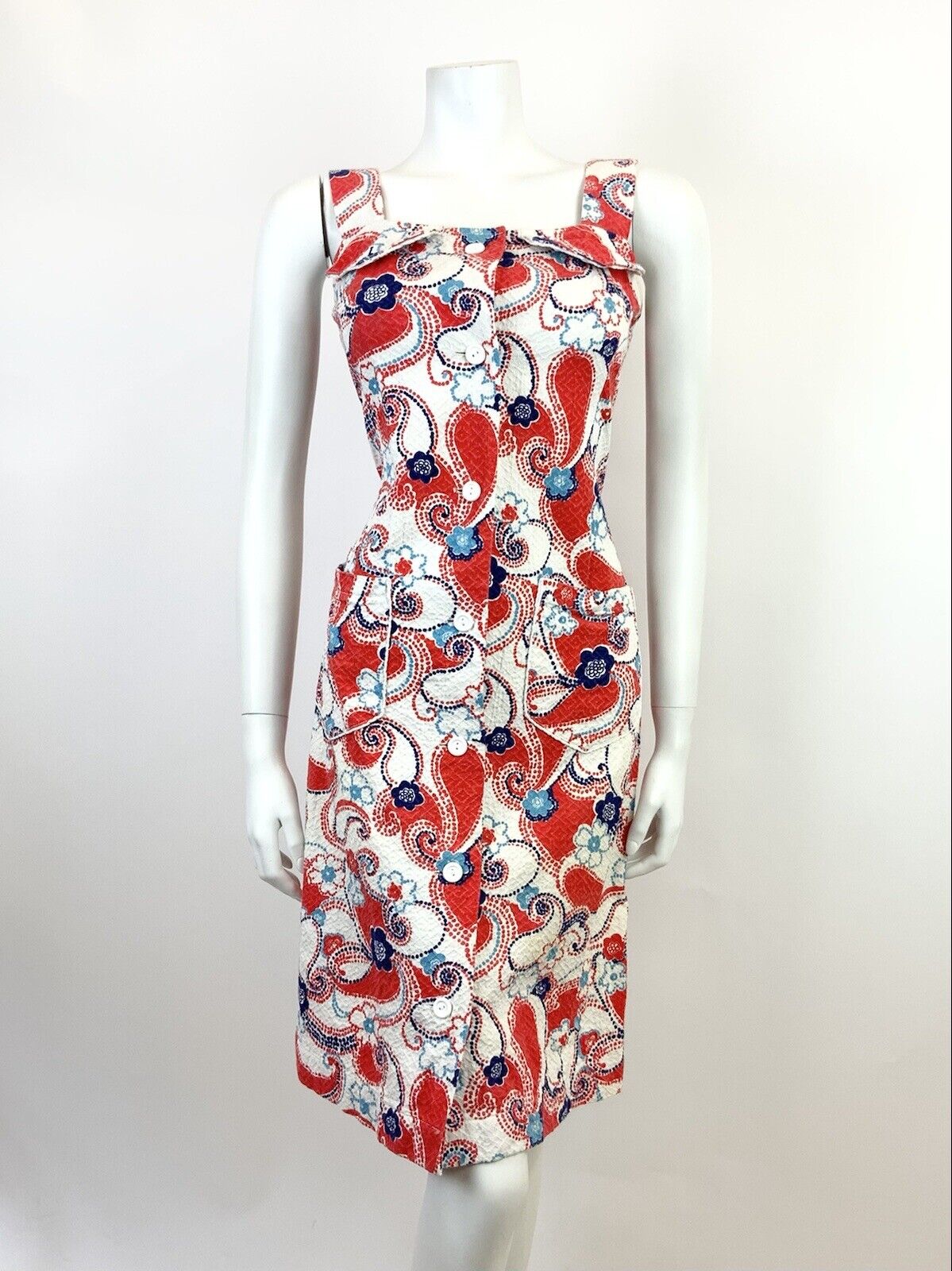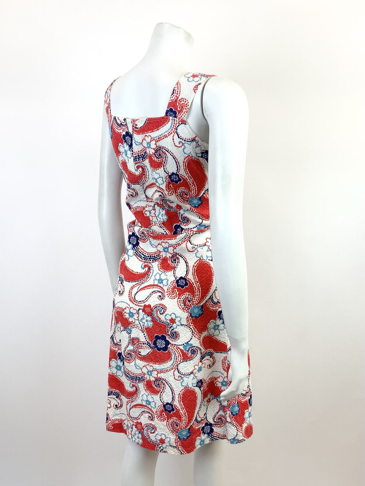 VTG 60s 70s WHITE RED BLUE FLORAL DOTTY PAISLEY PSYCHEDELIC MOD SUNDRESS 8 10