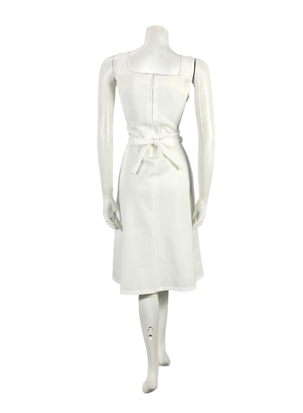 This is a cute 60s 70s white pinafore dress made from polyester, featuring red contrast trim and piping, and a green and red floral embroidery on the centre bust. This dress is lined in the skirt with a white acetate inner lining, and fastens you in via a zipper at the back of the dress, with a matching white fabric tie to cinch the waist. This dress has a lovely a line cut. As this material has no stretch, please take the time to compare your measurements to those given below, and to read our full description to avoid disappointment in sizing. This dress would best fit: UK12 please check your measurements against the ones provided below, Bust: 35" Waist: 31" Hips: 39" Length: 37" PLEASE NOTE: This garment has been measured flat and doubled for bust (armpit to armpit), waist and hip measurements, we measure the length down the back of the dress, measurements may differ slightly due to dress styles and fabrics. We ignore any existing size labels as vintage brands differed so much. Items shown on our mannequin may be clipped to fit. This garment is true vintage so please be aware there may be some signs of wear as expected from a garment of this age. We do not list stains to area likes linings that are hidden or things that can bearly be seen without close inspection. These can include pin holes, small marks, light piling. We hand pick our items to make sure they are in great condition and fully wearable and we reject anything of poor condition. The majority of our items are 40-70 years old. If you think we've missed something significant please get in touch, we are only human and we lose transaction fees on returns so we don't skip things on purpose. CHECK OUT OUR OTHER ITEMS, WE LIST EVERY WEEK! |