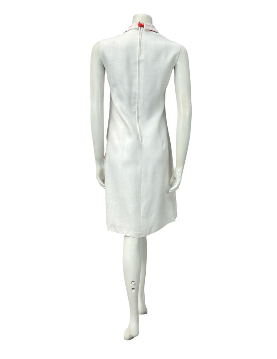 VTG 60S 70S WHITE RED POLKA DOT BOW CONTRAST STITCH DAGGER MOD SHIRT DRESS 14