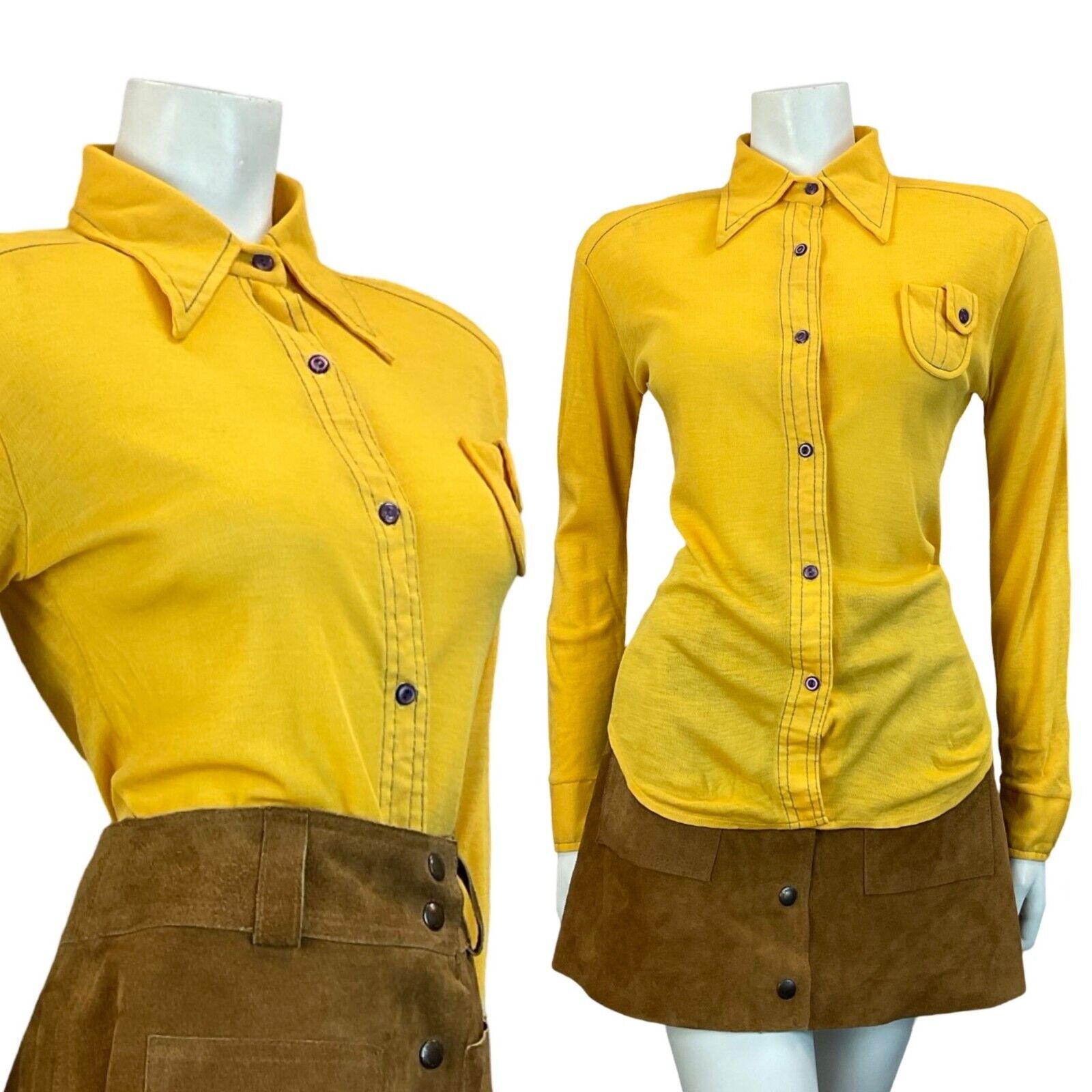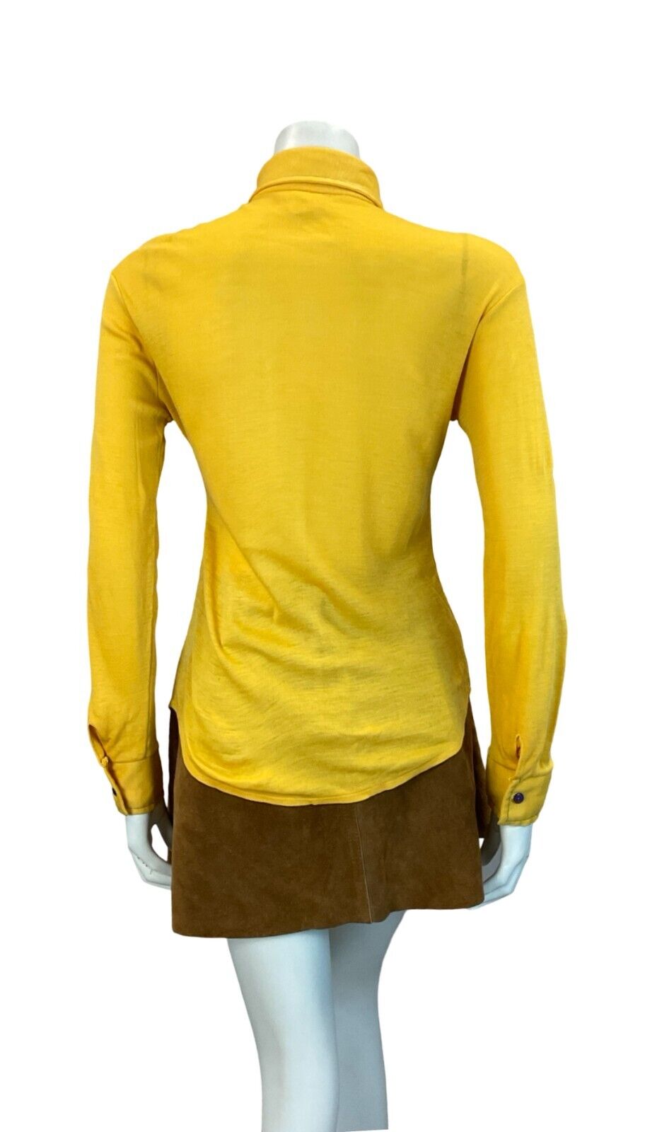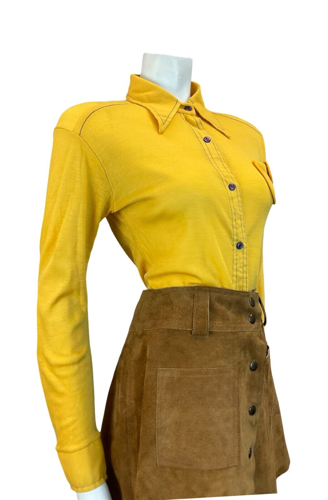 VTG 60S 70S YELLOW LONG SLEEVE SHIRT WITH DECORATIVE POCKET SIZE 8