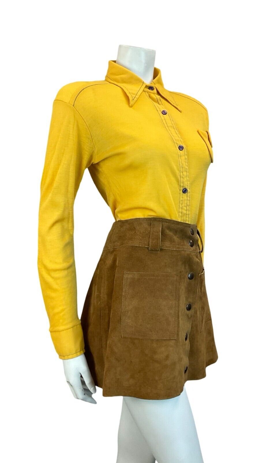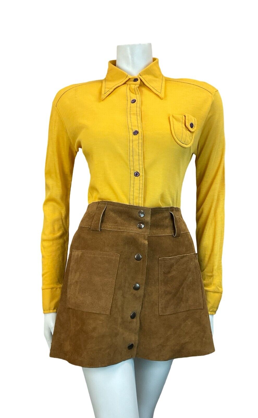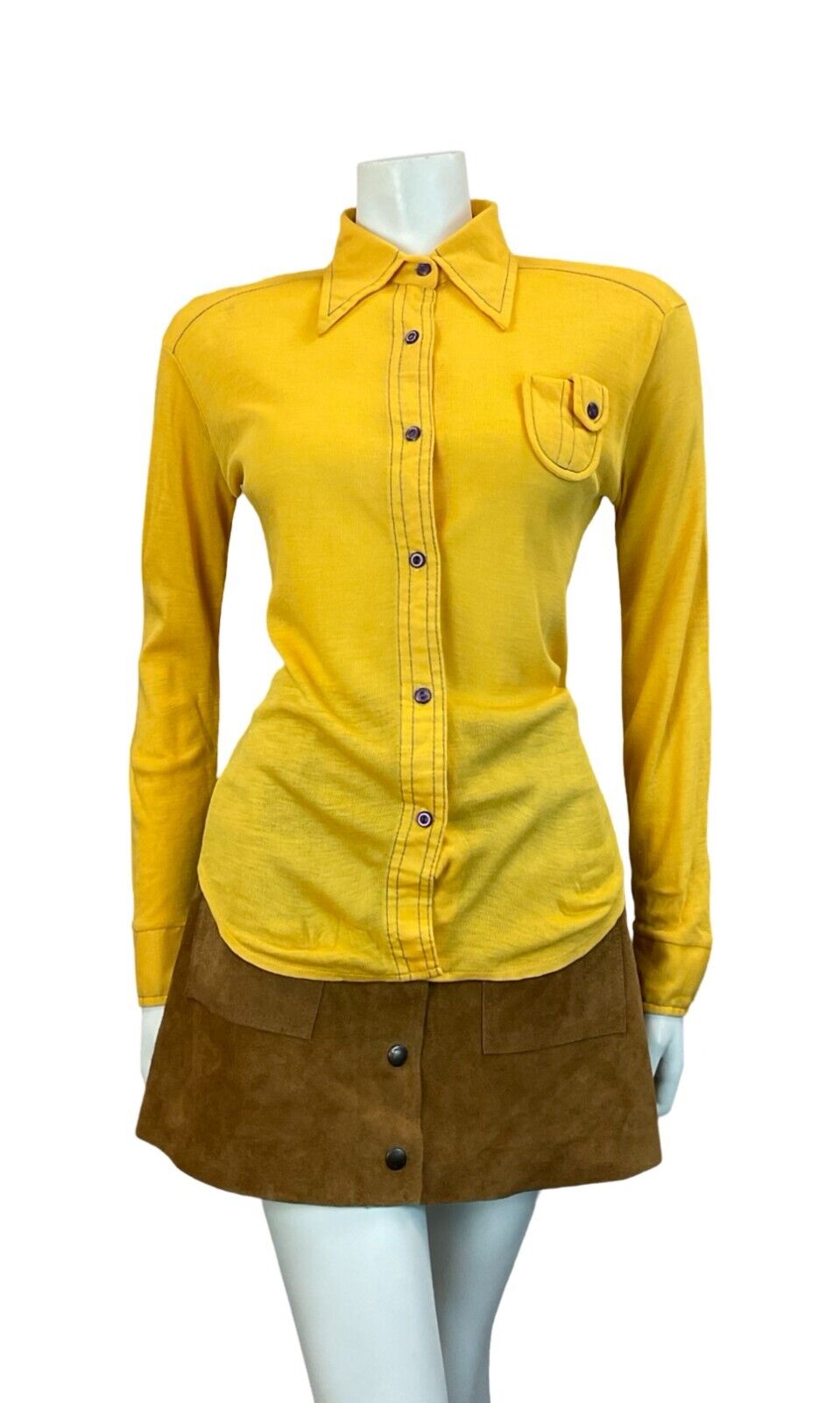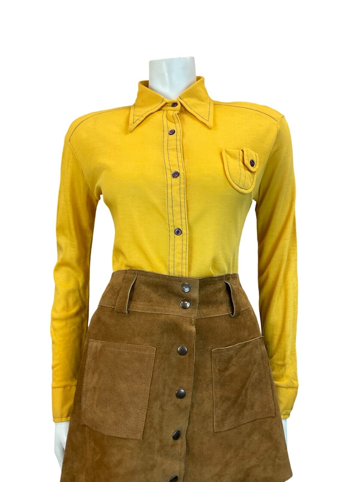 VTG 60S 70S YELLOW LONG SLEEVE SHIRT WITH DECORATIVE POCKET SIZE 8