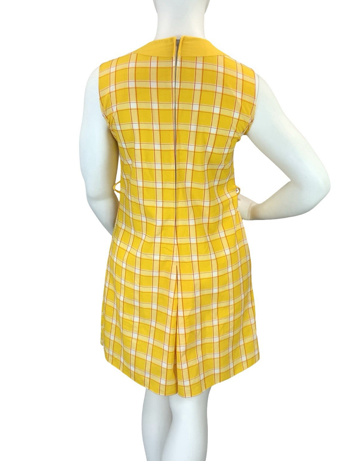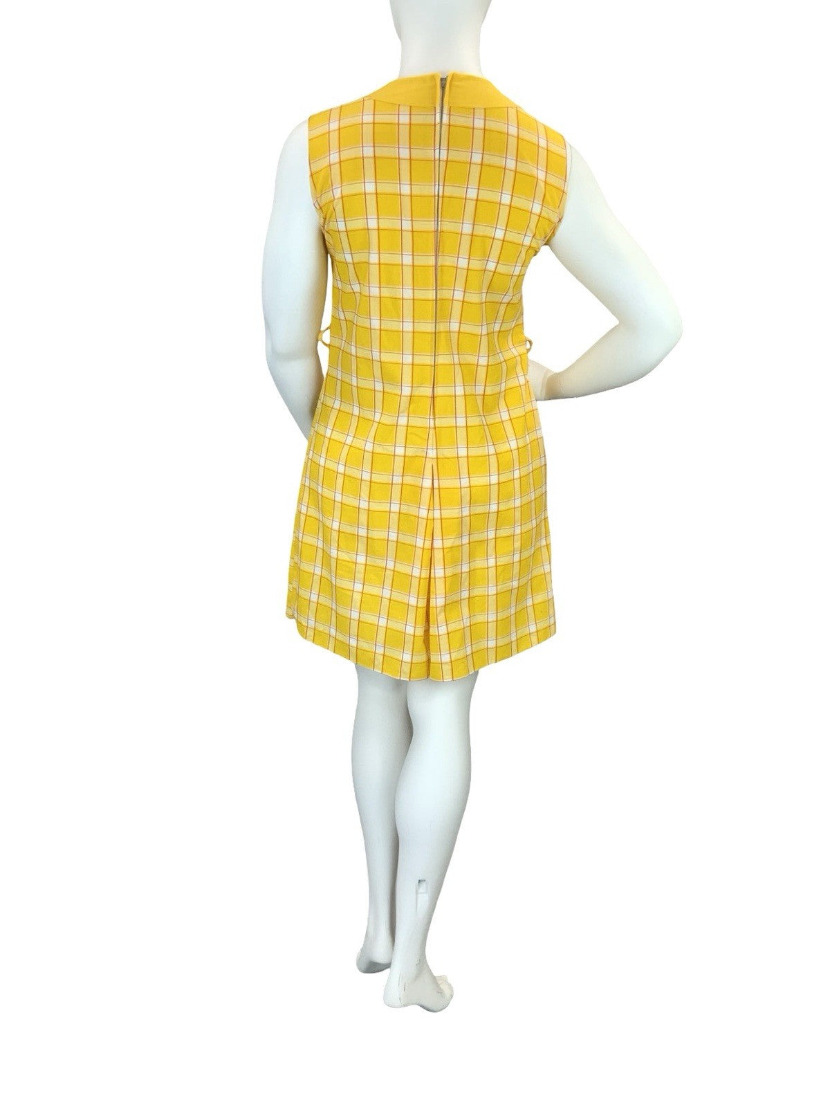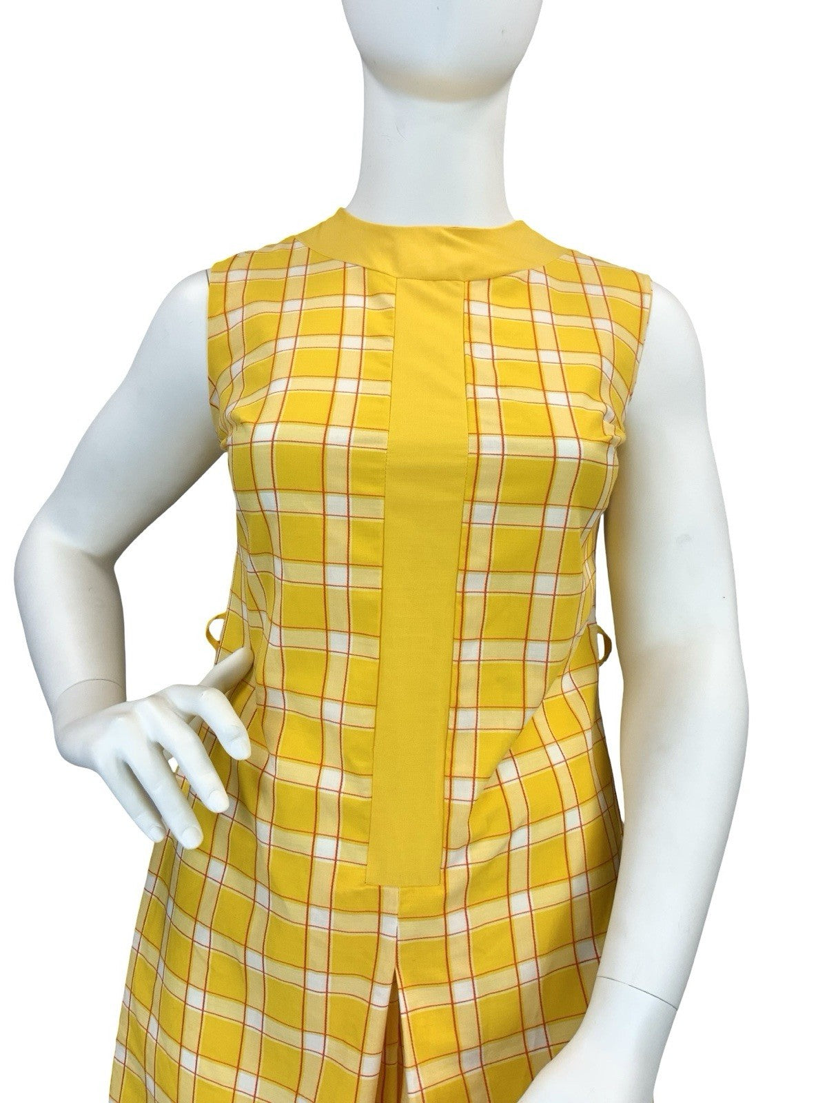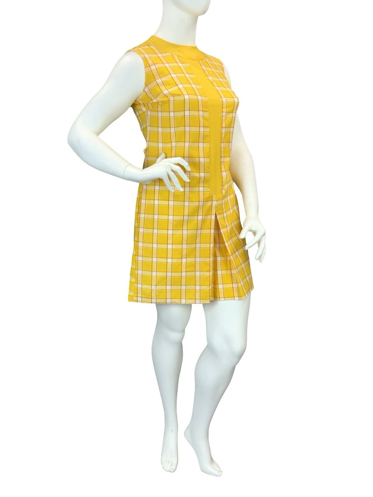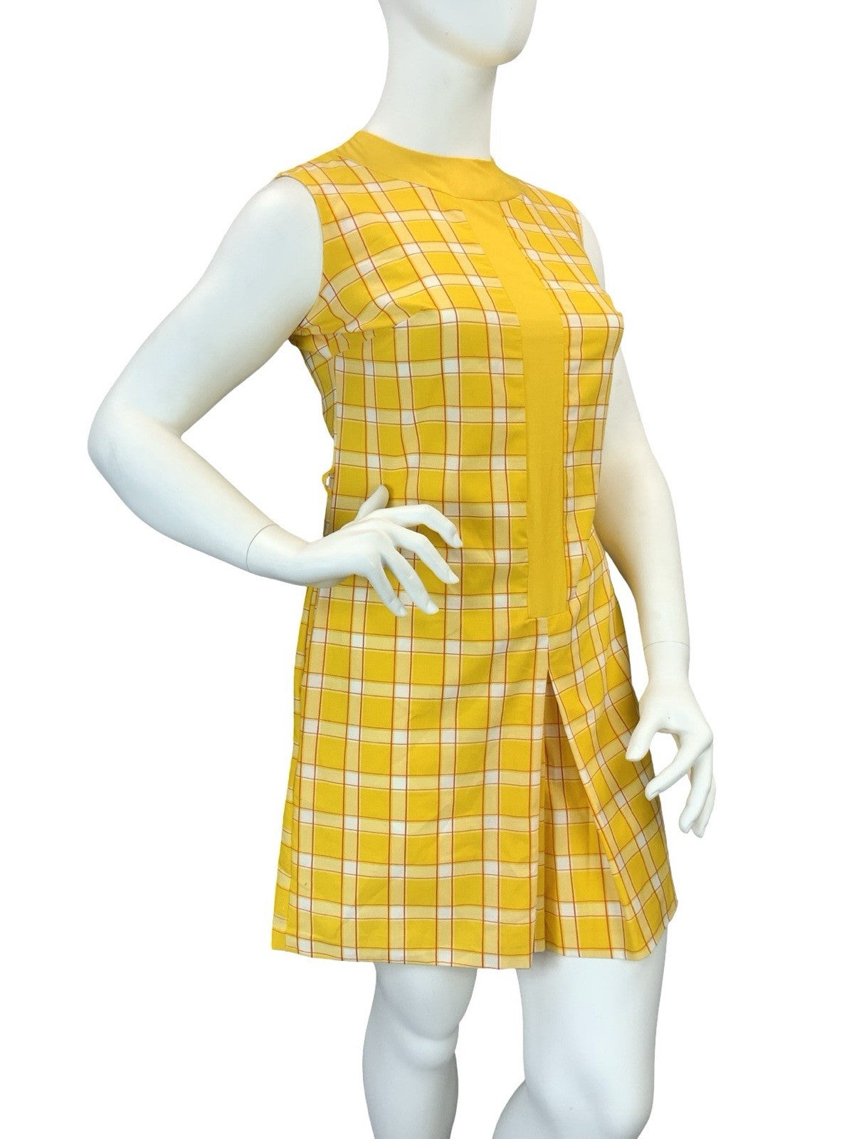 VTG 60S 70S YELLOW RED WHITE PLAID RETRO MOD PLEAT PLAYSUIT JUMPSUIT 16 14