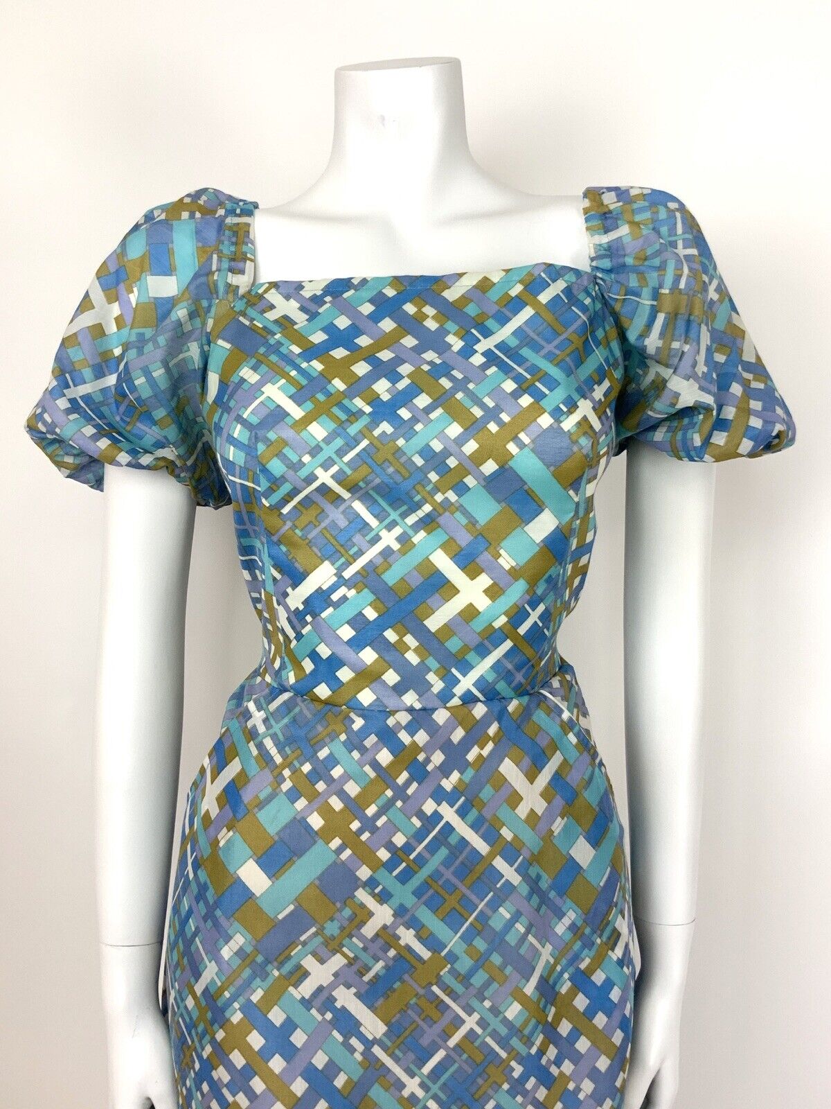 VTG 60s GEOMETRIC CRISS CROSS BLUE GOLD WHITE 10