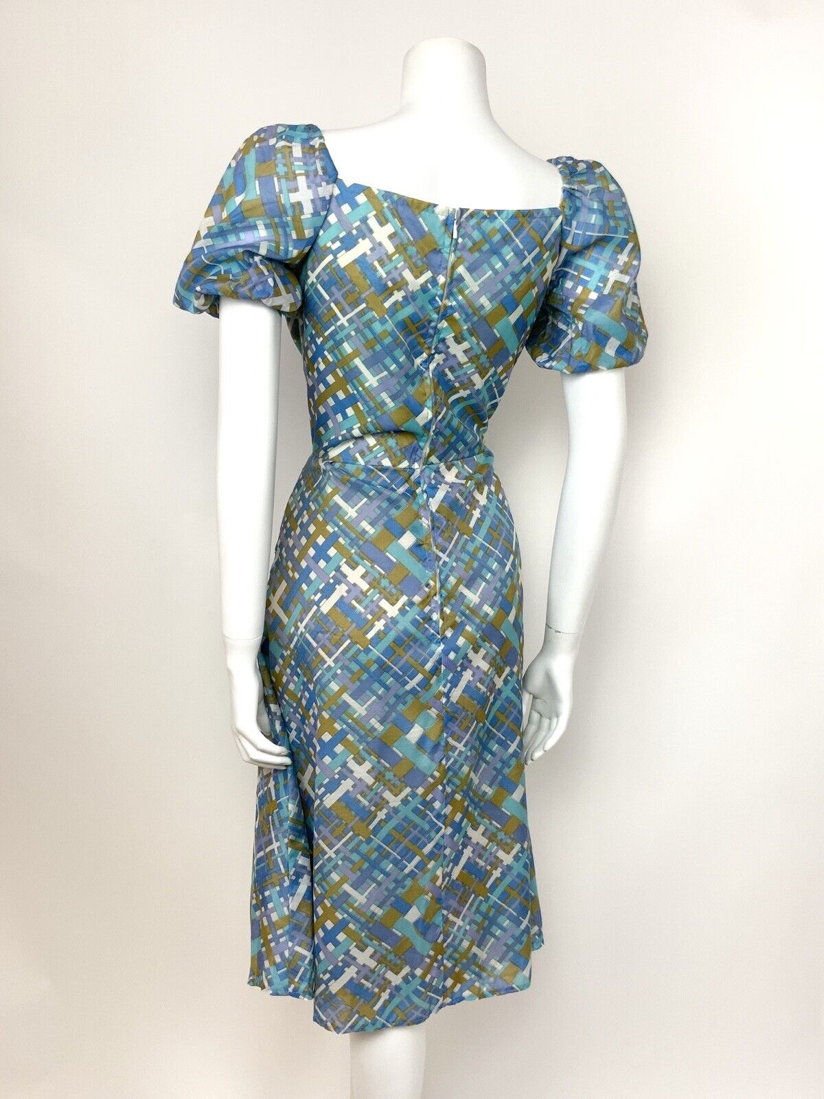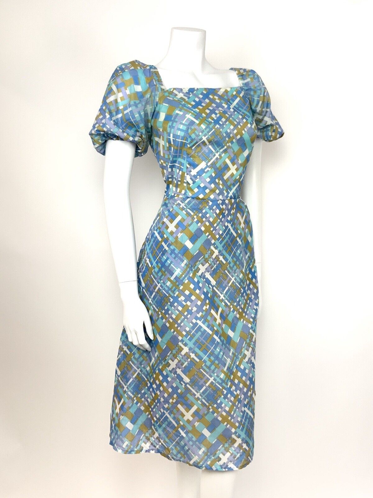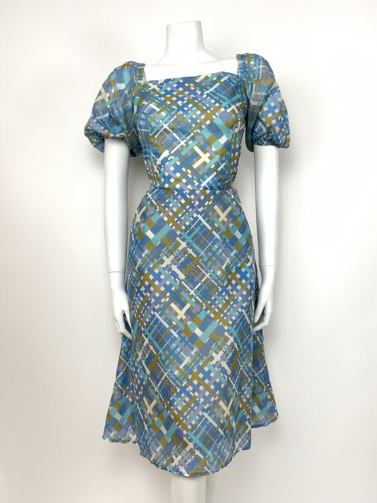 This is a really cute vintage dress made from a soft cotton-like fabric. This dress would best fit: 10 please check your measurements against the ones provided below, Bust: 35" Waist: 29" Hips: 42" Length: 42" PLEASE NOTE: This garment has been measured flat and doubled for bust (armpit to armpit), waist and hip measurements, we measure the length down the back of the dress, measurements may differ slightly due to dress styles and fabrics. We ignore any existing size labels as vintage brands differed so much. Items shown on our mannequin may be clipped to fit. This garment is true vintage so please be aware there may be some signs of wear as expected from a garment of this age. We do not list stains to area likes linings that are hidden or things that can bearly be seen without close inspection. These can include pin holes, small marks, light piling. We hand pick our items to make sure they are in great condition and fully wearable and we reject anything of poor condition. The majority of our items are 40-70 years old. If you think we've missed something significant please get in touch, we are only human and we lose transaction fees on returns so we don't skip things on purpose. CHECK OUT OUR OTHER ITEMS, WE LIST EVERY WEEK! |