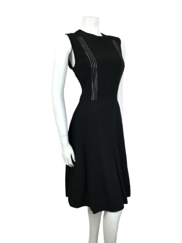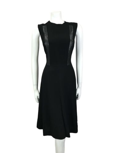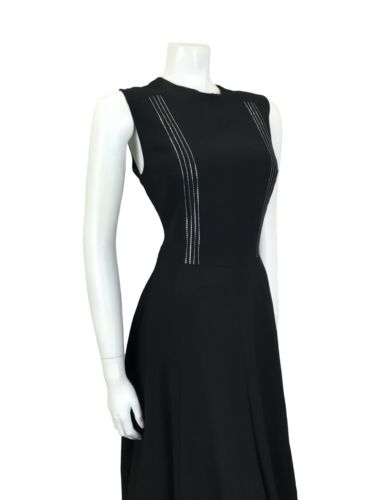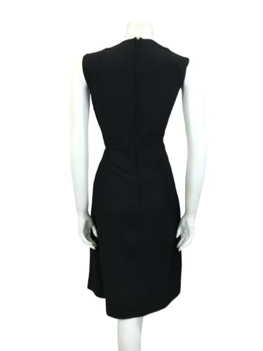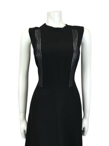 VTG 60S MOD BLACK METALLIC SILVER STRIPED SLEEVELESS MIDI PARTY LBD DRESS 14