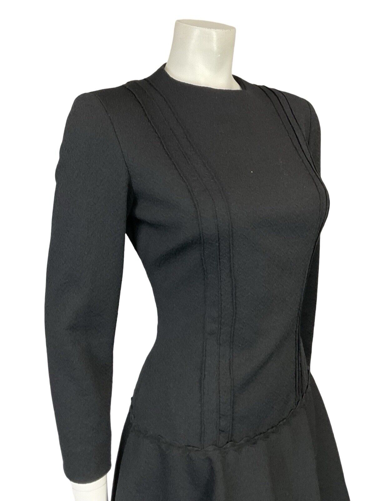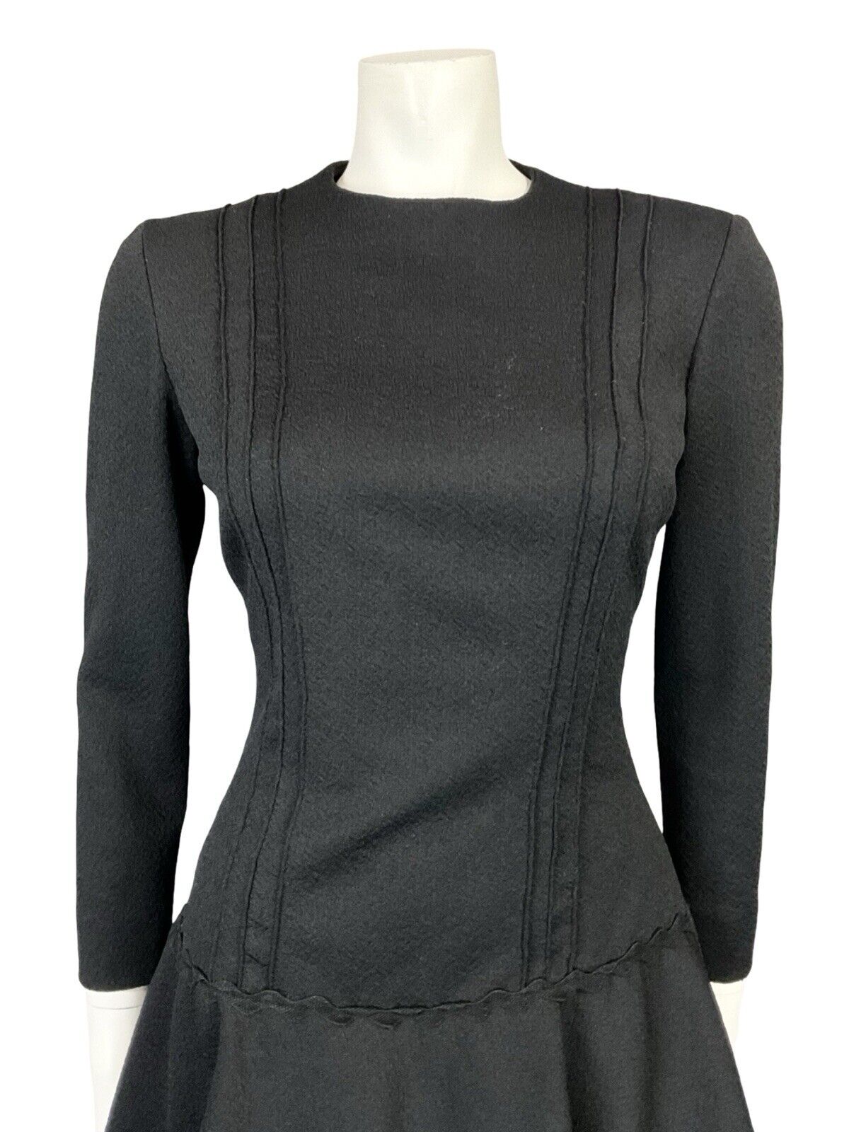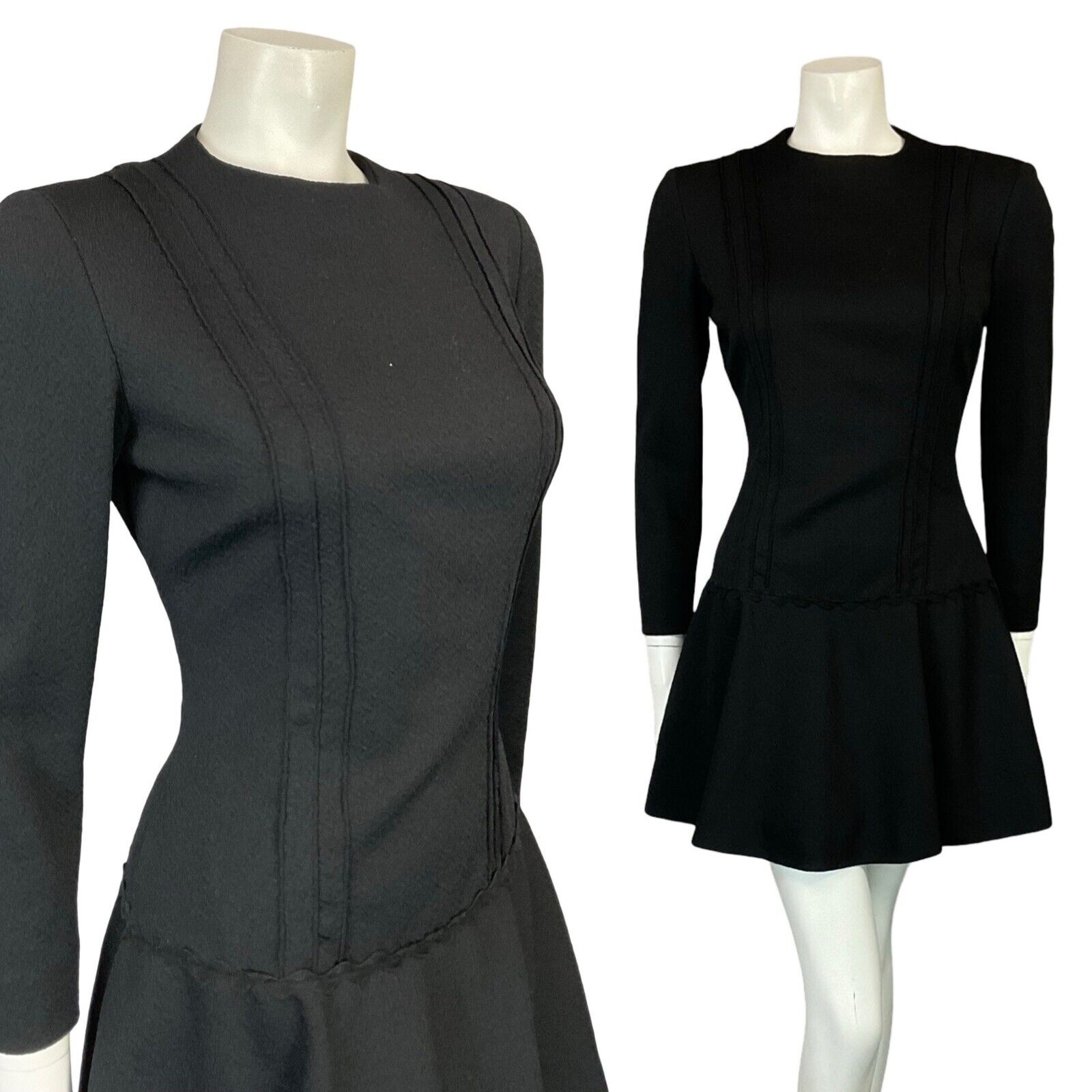 VTG 60S MOD GOGO BLACK EVENING LONG SLEEVE DROP WAIST LITTLE BLACK DRESS S 8 10