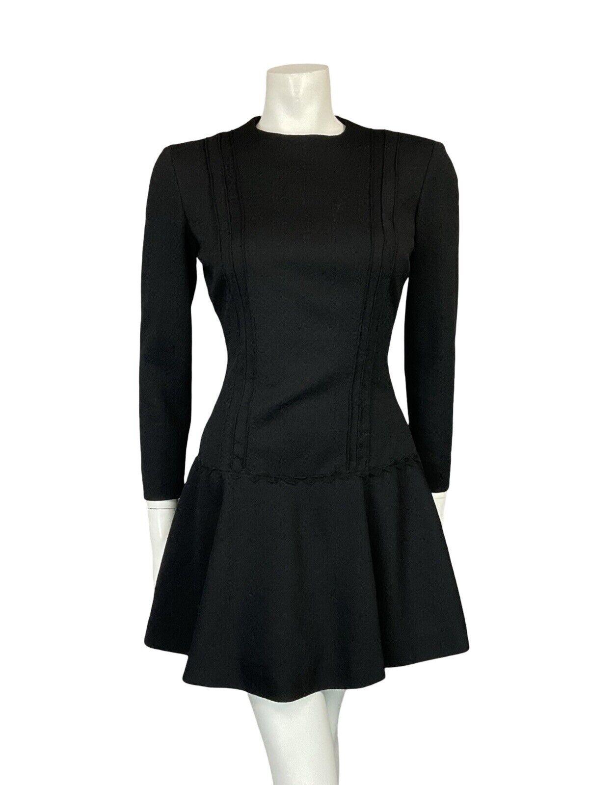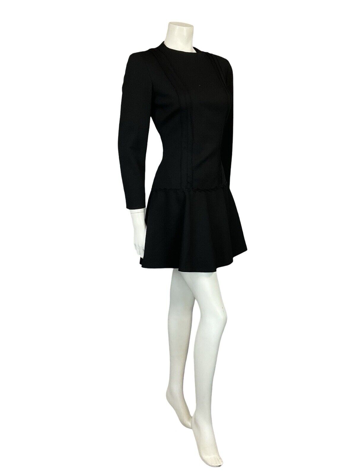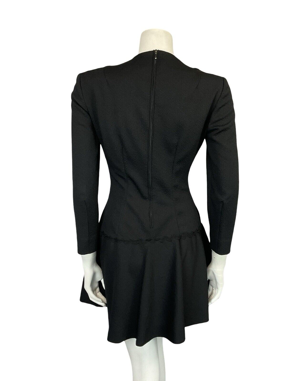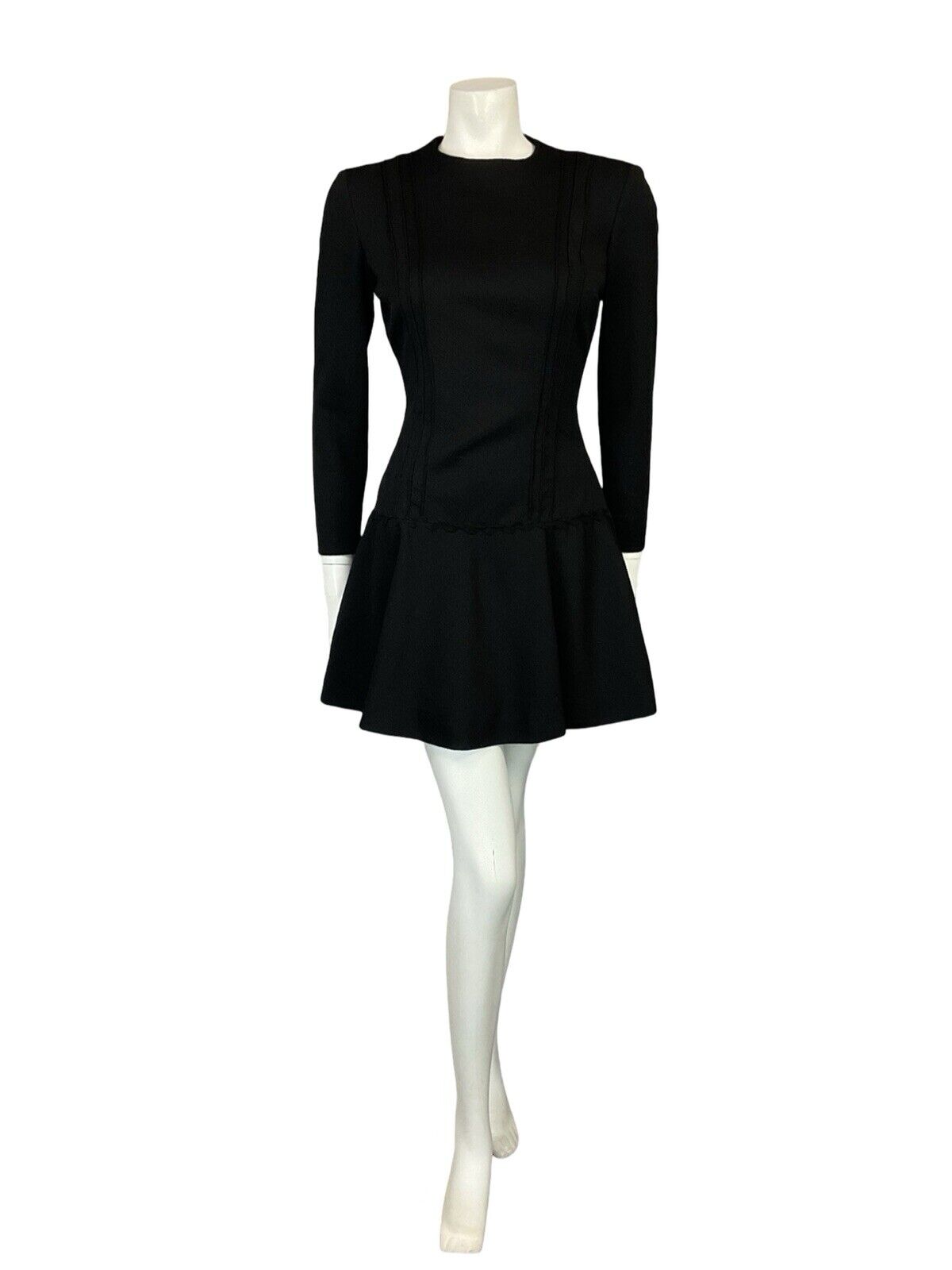 VTG 60S MOD GOGO BLACK EVENING LONG SLEEVE DROP WAIST LITTLE BLACK DRESS S 8 10